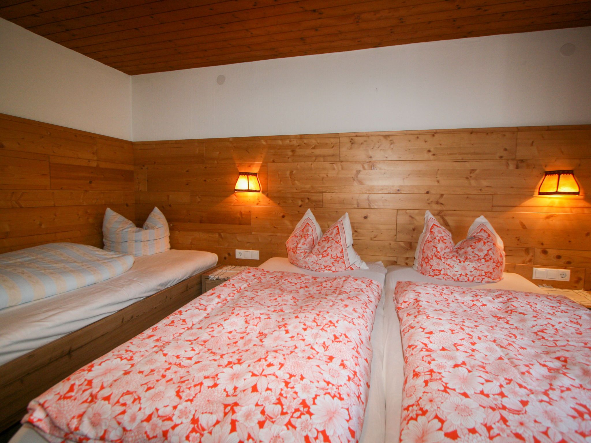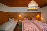 Schusterhäusl, 3-Zimmer-Wohnung 38 m2, im erhöhten Erdgeschoss. Einfach und rustikal eingerichtet: 1 Zimmer mit 2 Betten. 1 Zimmer mit 1 Bett und 1 Doppelbett. Wohnküche (4 Kochplatten, Backofen, Wasserkocher, elektrische Kaffeemaschine) mit Essecke und Sat-TV. Dusche/WC. E-Heizung. Teppichboden. Zur Verfügung: Internet (Wireless LAN, gratis).