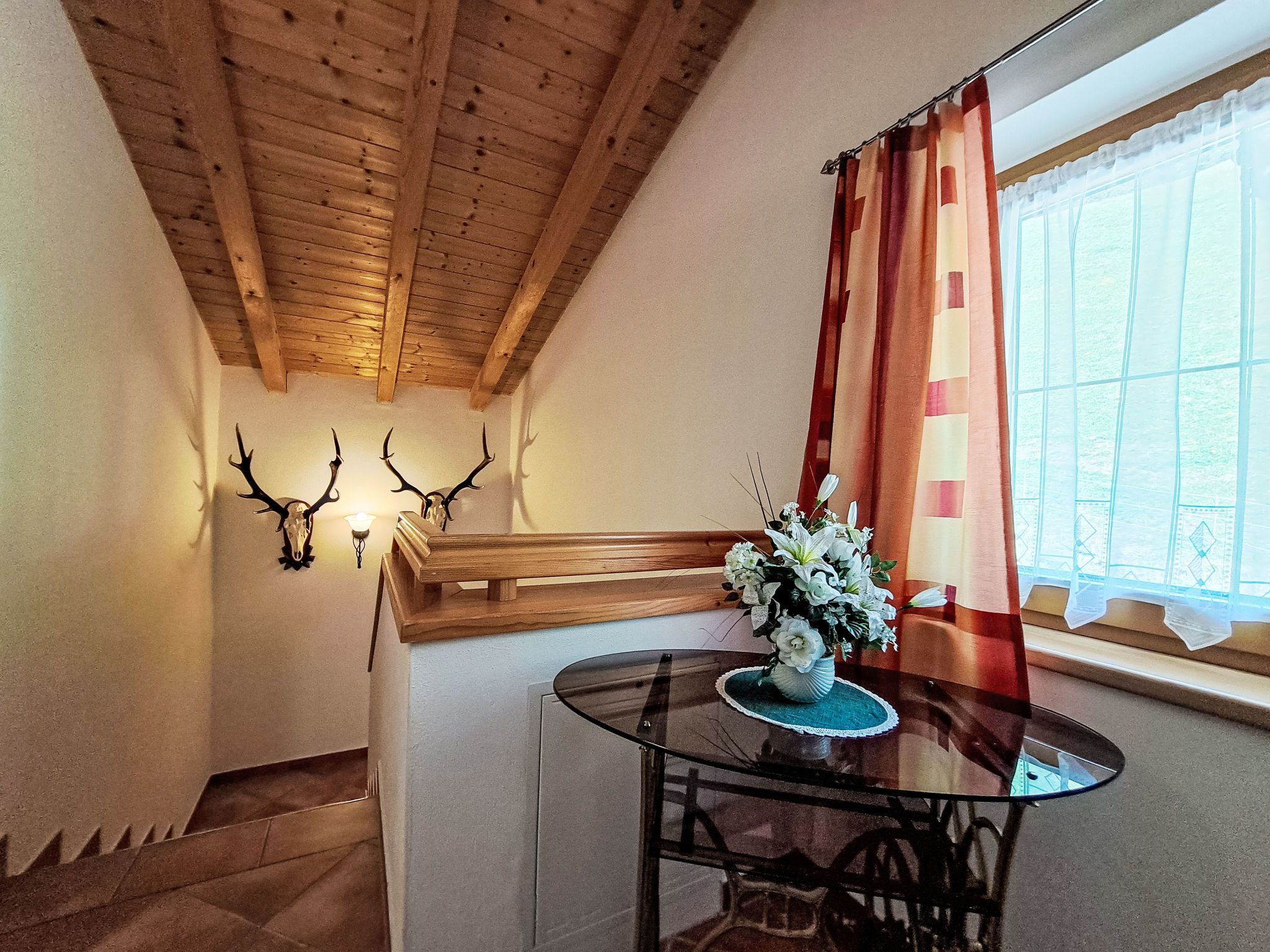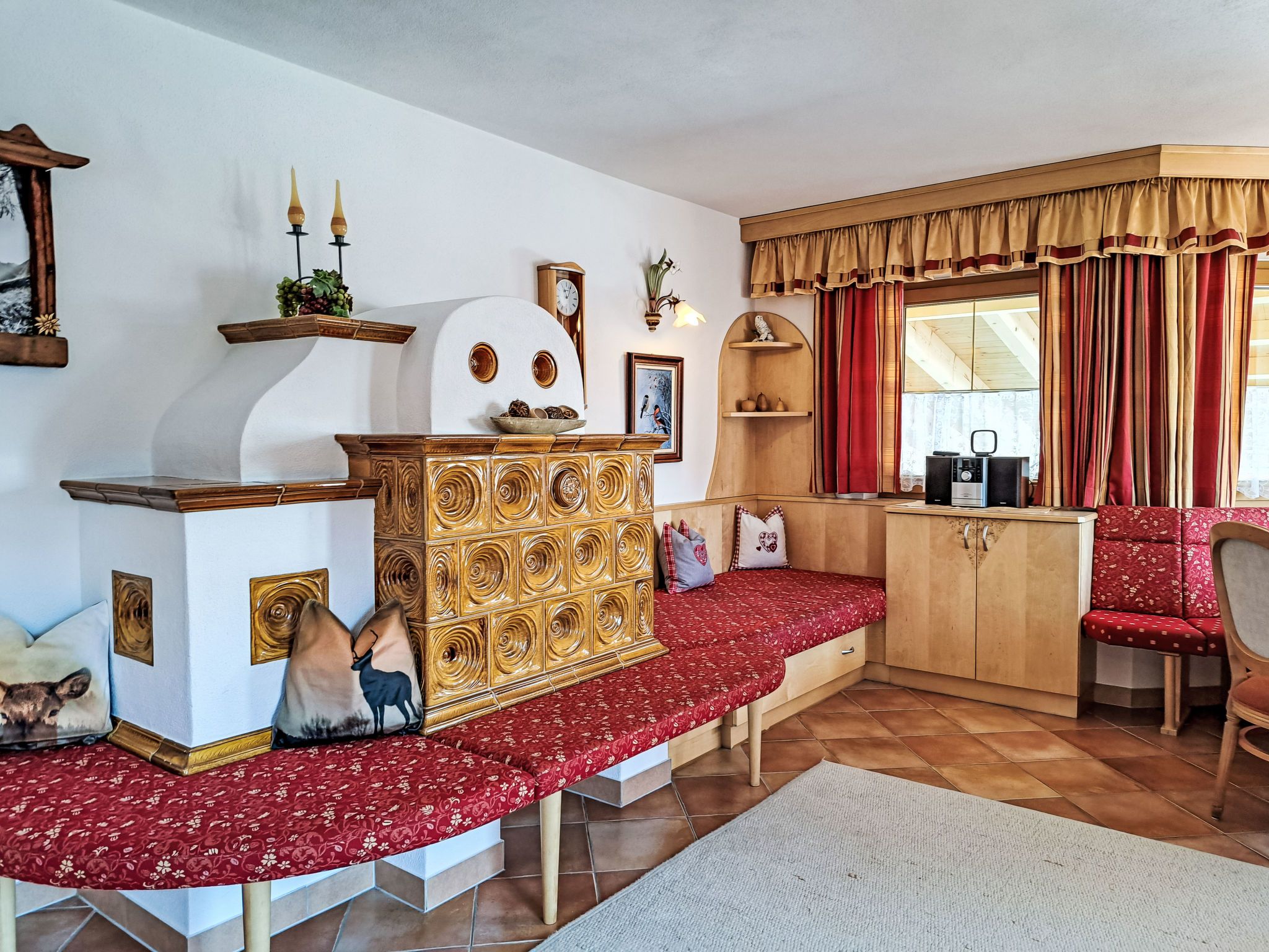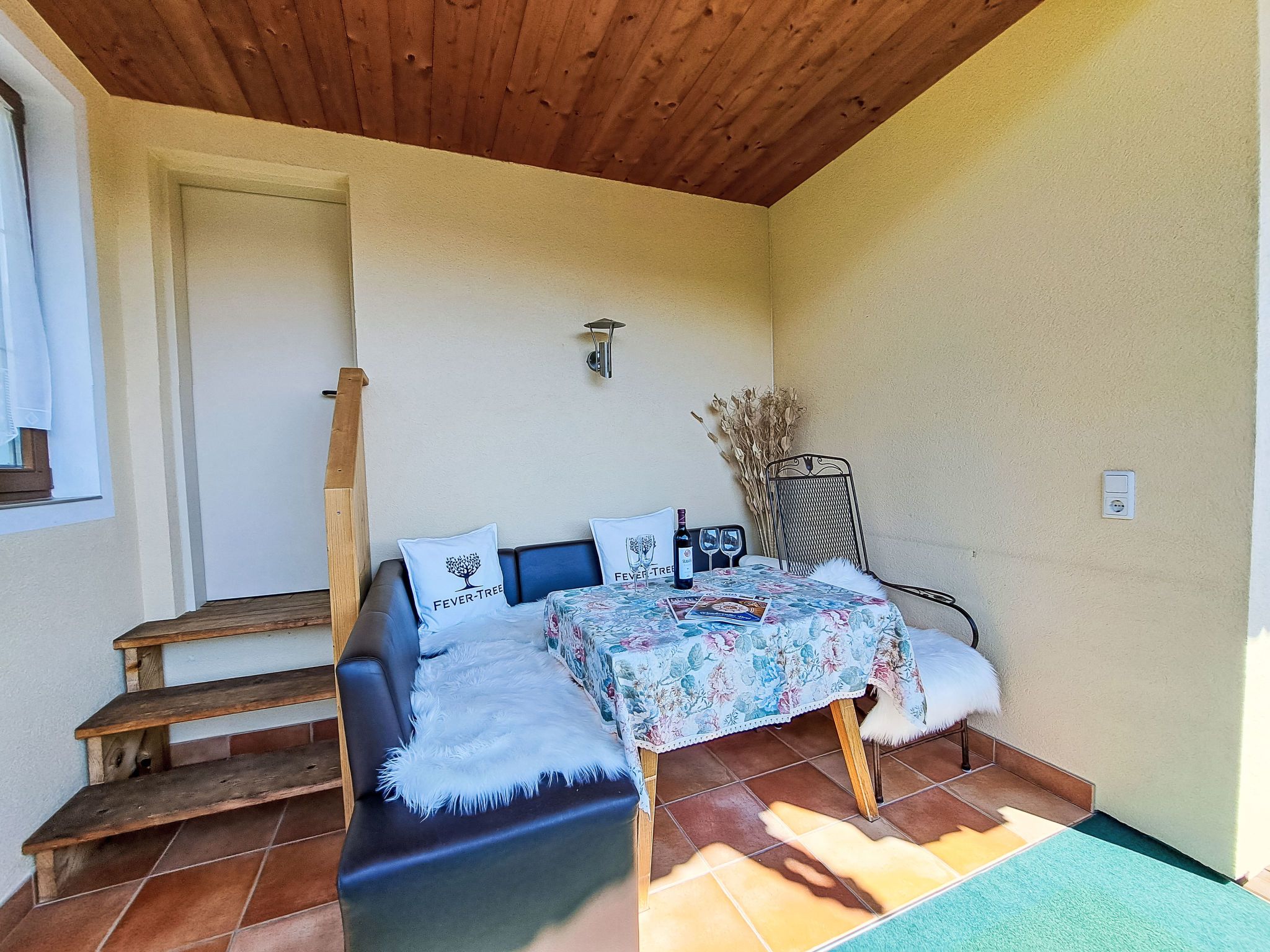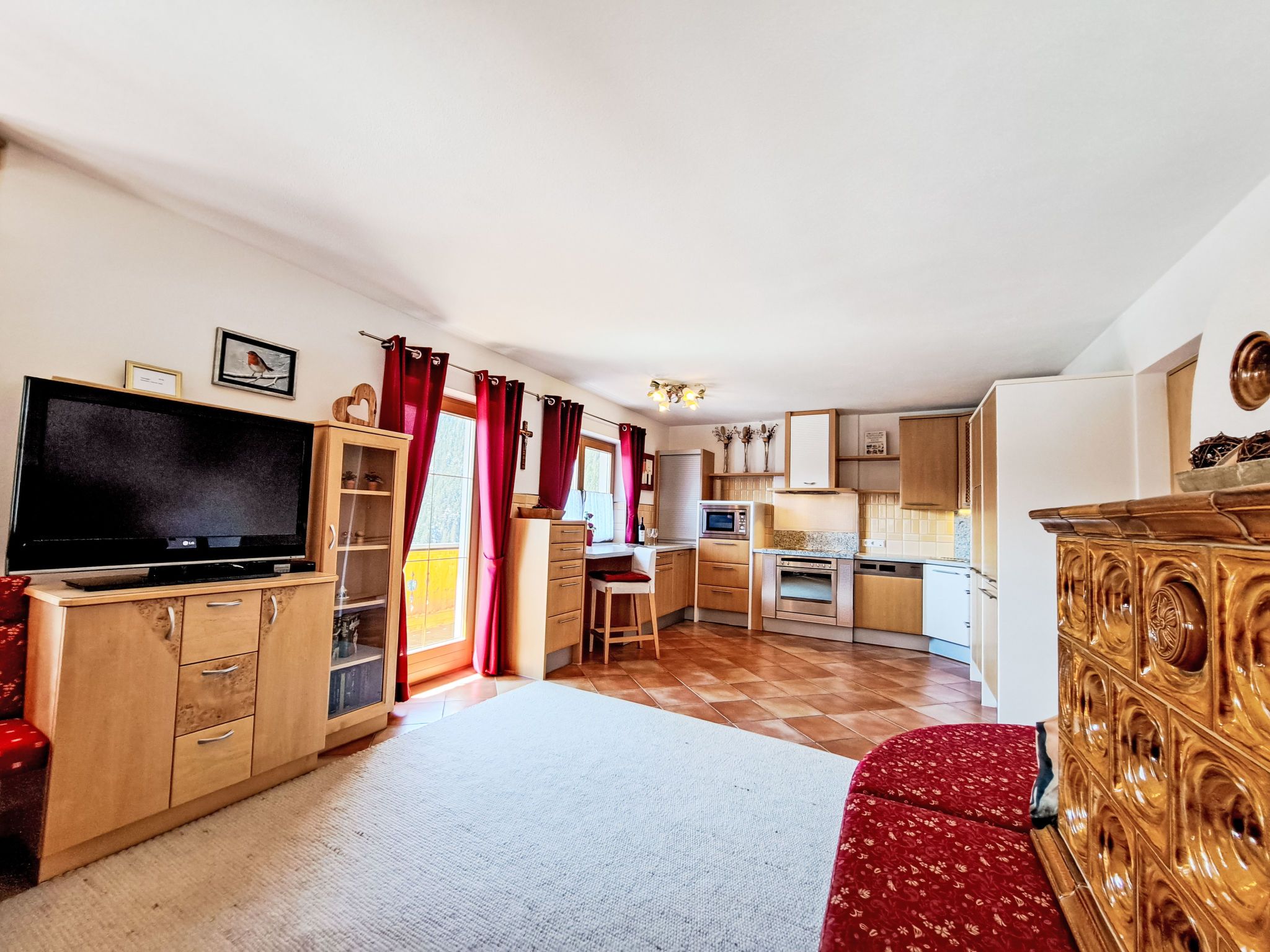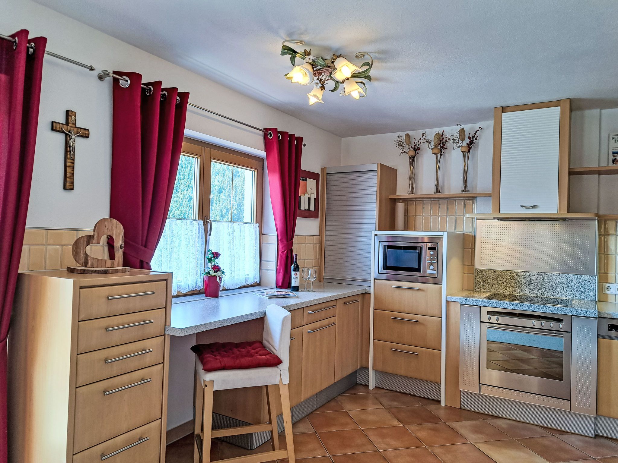 Reichegger, 3-Zimmer-Haus. Wohn-/Esszimmer mit Essecke, Sat-TV und Radio. Ausgang zum Balkon, zur Terrasse. Offene Küche (Backofen, Geschirrspüler, 4 Glaskeramikplatten, Toaster, Wasserkocher, Mikrowelle, Tiefkühler, elektrische Kaffeemaschine). Sep. WC. Fussbodenheizung. Obergeschoss: 1 Zimmer mit 1 Bett (97 cm, Länge 195 cm), 1 Doppelbett. Ausgang zum Balkon. 1 Doppelzimmer. Ausgang zum Balkon. Dusche/WC. Ölheizung, Fussbodenheizung. Balkon 15 m2, Terrasse. Terrassenmöbel, Balkonmöbel. Herrliche Panoramasicht. Zur Verfügung: Sauna (extra). Internet (WLAN, gratis). Bitte beachten: Nichtraucher-Haus. Rauchmelder, Feuerlöscher. Beide Zimmer im Obergeschoss haben eine Dachschräge mit sichtbaren Holzdachstuhl für Wohlfühlatmosphäre! Die Kaution ist in Bar am Anreisetag zu begleichen!