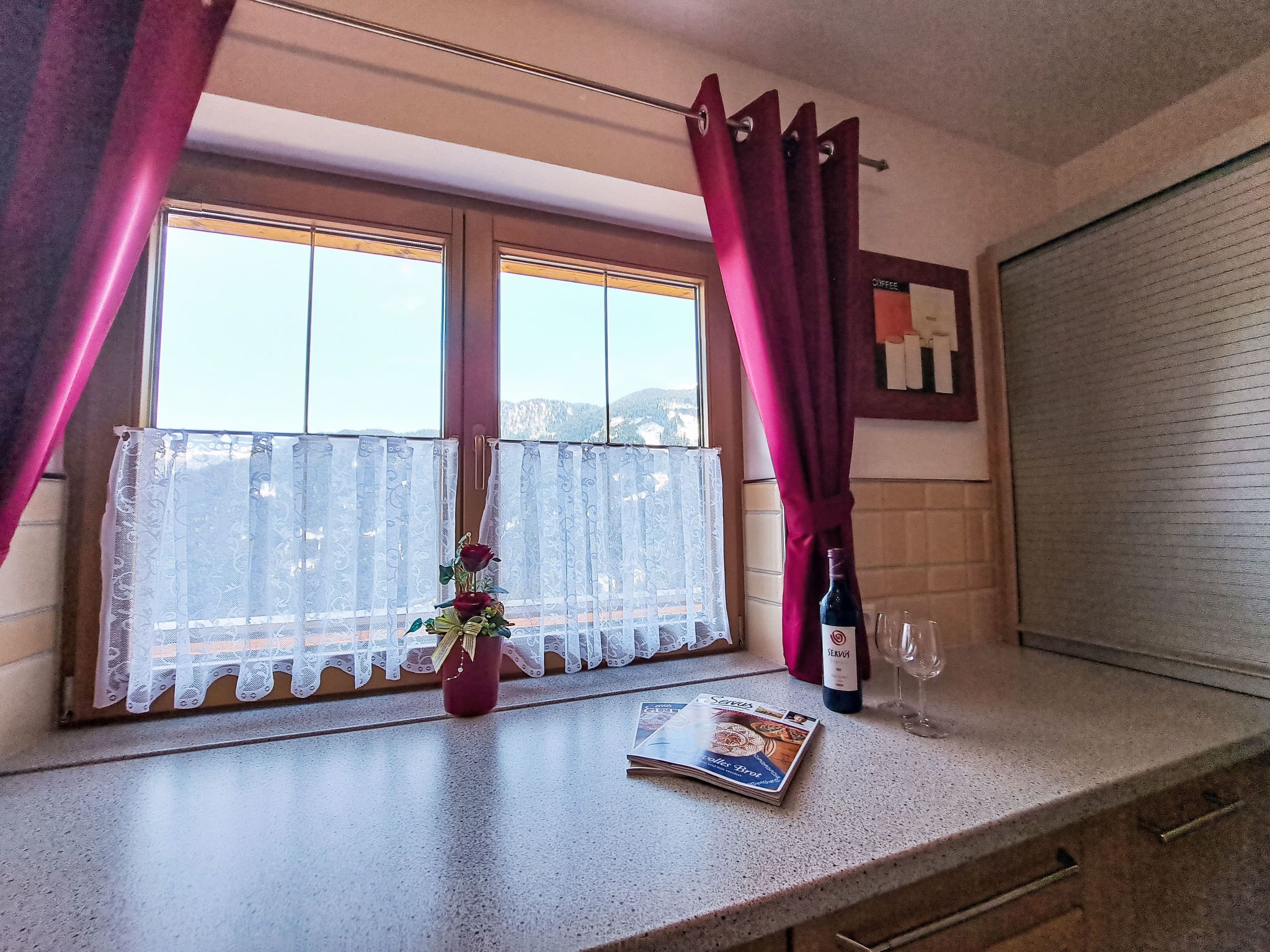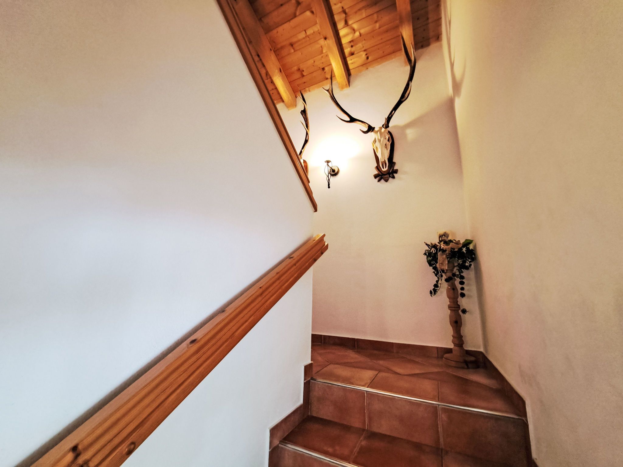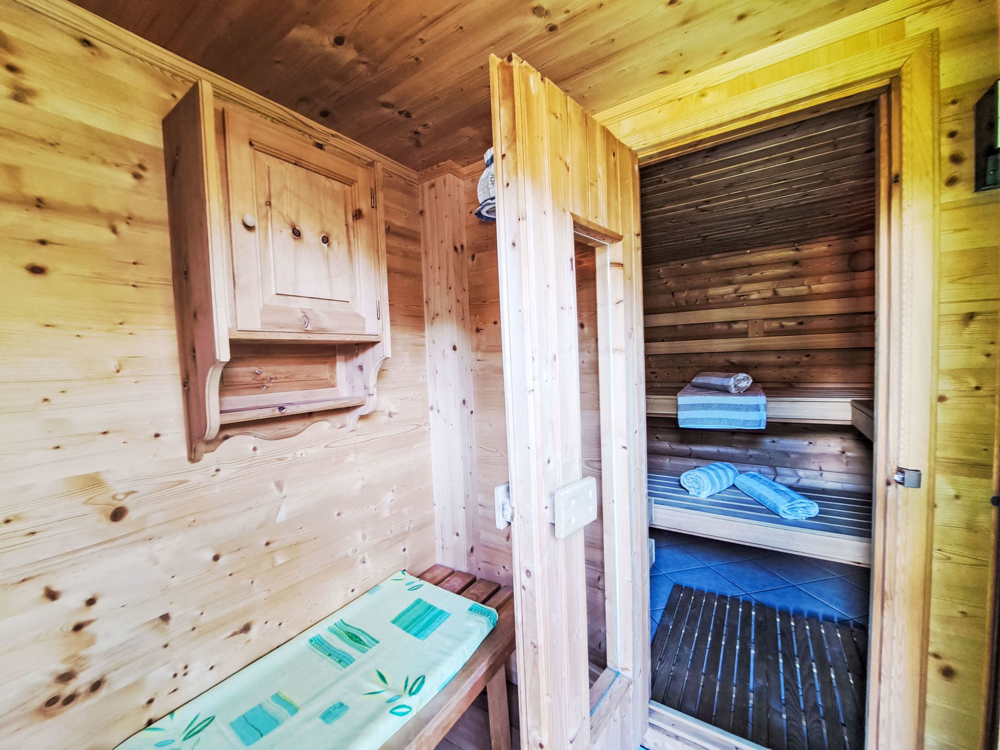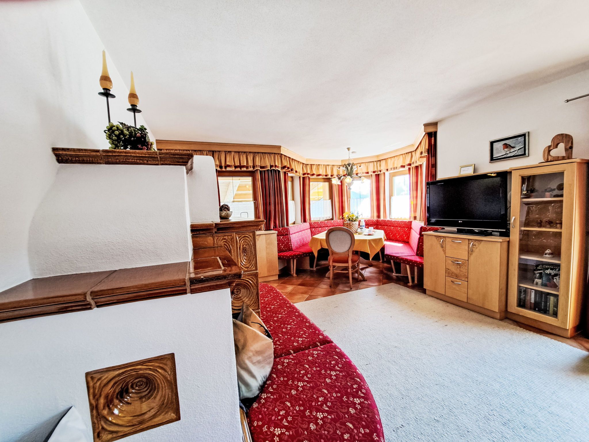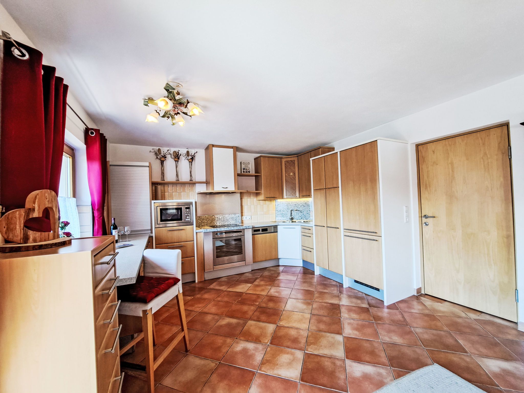Reichegger, 3-Zimmer-Haus. Wohn-/Esszimmer mit Essecke, Sat-TV und Radio. Ausgang zum Balkon, zur Terrasse. Offene Küche (Backofen, Geschirrspüler, 4 Glaskeramikplatten, Toaster, Wasserkocher, Mikrowelle, Tiefkühler, elektrische Kaffeemaschine). Sep. WC. Fussbodenheizung. Obergeschoss: 1 Zimmer mit 1 Bett (97 cm, Länge 195 cm), 1 Doppelbett. Ausgang zum Balkon. 1 Doppelzimmer. Ausgang zum Balkon. Dusche/WC. Ölheizung, Fussbodenheizung. Balkon 15 m2, Terrasse. Terrassenmöbel, Balkonmöbel. Herrliche Panoramasicht. Zur Verfügung: Sauna (extra). Internet (WLAN, gratis). Bitte beachten: Nichtraucher-Haus. Rauchmelder, Feuerlöscher. Beide Zimmer im Obergeschoss haben eine Dachschräge mit sichtbaren Holzdachstuhl für Wohlfühlatmosphäre! Die Kaution ist in Bar am Anreisetag zu begleichen!