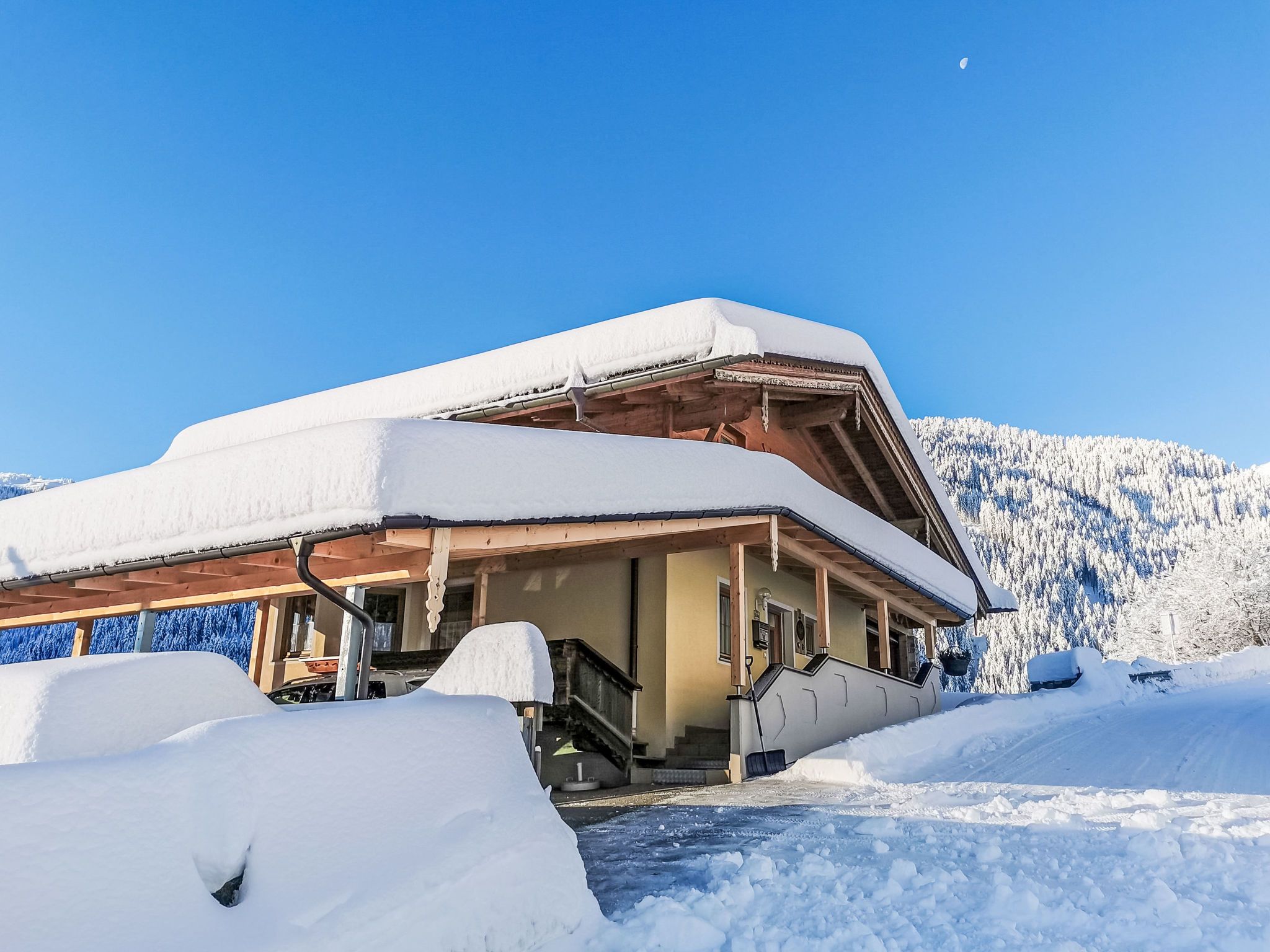 Haus Reichegger, 1'000 m.ü.M.. Im Ortsteil Schwendberg, 10 km vom Zentrum von Mayrhofen, 7 km vom Zentrum von Hippach, am Hang. Im Hause: Sauna (extra). Skiraum, Trockenraum. Zufahrt (Bergstrasse). Im Winter bitte Schneeketten mitbringen. Parkplatz (überdacht) auf dem Grundstück. Supermarkt 7 km, Restaurant 1.8 km, Bushaltestelle Schwendberg Perler 600 m, Bahnstation Ramsau i.Z.-Hippach Bahnhof 6.1 km, Freibad 7 km, Hallenbad 10 km. Skilift 1.5 km, Gondelbahn 1.5 km, Skipisten 3 km, Skibushaltestelle 50 m, Schlittelbahn 2 km. Bekannte Skigebiete sind gut erreichbar: Penken-Horberg-Rastkogel 1.5 km.
