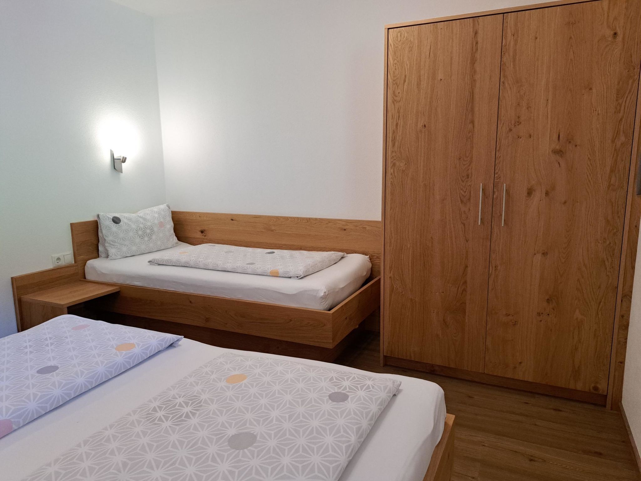 Anton, 3-Zimmer-Wohnung 60 m2 im 2. Stock. Hell, gemütlich eingerichtet: 1 Doppelzimmer mit Dusche/WC. Ausgang zum Balkon. 1 Zimmer mit 1 Bett und 1 Doppelbett. Wohnküche (Backofen, Geschirrspüler, 4 Glaskeramikplatten, Wasserkocher, elektrische Kaffeemaschine) mit 1 Diwanbett, Essecke, Sat-TV und Radio. Ausgang zum Balkon. Dusche/WC. Ölheizung. Balkon 10 m2. Balkonmöbel. Schöne Panoramasicht auf die Berge und das Tal. Zur Verfügung: Internet (WLAN, gratis). Bitte beachten: Nichtraucher-Unterkunft. Eigener Eingang, Rauchmelder, Feuerlöscher.