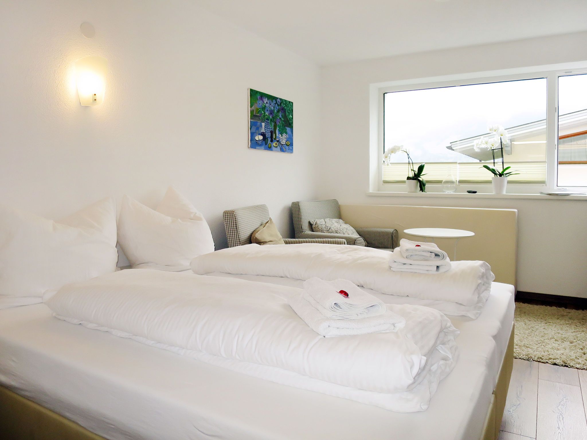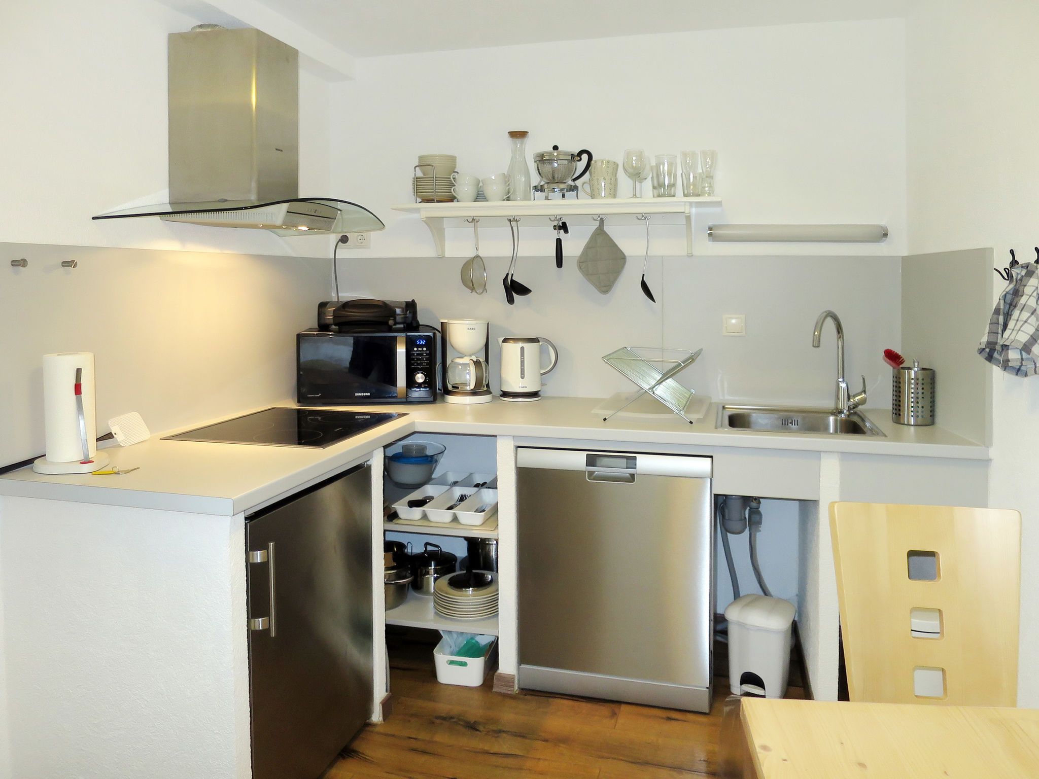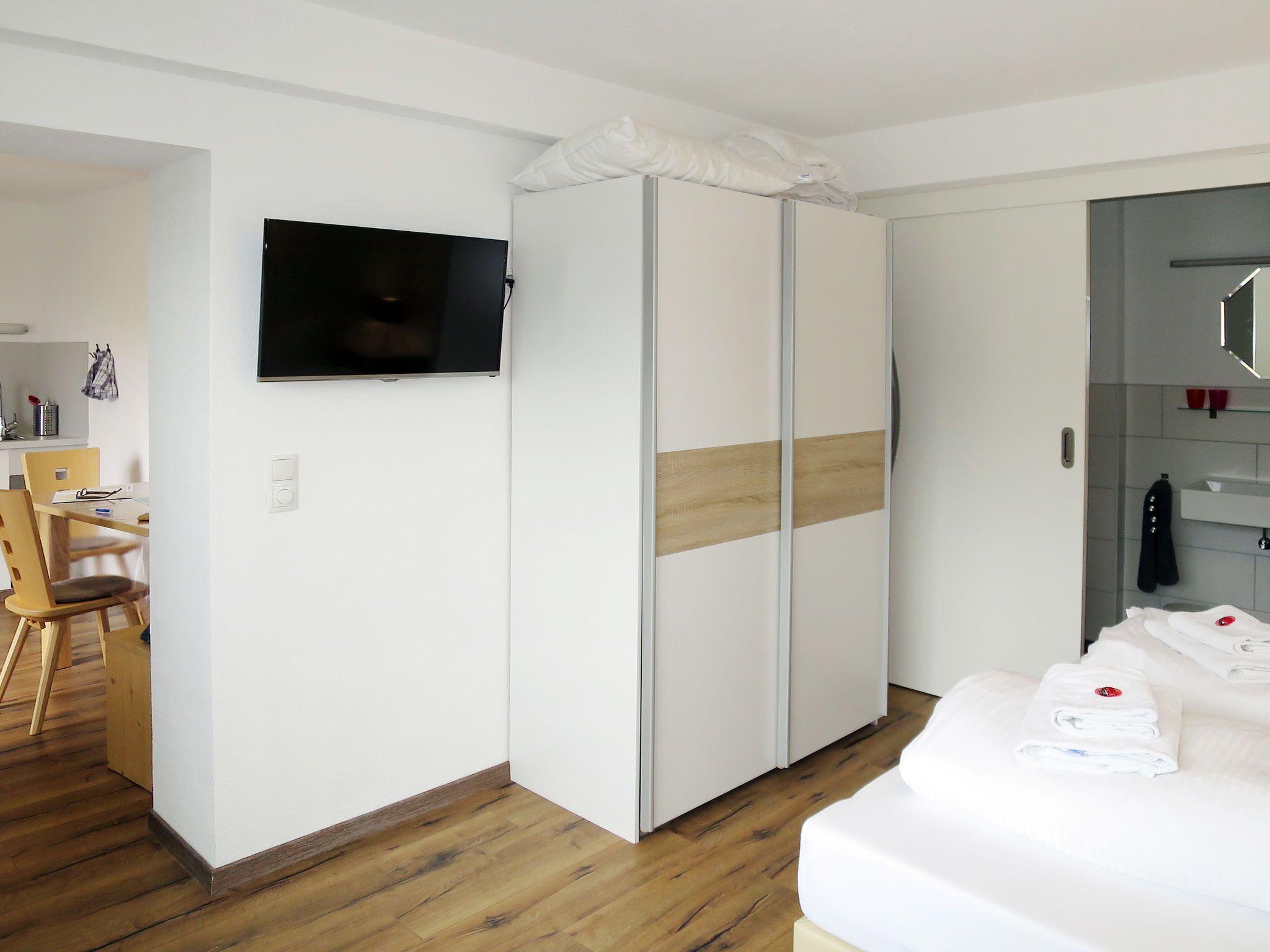 Tamerl, 2-Zimmer-Wohnung 30 m2, im Erdgeschoss. Hell, renoviert im Jahre 2014, geschmackvoll eingerichtet: 1 offenes Zimmer mit 1 Doppelbett, 1 Klappbett, Dusche/WC und Sat-TV. Kleine Küche (Geschirrspüler, 4 Glaskeramikplatten, Toaster, Wasserkocher, Mikrowelle, Tiefkühler, Grill, elektrische Kaffeemaschine) mit Essecke. Ölheizung. Zur Verfügung: Internet (WLAN, gratis). Parkplatz (2 Autos). Bitte beachten: Nichtraucher-Unterkunft. Rauchmelder.