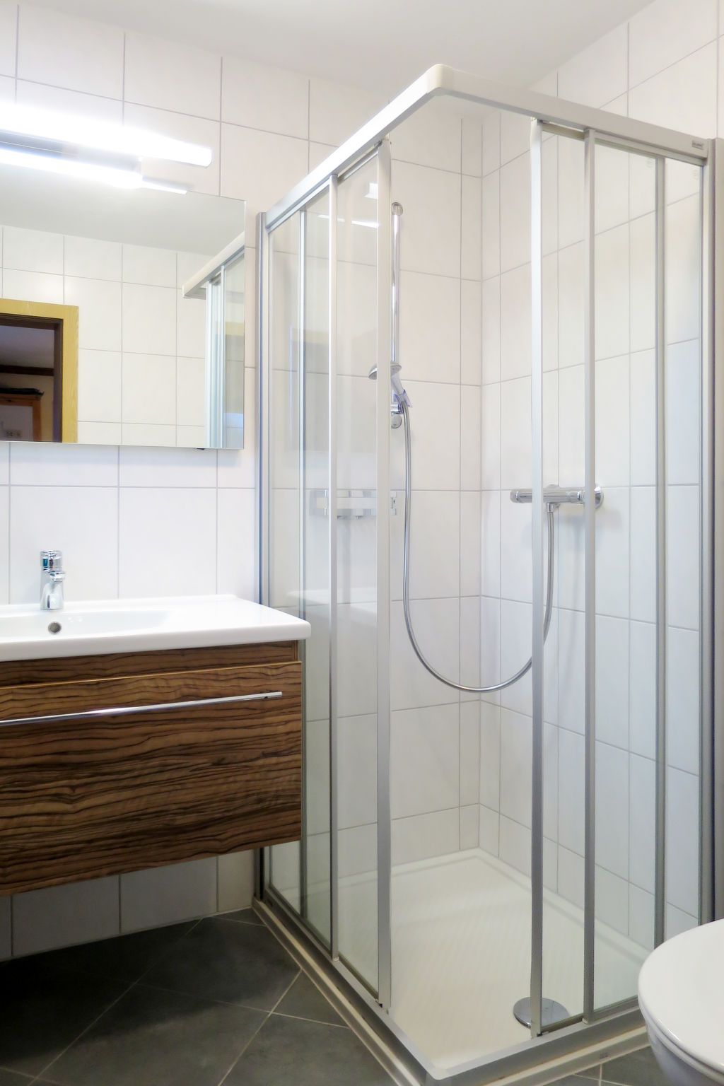 Eberharter, 7-Zimmer-Haus 200 m2 auf 2 Stockwerken. Zweckmässig und rustikal eingerichtet: Wohn-/Esszimmer mit Sat-TV und Radio. Ausgang zur Terrasse. Küche (Backofen, Geschirrspüler, 4 Glaskeramikplatten, Mikrowelle, Tiefkühler, elektrische Kaffeemaschine). Sep. WC. 2. Obergeschoss: 6 Doppelzimmer, jedes Zimmer mit Dusche/WC. Ausgang zum Balkon. 1 Zimmer mit 1 Bett, 1 Doppelbett und Dusche/WC. Ausgang zum Balkon. 2 Balkone, Terrasse. Terrassenmöbel. Zur Verfügung: Kinderhochstuhl, Babybett. Internet (WLAN, extra). Bitte beachten: Nichtraucher-Unterkunft. Rauchmelder.