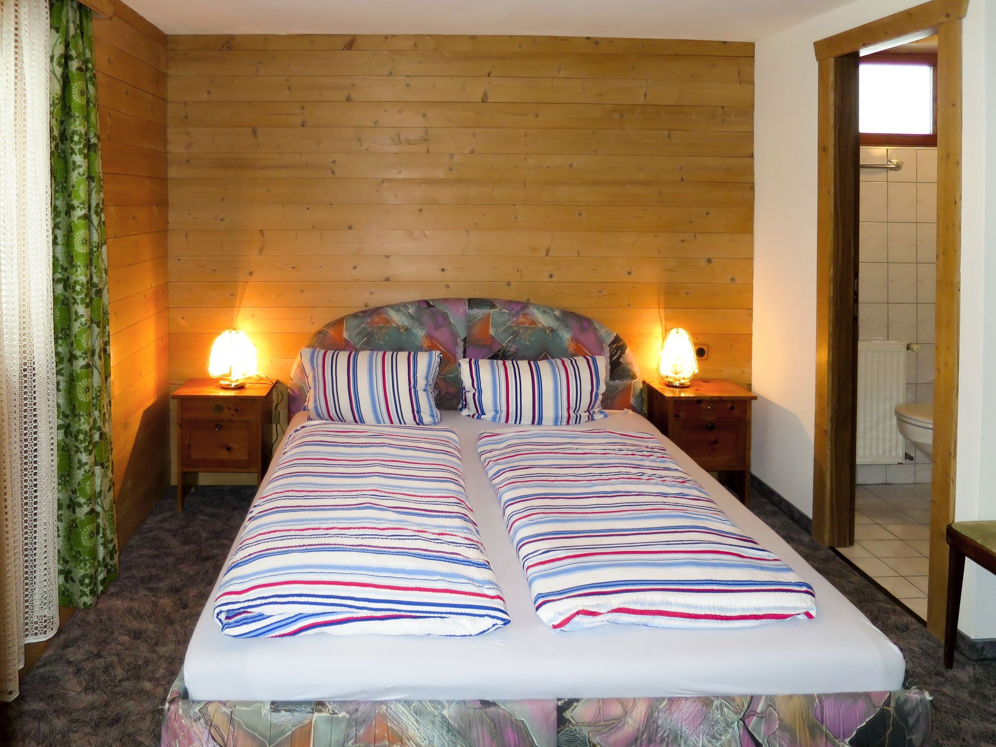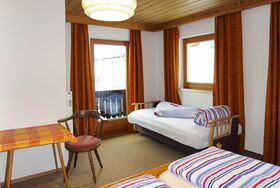 Schrofner, 7-Zimmer-Haus 180 m2 auf 3 Stockwerken. Zweckmässig und rustikal eingerichtet: Wohn-/Esszimmer mit Esstisch, Sat-TV und Kachelofen. Küche (Backofen, Geschirrspüler, 4 Glaskeramikplatten, Wasserkocher, Mikrowelle, elektrische Kaffeemaschine) mit kleinem Esstisch. Obergeschoss: (steile Treppe) 1 Doppelzimmer mit Dusche/WC. 1 Zimmer mit 1 Diwanbett, 1 Doppelbett und Dusche/WC. Sep. WC. 2. Obergeschoss: (steile Treppe) 2 Doppelzimmer, jedes Zimmer mit Dusche/WC. Ausgang zum Balkon. 2 Doppelzimmer, jedes Zimmer mit Waschbecken. Ausgang zum Balkon. Dusche, sep. WC. Heizung. 2 Balkone. Balkonmöbel. Zur Verfügung: Kinderhochstuhl, Babybett. Internet (Wireless LAN, extra). Bitte beachten: Nichtraucher-Unterkunft. Rauchmelder.