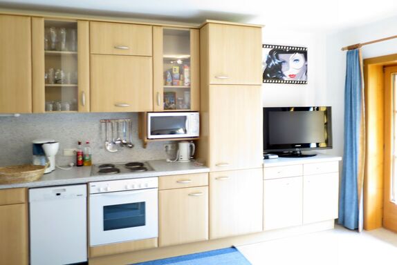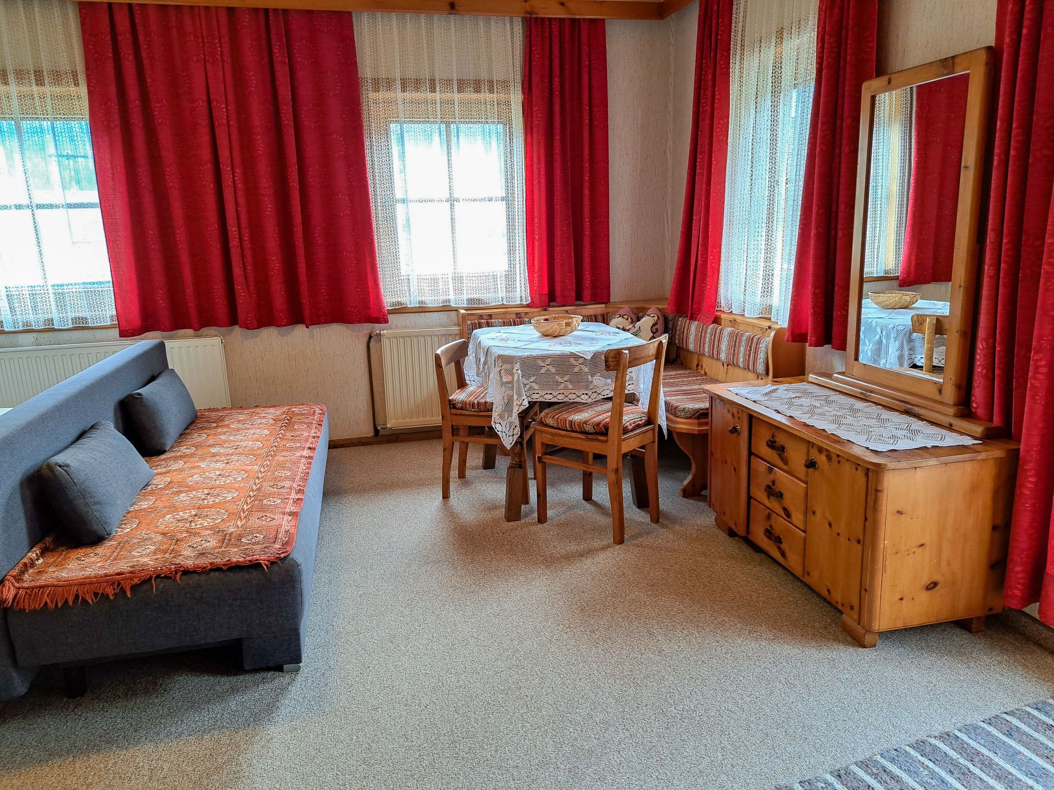 Schoberhof, 8-Zimmer-Wohnung 175 m2 auf 2 Stockwerken. Rustikal und gemütlich eingerichtet: Obergeschoss: 3 Doppelzimmer, jedes Zimmer mit Dusche/WC. Ausgang zum Balkon. Wohnküche (4 Kochplatten, Backofen, Geschirrspüler, Toaster, Wasserkocher, Mikrowelle, elektrische Kaffeemaschine) mit Esstisch, Sat-TV. Ausgang zum Balkon. Dusche, sep. WC. 2. Obergeschoss: 1 Zimmer mit 1 Diwanbett, 1 Doppelbett und Waschbecken. Ausgang zum Balkon. 1 Doppelzimmer mit Dusche/WC. Ausgang zum Balkon. Kleine Küche (4 Kochplatten, Backofen, Geschirrspüler, Toaster, Wasserkocher, elektrische Kaffeemaschine) mit Esstisch, Sat-TV. Ausgang zum Balkon. Dusche, sep. WC. Teppichboden. 2 Balkone. Zur Verfügung: Kinderhochstuhl. Internet (WLAN, gratis). Bitte beachten: Rauchmelder, Feuerlöscher. Doppelbetten mit zwei einzelnen Matratzen (2x90cmx200cm). Kühl- Gefrierkombination.