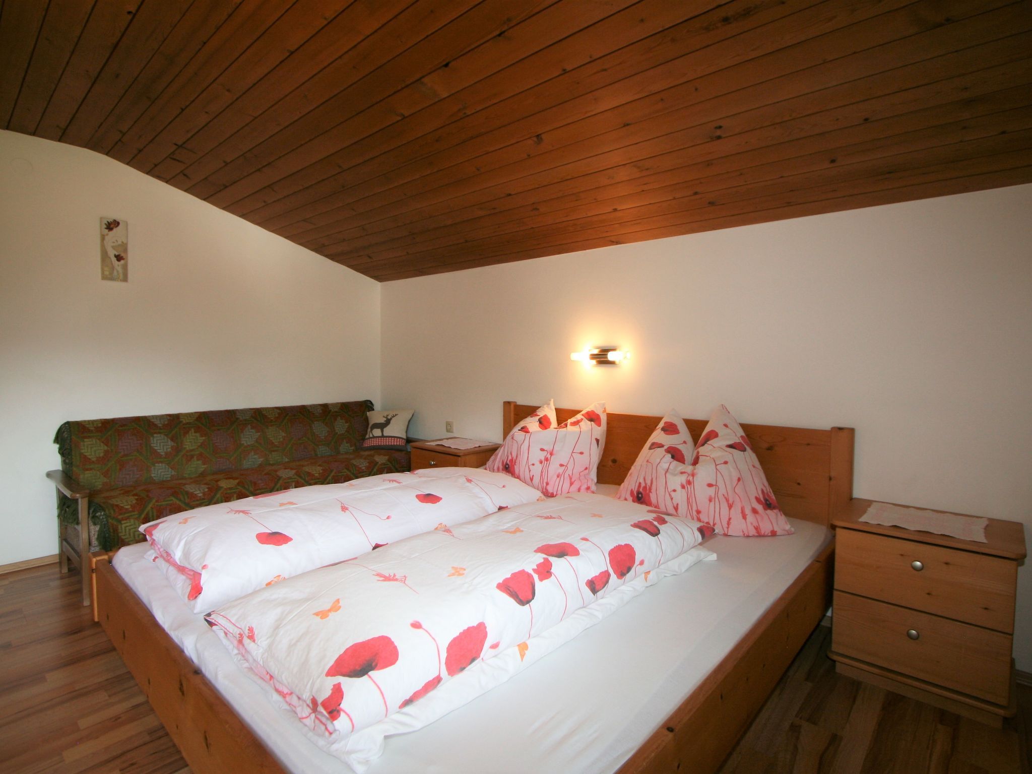 Klocker, 5-Zimmer-Wohnung 120 m2 im 2. Stock. Zweckmässig eingerichtet: 2. Obergeschoss: Wohn-/Esszimmer mit Essecke und Sat-TV. 2 Zimmer, jedes Zimmer mit 1 Diwanbett, 1 Doppelbett, Waschbecken und Dusche. Ausgang zum Balkon. 1 Doppelzimmer mit Waschbecken und Dusche. Wohnküche (4 Kochplatten, Geschirrspüler, Toaster, elektrische Kaffeemaschine) mit Esstisch. Sep. WC. Heizung. Teppichboden. Balkon. Zur Verfügung: Kinderhochstuhl, Babybett. Internet (WLAN, extra). Bitte beachten: Rauchmelder. Bei Belegung mit weniger Personen als der maximalen Personenzahl stehen nicht alle Wohneinheiten zur Verfügung.