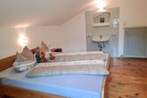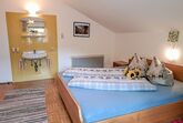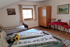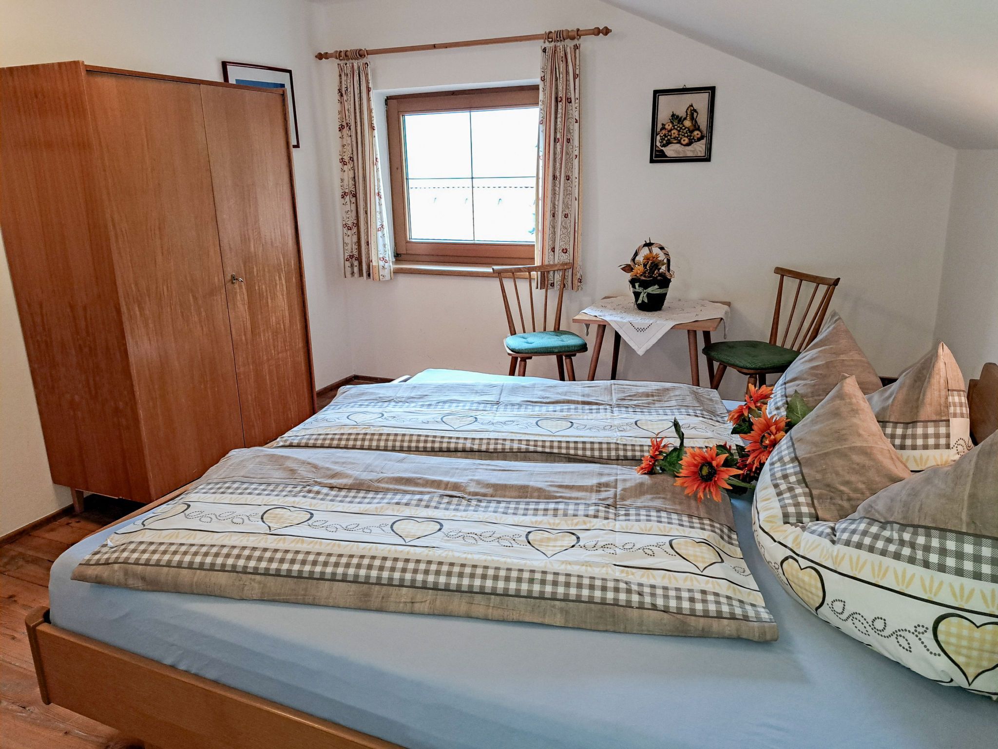 Maiklerhof, 4-Zimmer-Wohnung 75 m2 im 2. Stock. Zweckmässig eingerichtet: 1 Zimmer mit 1 Bett, 1 Doppelbett und Waschbecken. 1 Doppelzimmer mit Waschbecken. Ausgang zum Balkon. 1 Doppelzimmer mit Waschbecken. Wohnküche (Backofen, Geschirrspüler, 4 Glaskeramikplatten, Toaster, Wasserkocher, Tiefkühler, elektrische Kaffeemaschine) mit Esstisch, Essecke, Sat-TV und Radio. Ausgang zum Balkon. Dusche/WC. Holzheizung. Parkettboden. Balkon. Schöne Panoramasicht. Zur Verfügung: Babybett. Internet (WLAN, gratis). Bitte beachten: Nichtraucher-Unterkunft. Eigener Eingang, Feuerlöscher.