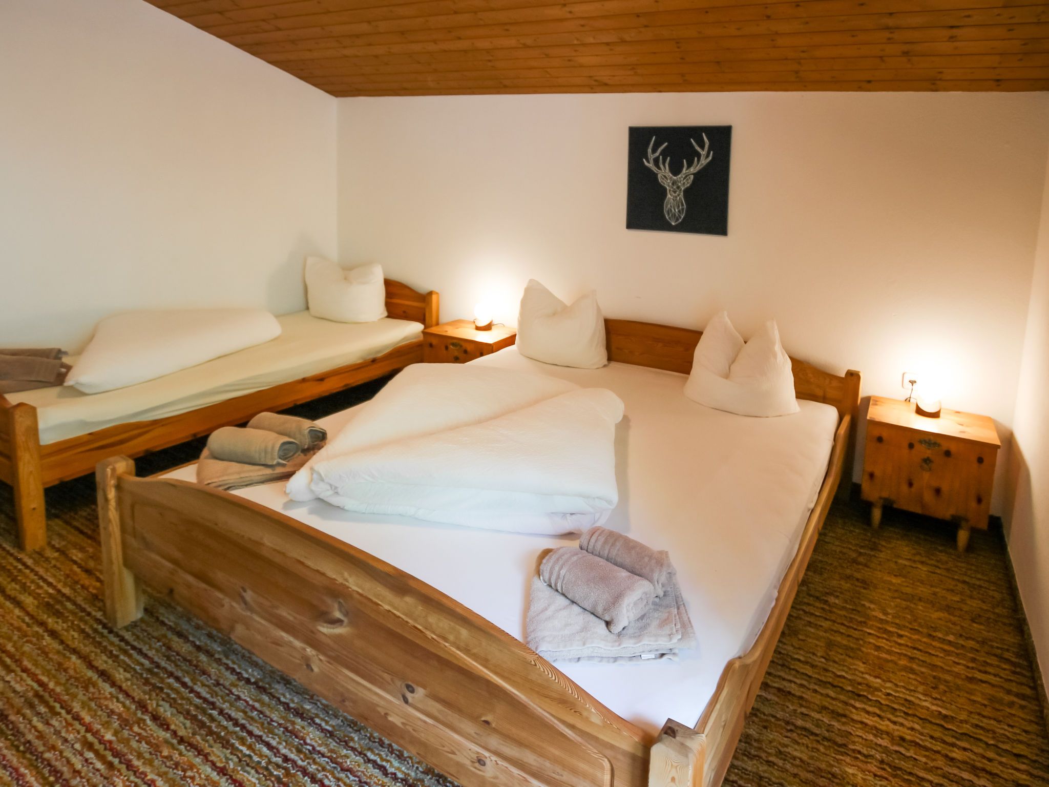 Waldeck 3, 5-Zimmer-Wohnung 100 m2 im 2. Stock. Zweckmässig und gemütlich eingerichtet: 1 Doppelzimmer. Ausgang zum Balkon. 2 Doppelzimmer, jedes Zimmer mit Waschbecken. 1 Zimmer mit 1 Bett und 1 Doppelbett. Ausgang zum Balkon. Wohnküche (4 Kochplatten, Backofen, Geschirrspüler, Wasserkocher, elektrische Kaffeemaschine) mit Essecke und Sat-TV. 2 Duschen, sep. WC. Ölheizung. Holzdielenboden, Teppichboden. Balkon. Balkonmöbel, Liegestühle (4). Zur Verfügung: Kinderhochstuhl, Babybett. Internet (WLAN, gratis). Bitte beachten: Maximal 1 Haustier/Hund erlaubt. Rauchmelder, Feuerlöscher. Die Duschen befinden sich in einem gemeinsamen Duschraum! Bei Belegung mit weniger Personen als der maximalen Personenzahl stehen nicht alle Schlafzimmer zur Verfügung.