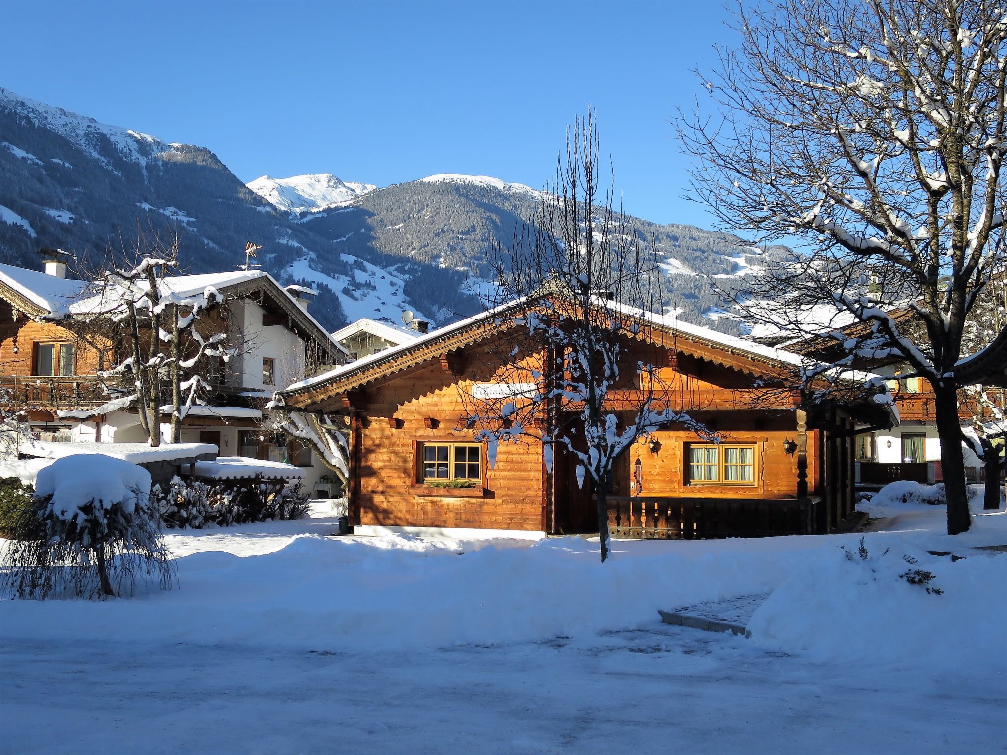 Ramsau 3 km von Mayrhofen: Schönes Holzhaus Heisenhaushütte. 3 km vom Zentrum von Mayrhofen, 500 m vom Zentrum von Ramsau, sonnige Lage. Zur Alleinbenutzung: Grundstück mit Bäumen, Wiese. Im Hause: Skiraum. Parkplatz auf dem Grundstück. Einkaufsgeschäft 500 m, Supermarkt 1 km, Bushaltestelle Ramsau i.Z. Oberdorf 65 m, Bahnstation Ramsau i.Z.-Hippach Bahnhof 600 m, Freibad 1 km, Hallenbad 5 km. Wanderwege ab Haus 50 m, Gondelbahn 2 km, Skibushaltestelle 50 m.