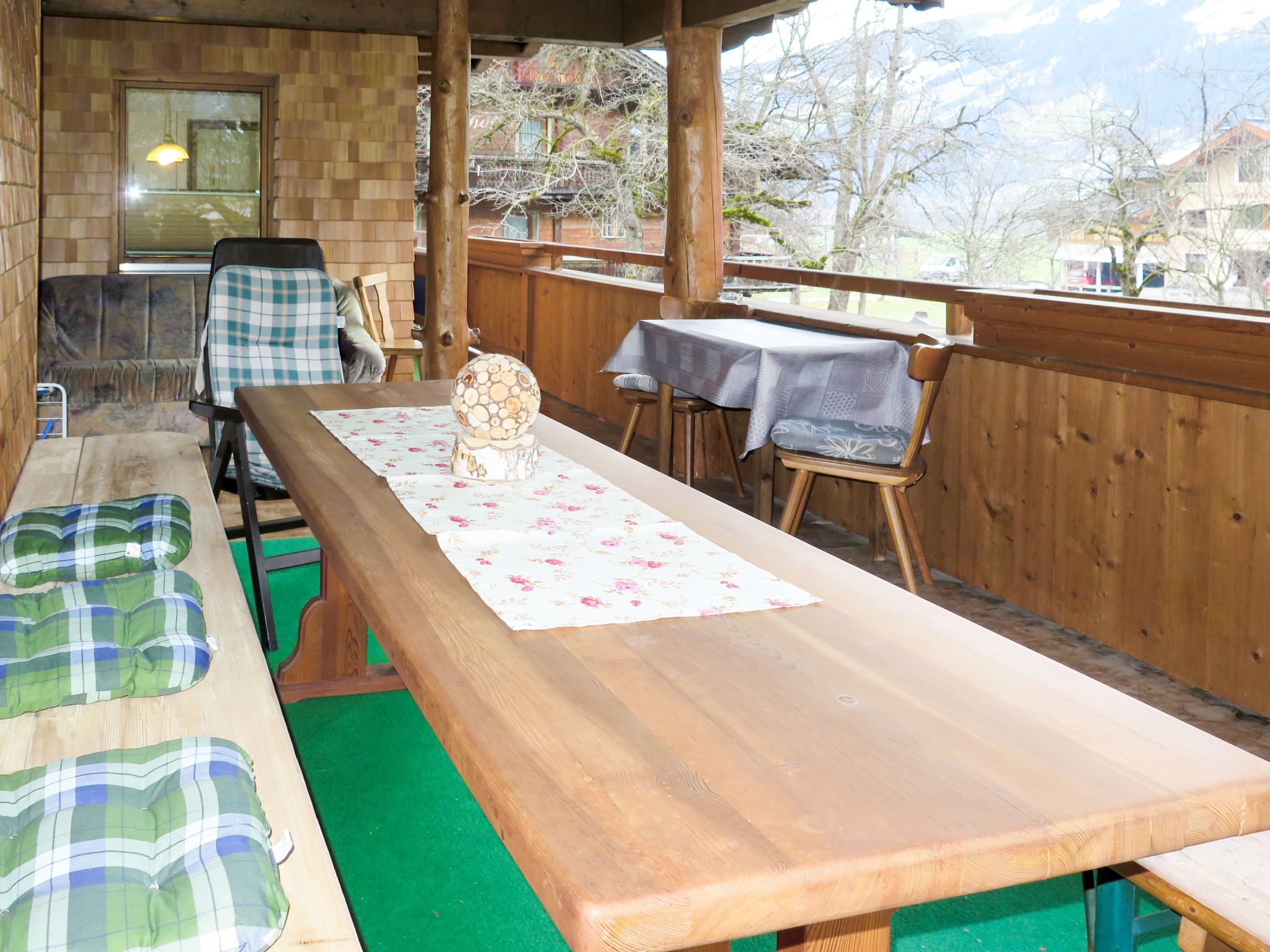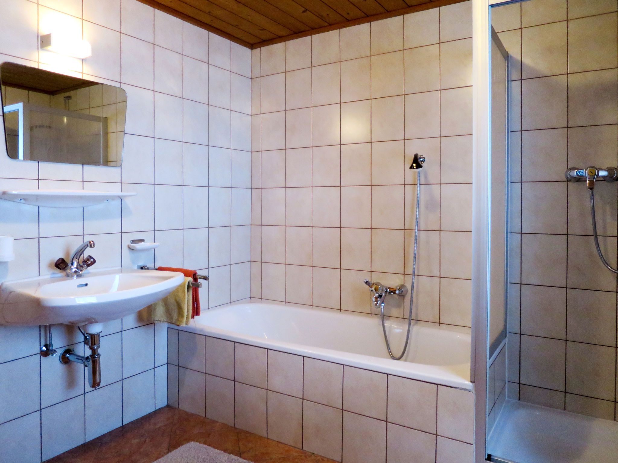 Anger, 4-Zimmer-Wohnung 80 m2 im 1. Stock. Zweckmässig und rustikal eingerichtet: 1 Doppelzimmer mit Waschbecken und Sat-TV. Ausgang zum Balkon. 1 Doppelzimmer mit Waschbecken. Ausgang zum Balkon. 1 Zimmer mit 1 x 2 Etagenbetten. Wohnküche (Geschirrspüler, 4 Glaskeramikplatten, Toaster, Wasserkocher, Mikrowelle, elektrische Kaffeemaschine) mit Essecke, Sat-TV und Radio. Ausgang zum Balkon. Bad/Dusche/WC. Ölheizung. Balkon 24 m2. Balkonmöbel, Liegestühle (2). Panoramasicht. Zur Verfügung: Kinderhochstuhl, Babybett. Internet (WLAN, gratis). Bitte beachten: Maximal 1 Haustier/Hund erlaubt. Eigener Eingang.