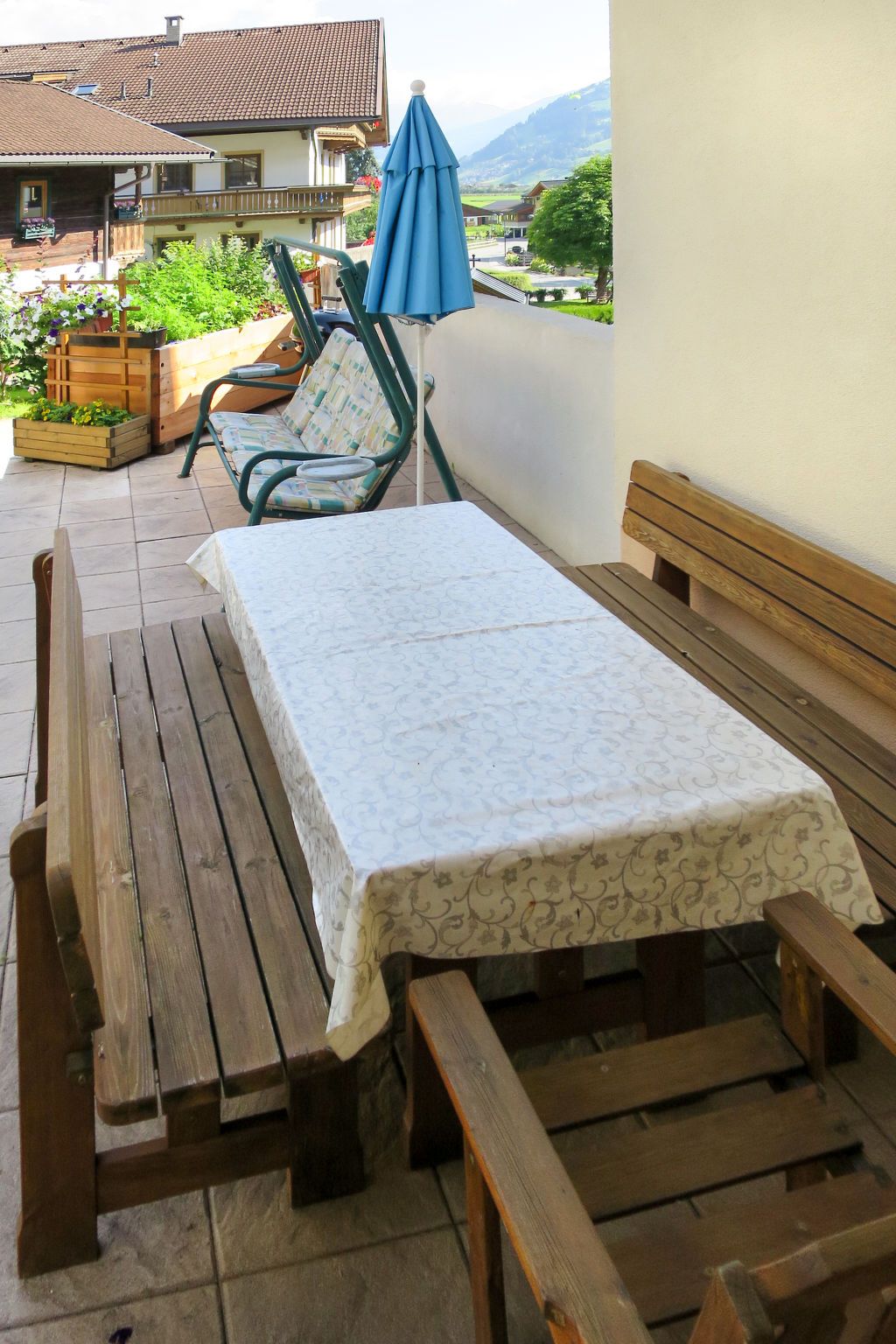 Holaus, 4-Zimmer-Wohnung 80 m2, im erhöhten Erdgeschoss. Geschmackvoll und gemütlich eingerichtet: Wohnzimmer mit Sat-TV. 3 Doppelzimmer. Küche (Backofen, Geschirrspüler, 4 Glaskeramikplatten, Toaster, Wasserkocher, Mikrowelle, elektrische Kaffeemaschine) mit Essecke und Sat-TV. Ausgang zum Balkon. Dusche, sep. WC. Holzheizung, Fussbodenheizung. Balkon, Terrasse teilweise überdacht. Terrassenmöbel, Gartengrill. Zur Verfügung: Kinderhochstuhl, Babybett. Internet (Wireless LAN, gratis). Bitte beachten: Nichtraucher-Unterkunft. Rauchmelder. Bei Belegung mit weniger Personen als der maximalen Personenzahl stehen nicht alle Wohneinheiten zur Verfügung.