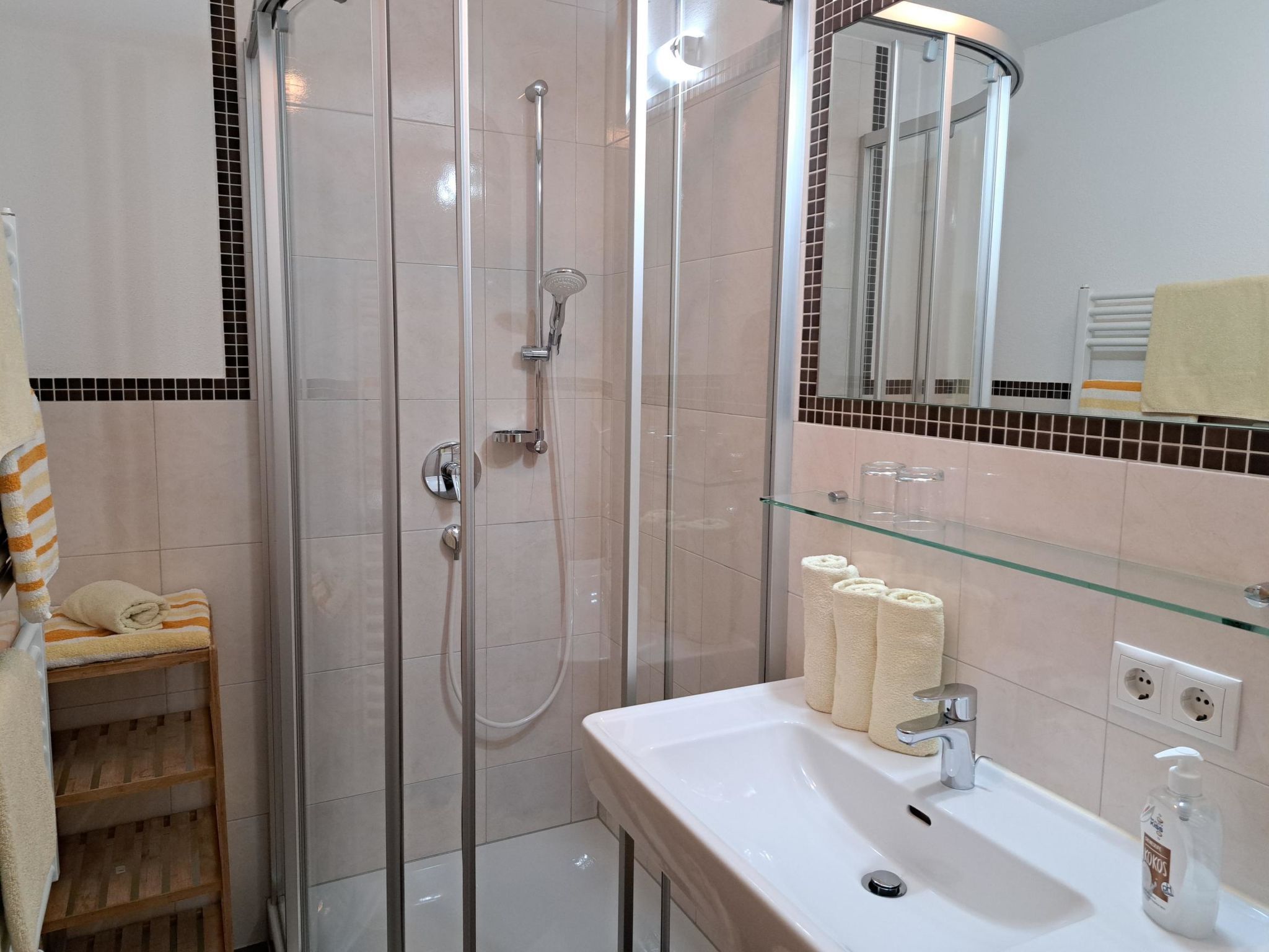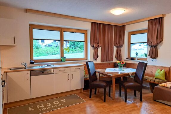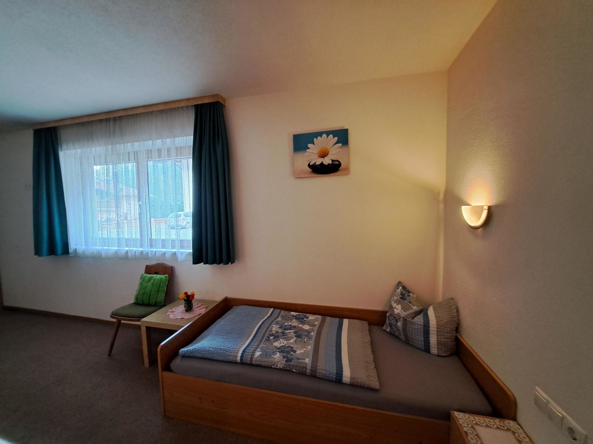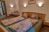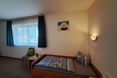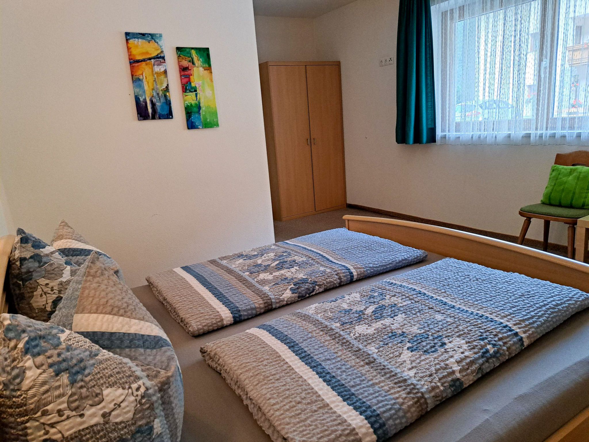 Haus Alina, 3-Zimmer-Wohnung 80 m2, im Erdgeschoss. Hell, zweckmässig eingerichtet: 1 Zimmer mit 1 Bett, 1 Doppelbett und Dusche/WC. 1 Zimmer mit 1 Bett und 1 Doppelbett. Wohnküche (Backofen, Geschirrspüler, 4 Glaskeramikplatten, Toaster, Wasserkocher, Mikrowelle, elektrische Kaffeemaschine) mit 1 Doppeldiwanbett, Essecke und Sat-TV. Dusche/WC. Heizung. Teppichboden. Terrasse überdacht. Terrassenmöbel. Zur Verfügung: Kinderhochstuhl, Babybett. Internet (WLAN, gratis). Bitte beachten: Nichtraucher-Unterkunft. Rauchmelder, Feuerlöscher. Bei Belegung mit weniger Personen als der maximalen Personenzahl stehen nicht alle Schlafzimmer zur Verfügung.