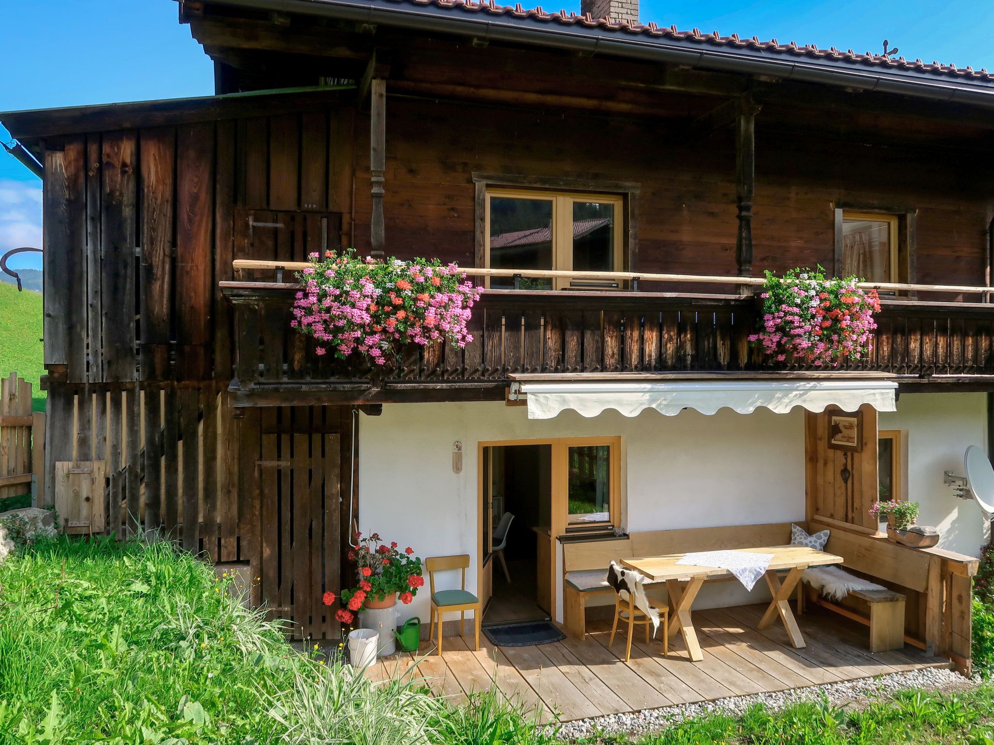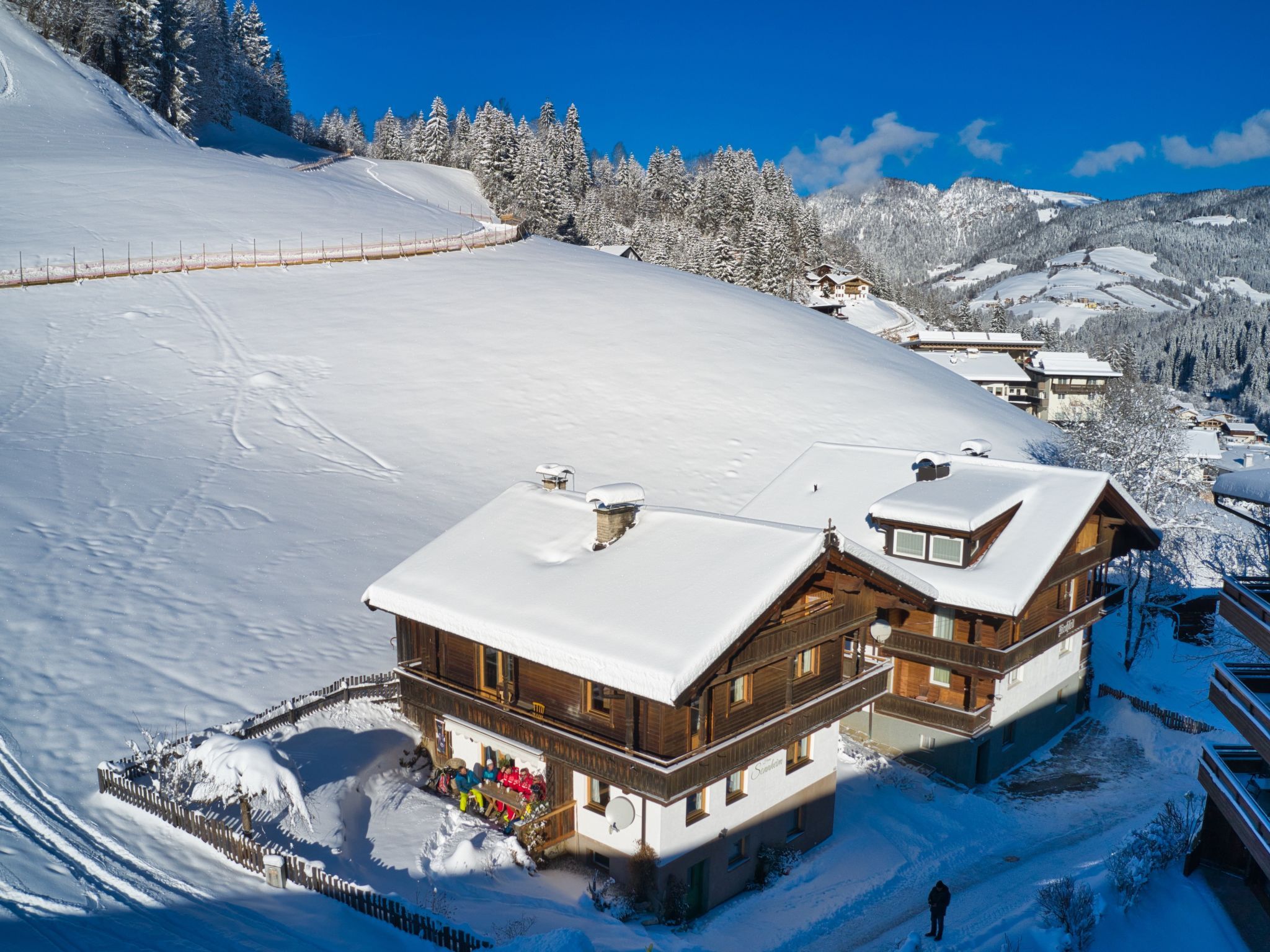 Auffach: Sehr schönes, gemütliches Haus Sonnheim, 870 m.ü.M., renoviert im Jahre 2019. 50 m vom Zentrum von Auffach, 5 km vom Zentrum von Oberau, 17 km vom Zentrum von Wörgl, ruhige, sonnige Lage am Hang, exzellente Lage: Absolut zentral und dennoch ruhig, 300 m vom Skigebiet. Zur Alleinbenutzung: Grundstück, terrassierter Garten (nicht eingezäunt) mit Rasen. Im Hause: Spielzimmer, Einstellraum für Fahrräder, Sonnenterrasse, Skiraum, Zentralheizung, Skischuhtrockner. Zur Verfügung: Schlitten (4). Abstellraum vorhanden. Treppenweg (3 Stufen) bis zum Haus. Parkplatz (für 3 Autos) beim Haus. Lebensmittelgeschäft 500 m, Supermarkt 500 m, Restaurant 250 m, Bar 300 m, Zentrum zu Fuss in 4 Minuten erreichbar, Bushaltestelle 250 m, Freibad 6.7 km. Wanderwege ab Haus 10 m, Bergeisenbahn, Skilift, Skibushaltestelle 300 m, Skischule, Schlittelbahn 20 m, Langlaufloipe 4.5 km, Eisfeld 5 km, Kinderspielplatz 40 m. Nahe gelegene Sehenswürdigkeiten: Freizeitpark Drachental Wildschönau 5 km, Alpine Coaster im Drachental 5 km, Holzmuseum Auffach 600 m, Bergbauernmuseum 6.3 km, Bergdoktordörfer Ellmau und Going 35 km. Bekannte Skigebiete sind gut erreichbar: SkiJuwel Alpbachtal - Wildschönau 300 m, Skiwelt Wilder Kaiser - Brixental 17 km. Wandergebiete: Schatzberg, Markbachjoch, Gratlspitz, Wilder Kaiser / Brixental, Kitzbüheler Alpen. Bitte beachten: Gratis Skibus. Der gratis Skibus fährt zum Skigebiet SkiJuwel Alpbachtal - Wildschönau. Bei guter Schneelage Zufahrt mit den Skiern bis zum Haus. Die Vorteile der Gästekarte müssen selbst in Erfahrung gebracht werden. Laden von E-Autos beim Ferienobjekt nicht möglich.