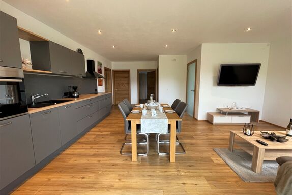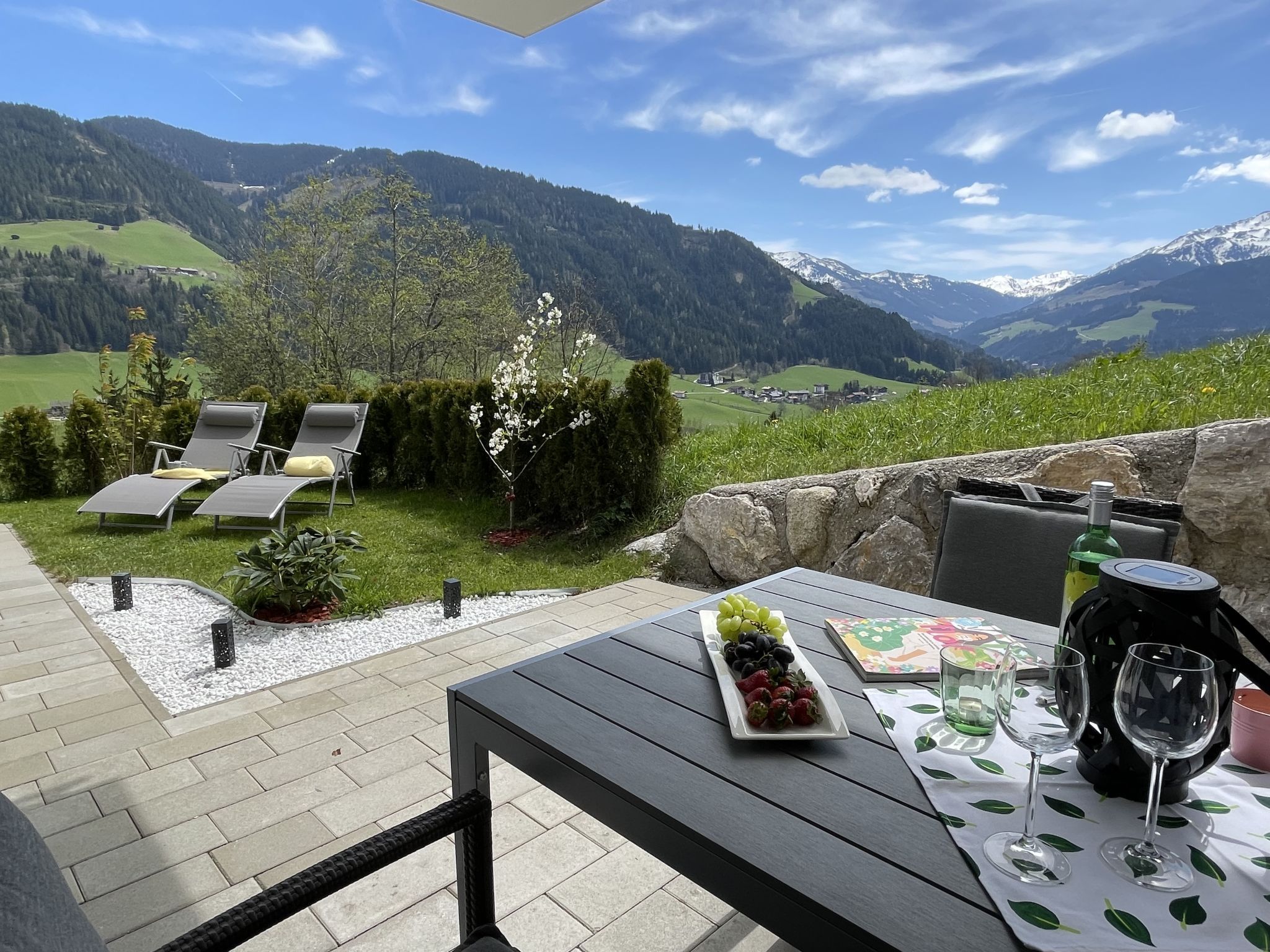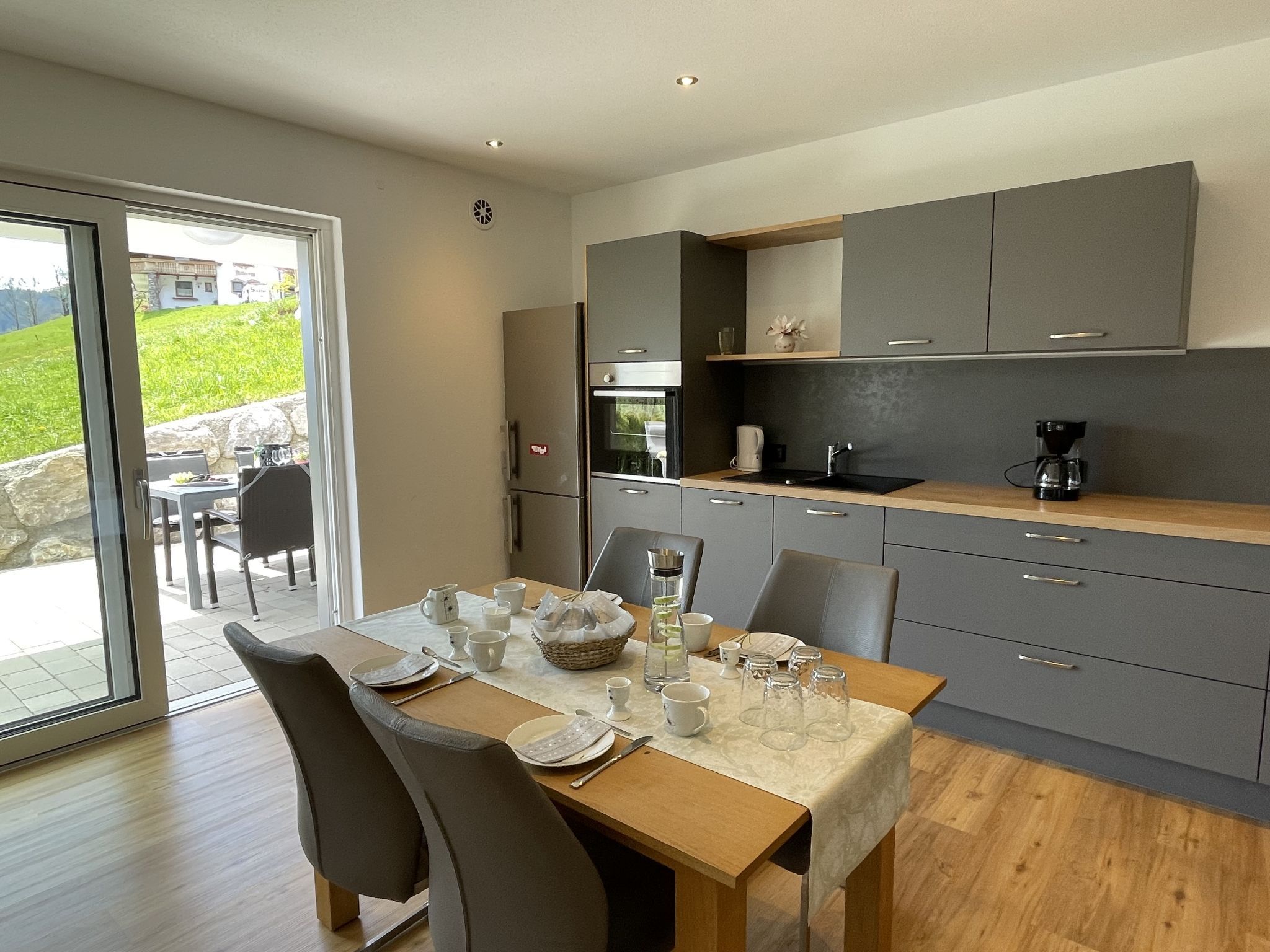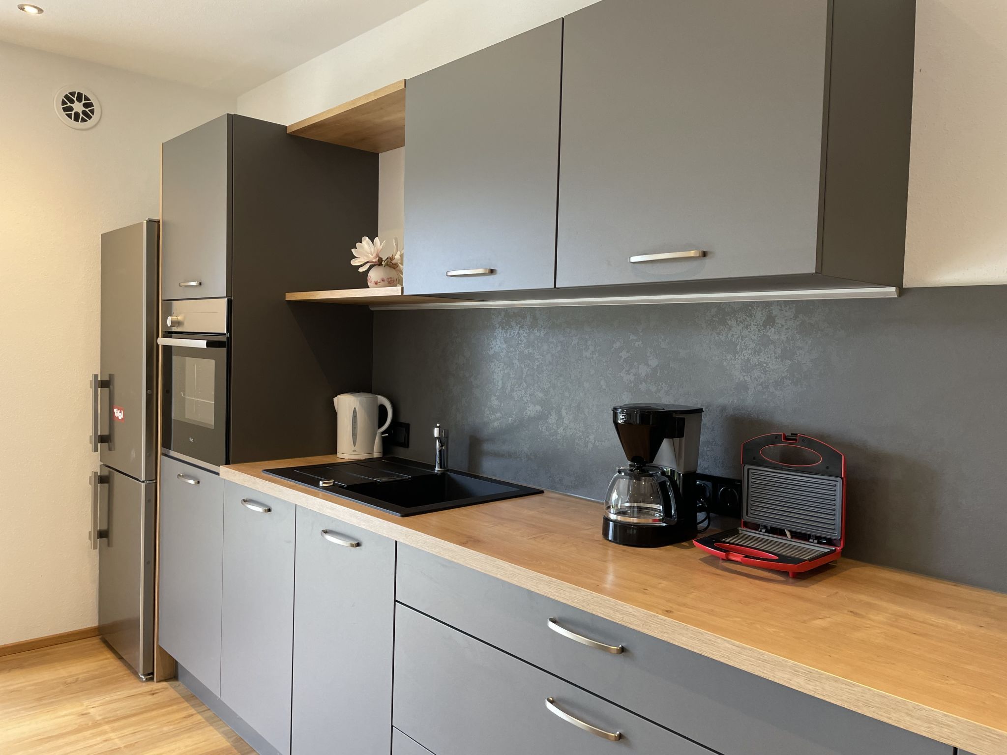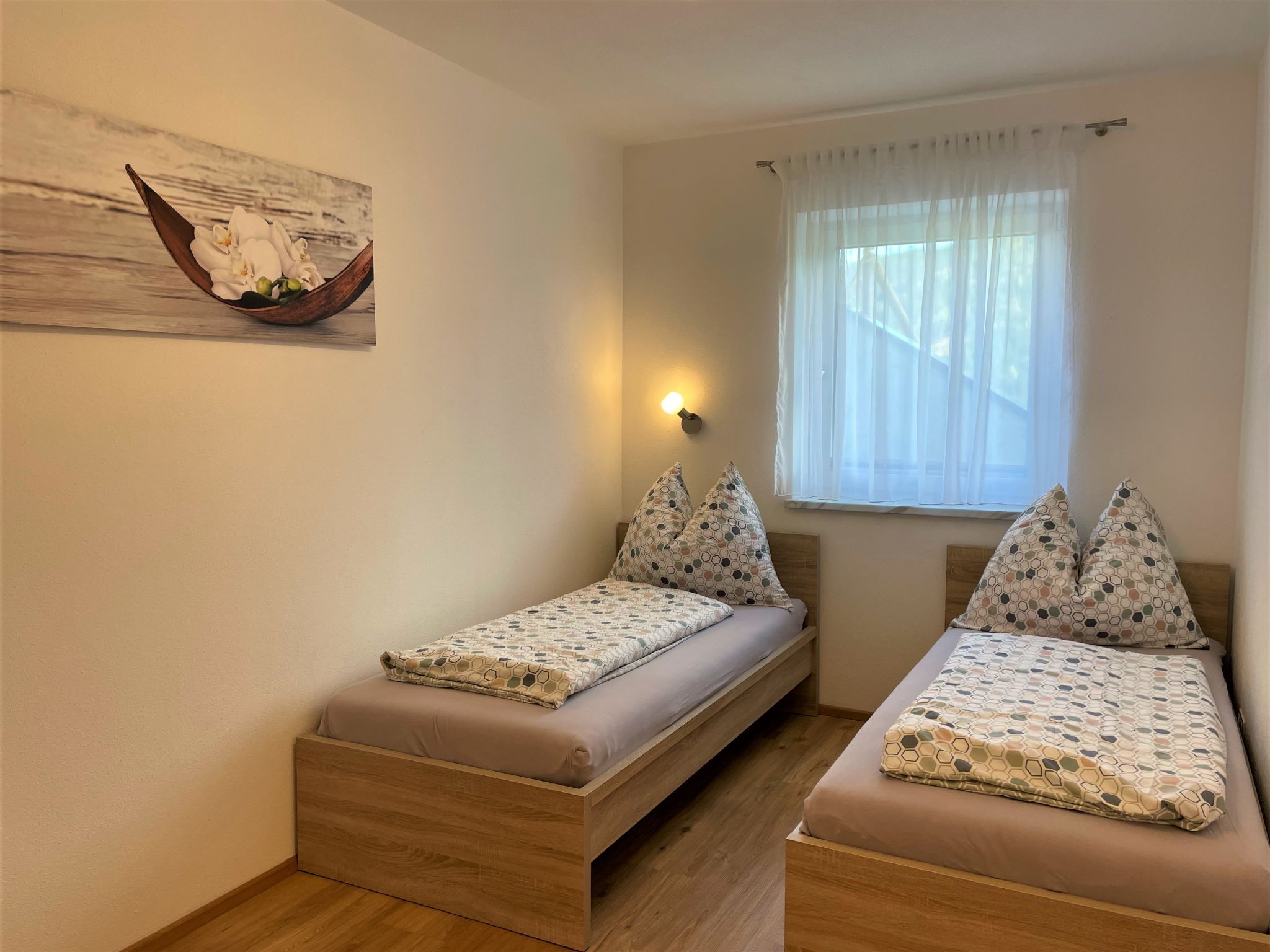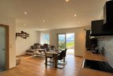 Bergblick, 3-Zimmer-Wohnung 79 m2, im ebenerdigen Untergeschoss. Geräumig und hell, schön und modern eingerichtet: Wohn-/Esszimmer mit Esstisch, Sat-TV und Internationale TV-Sender (Flachbildschirm). Ausgang zur Terrasse. 1 Doppelzimmer mit Sat-TV (Flachbildschirm). 1 Zimmer mit 2 Betten. Offene Küche (Backofen, Geschirrspüler, 4 Glaskeramikplatten, Toaster, Wasserkocher, Mikrowelle, Tiefkühler, elektrische Kaffeemaschine). Ausgang zur Terrasse. Dusche/WC. Heizung. Holzdielenboden. Grosse Terrasse teilweise überdacht. Terrassenmöbel, Gartengrill, Liegestühle (2), Abstellkammer. Herrliche Panoramasicht auf die Berge, das Tal und die Ortschaft. Zur Verfügung: Kinderhochstuhl, Babybett, Haartrockner. Internet (Wireless LAN, gratis). Bitte beachten: Nichtraucher-Unterkunft. Eigener Eingang, Feuerlöscher.