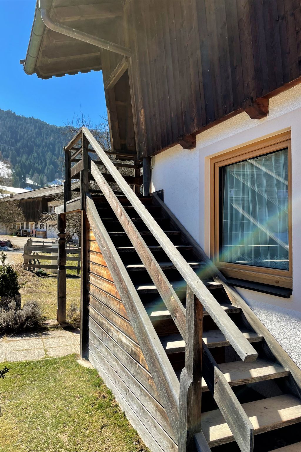 Barbara, 6-Zimmer-Haus 130 m2 auf 2 Stockwerken. Hell, einfach und gemütlich eingerichtet: 1 Zimmer mit 1 Diwanbett und 1 Doppelbett. 1 Zimmer mit 2 Betten. Grosse Wohnküche (4 Kochplatten, Backofen, Geschirrspüler, Toaster, Wasserkocher, Mikrowelle, elektrische Kaffeemaschine) mit Essecke und Sat-TV. Dusche/WC. Heizung. Obergeschoss: 1 Doppelzimmer. 1 Zimmer mit 2 Betten und 1 Klappbett. Wohnküche (4 Kochplatten, Backofen, Geschirrspüler, Toaster, Wasserkocher, Mikrowelle, elektrische Kaffeemaschine) mit 1 Diwanbett, Essecke und Sat-TV. Bad/Dusche, sep. WC, Doppelwaschbecken. Heizung. 2 Balkone. Balkonmöbel. Schöne Sicht auf die Skipiste und Markbachjoch. Zur Verfügung: Babybett. Internet (Wireless LAN, gratis). Bitte beachten: Nichtraucher-Haus. Maximal 2 Haustiere/Hunde erlaubt. Rauchmelder, Feuerlöscher.