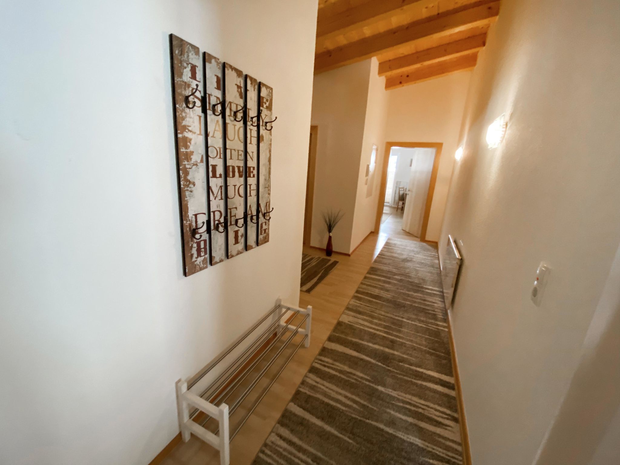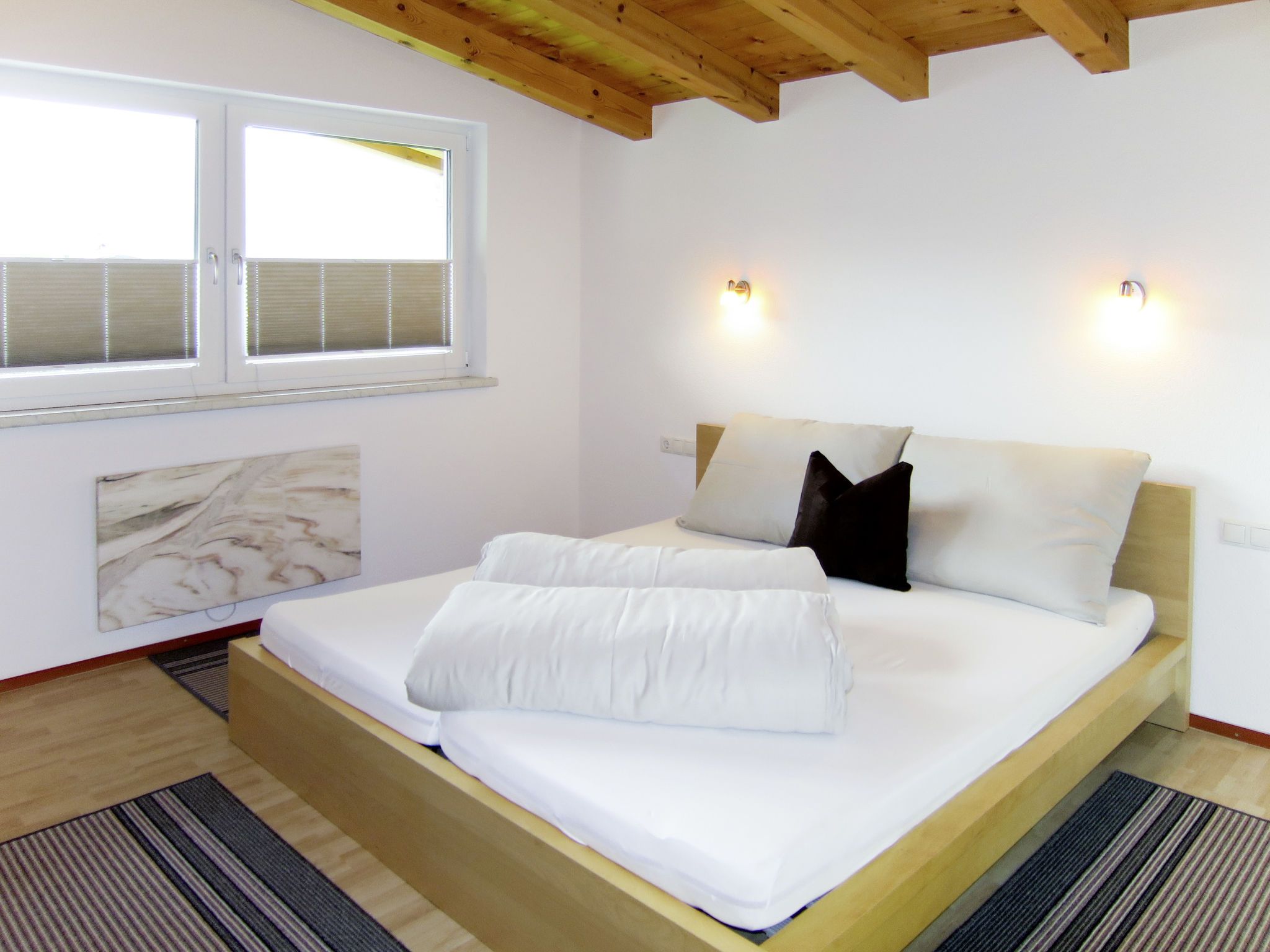 Lili, 3-Zimmer-Wohnung 70 m2 im 1. Stock. Hell, einfach und gemütlich eingerichtet: abgeschrägtes Wohn-/Schlafzimmer mit 1 Doppeldiwanbett, Esstisch und Sat-TV. Ausgang zum Balkon. 1 Zimmer mit 1 Doppelbett. 1 Zimmer mit 2 Betten. Offene Küche (Backofen, Geschirrspüler, 4 Glaskeramikplatten, Mikrowelle, Tiefkühler, elektrische Kaffeemaschine). Dusche, sep. WC. E-Heizung. Balkon. Balkonmöbel, Abstellkammer. Zur Verfügung: Kinderhochstuhl, Babybett. Internet (Wireless LAN, gratis). Bitte beachten: Nichtraucher-Unterkunft. Maximal 1 Haustier/Hund erlaubt. Hinweis: Das Mitbringen von Haustieren ist nur im Sommer erlaubt.