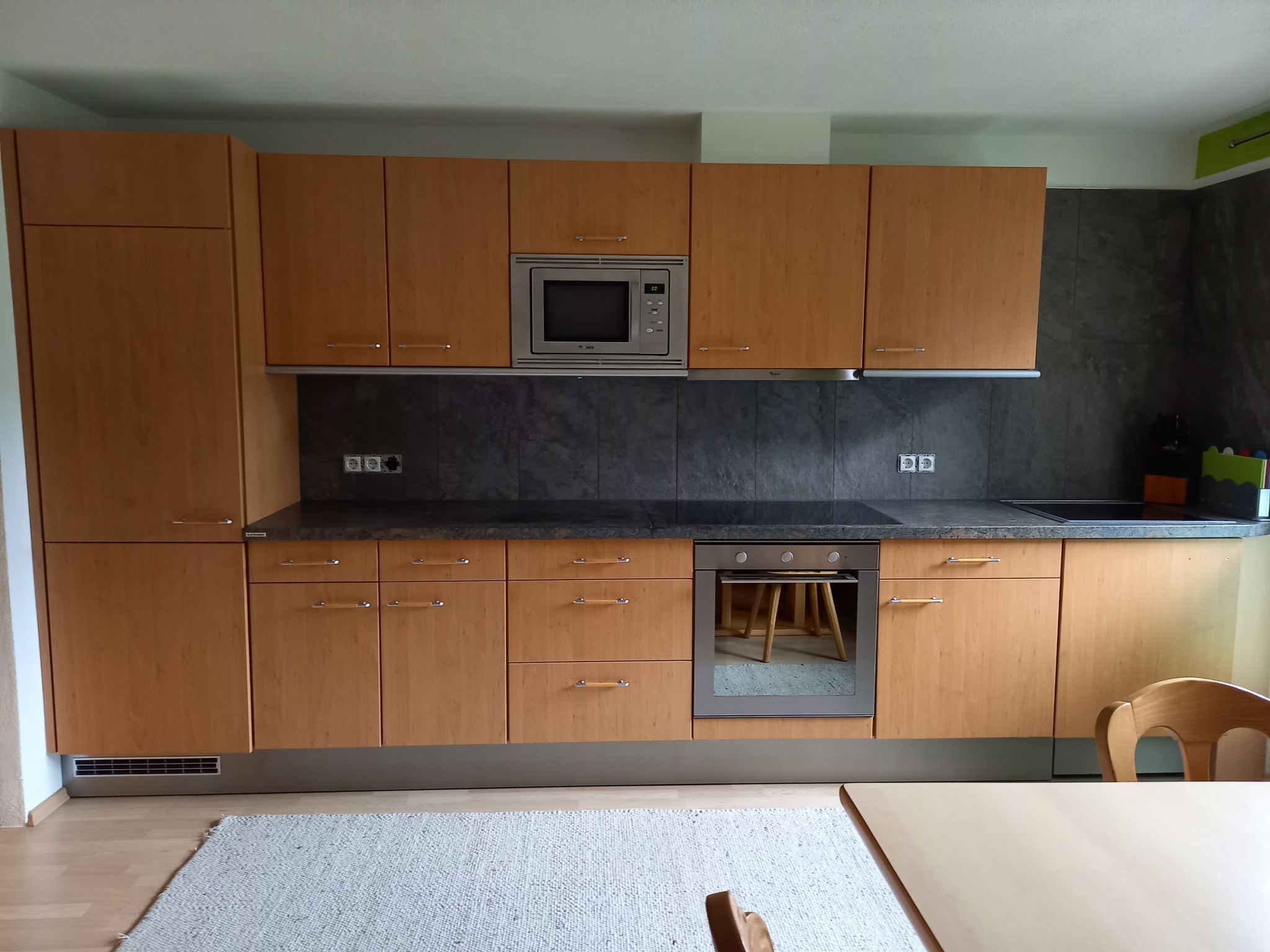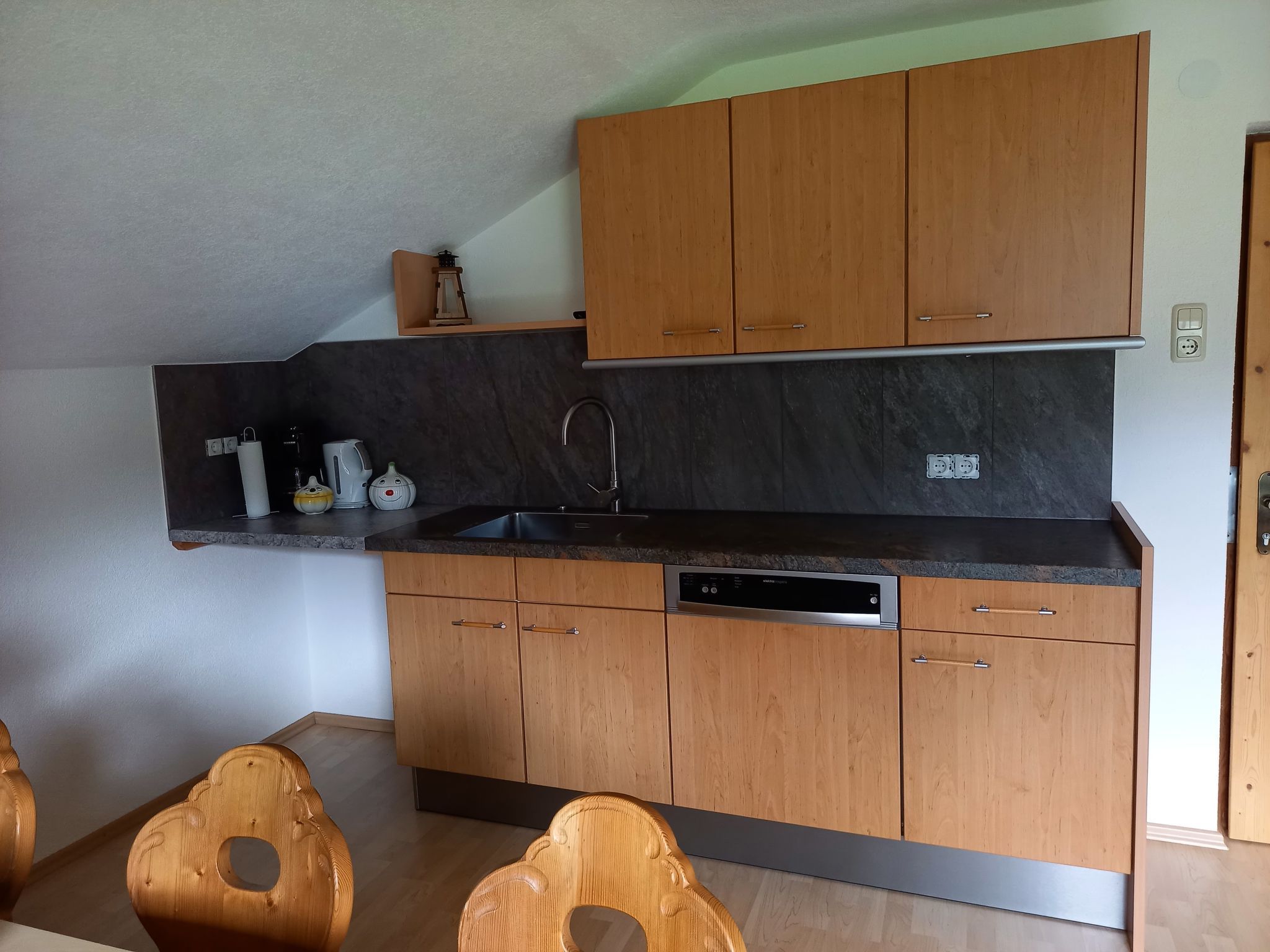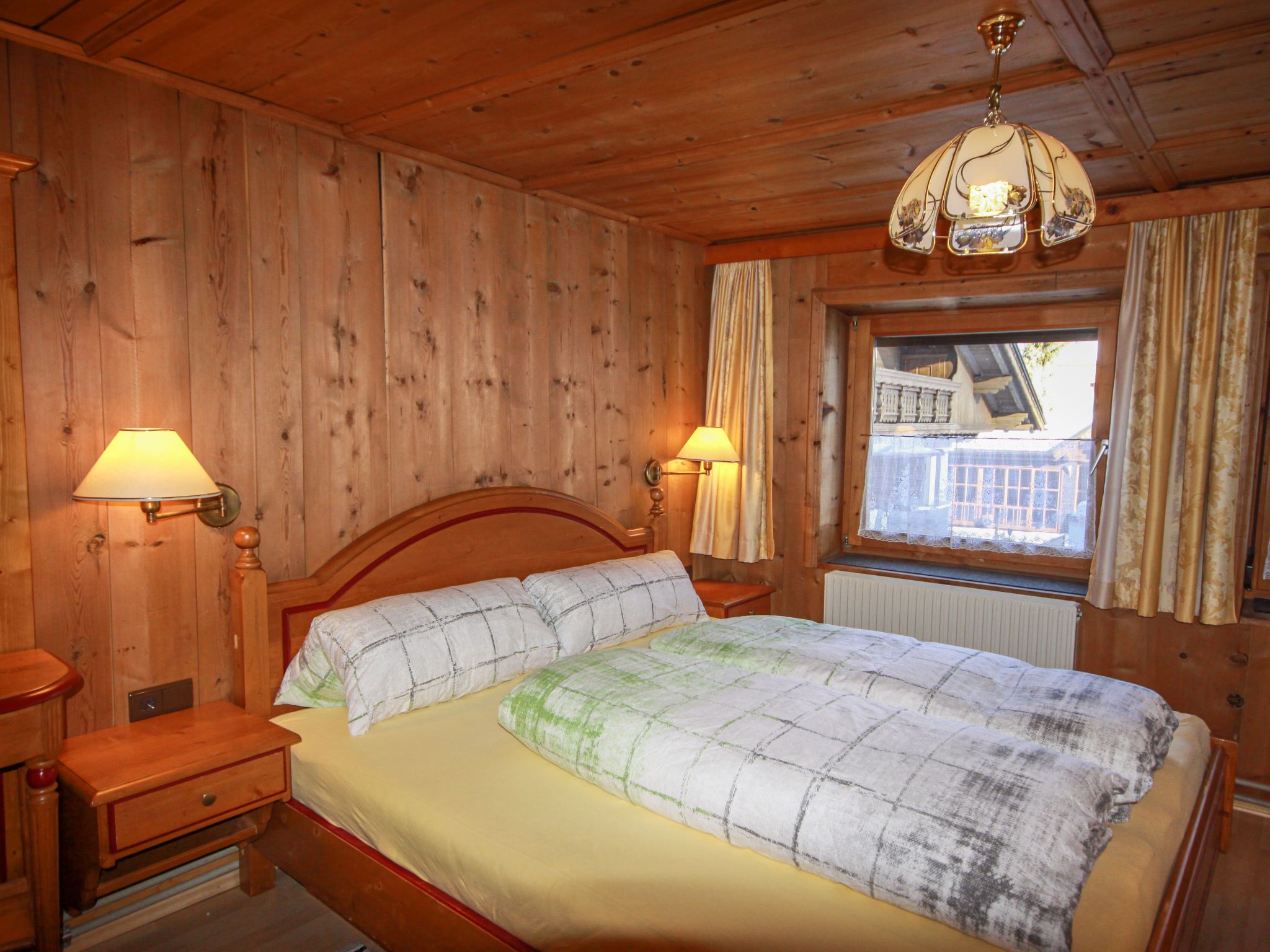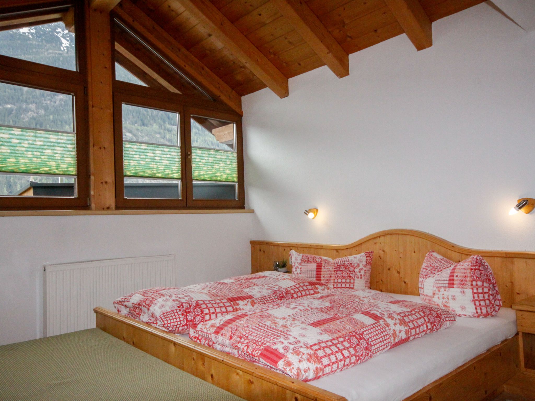 Alpenglühen, 5-Zimmer-Wohnung 100 m2 auf 2 Stockwerken. Hell, teilweise renoviert, gemütlich und mit viel Holz eingerichtet: Obergeschoss: 1 Zimmer mit 1 Doppelbett und Dusche. Sep. WC. 2. Obergeschoss: 1 abgeschrägtes Zimmer mit 1 Doppelbett und Dusche/WC. 1 abgeschrägtes Zimmer mit 1 Bett, 1 Doppelbett und Dusche/WC. Ausgang zum Balkon. 1 abgeschrägtes Zimmer mit 1 Bett, 1 Doppelbett und Dusche/WC. Wohnküche (Backofen, Geschirrspüler, 4 Glaskeramikplatten, Toaster, Wasserkocher, Mikrowelle, Tiefkühler, elektrische Kaffeemaschine) mit Esstisch, Essecke und Sat-TV. Ausgang zum Balkon. Ölheizung. Balkon. Zur Verfügung: Babybett. Internet (Wireless LAN, gratis). Bitte beachten: ein Doppelzimmer liegt außerhalb der Wohnung. Nichtraucher-Unterkunft. Rauchmelder.