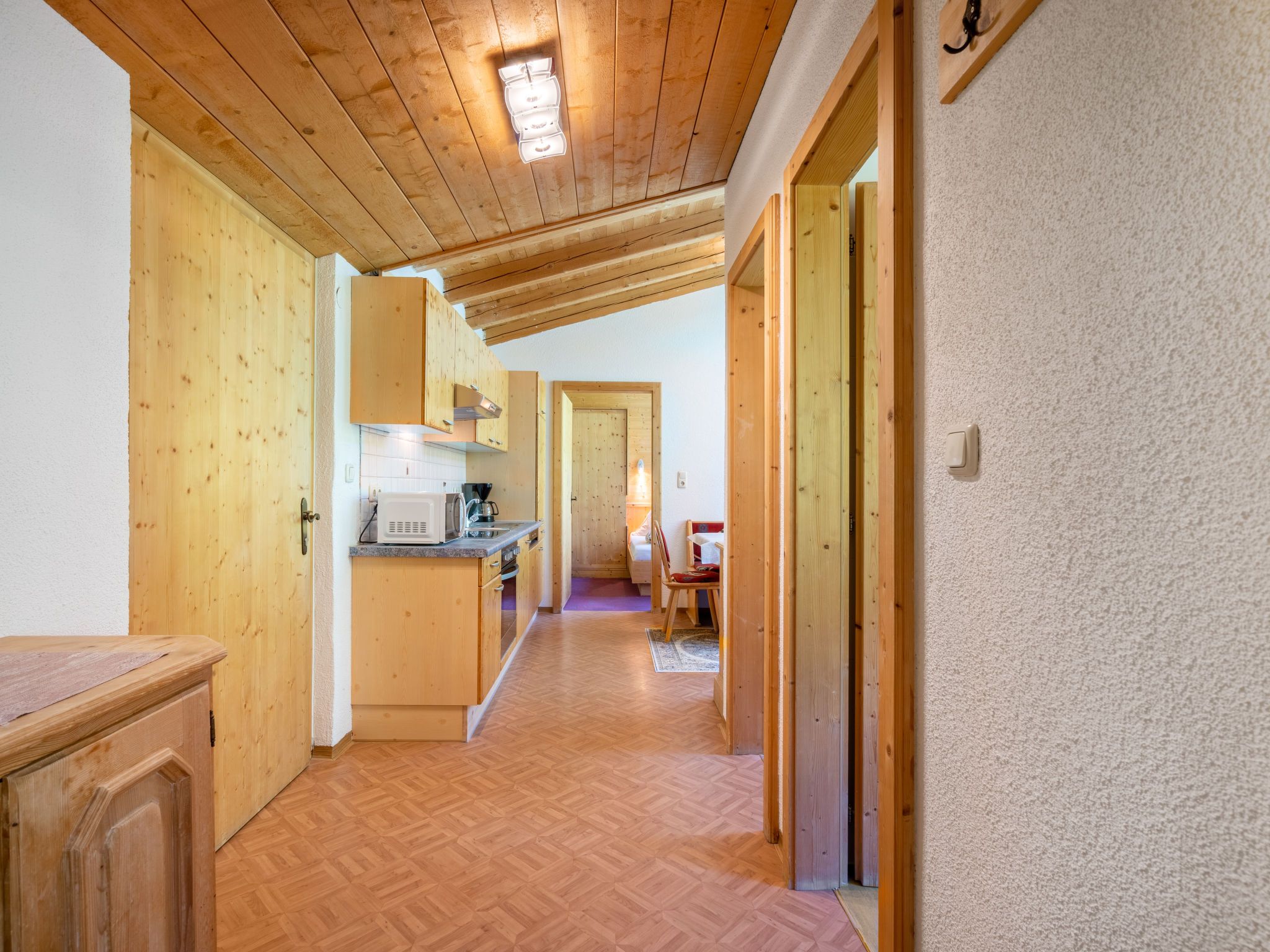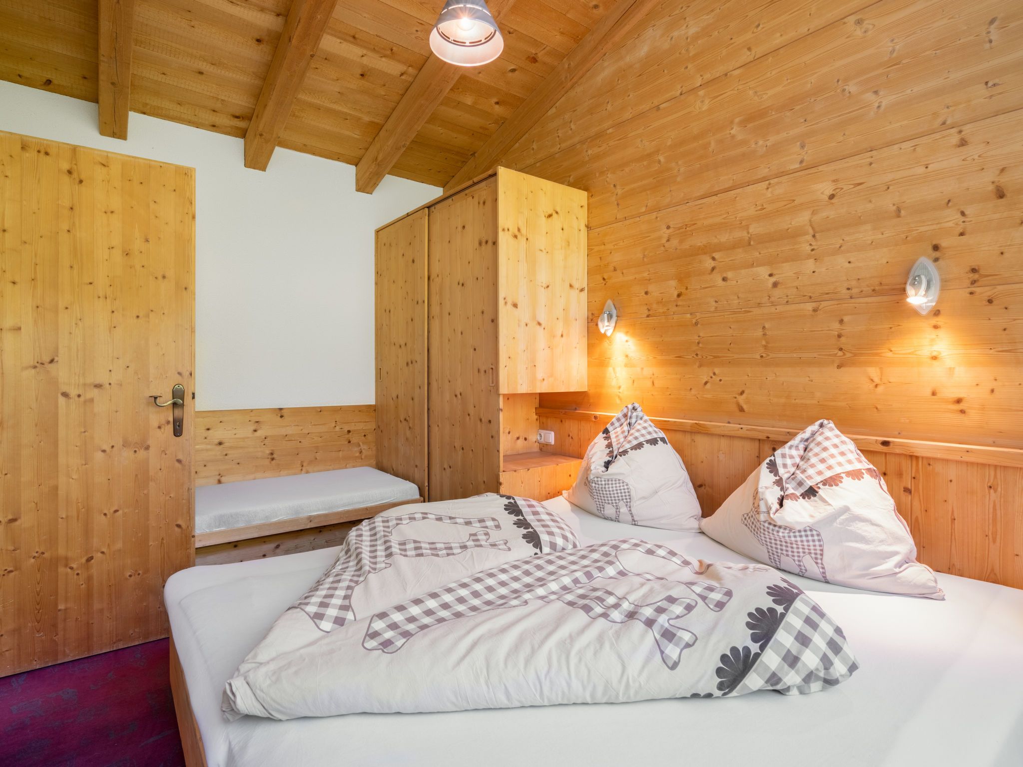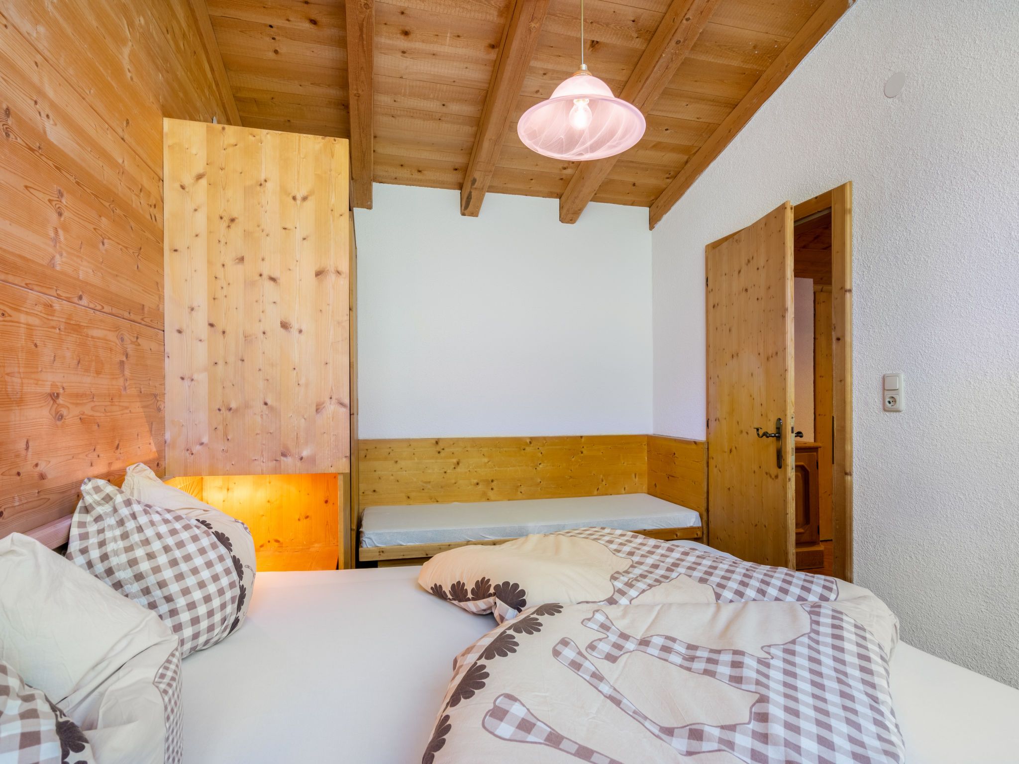 Nadine, 3-Zimmer-Wohnung 54 m2, im Dachgeschoss. Gemütlich und mit viel Holz eingerichtet: 2 Zimmer, jedes Zimmer mit 1 Diwanbett (65 cm), 1 Doppelbett. Wohnküche (4 Kochplatten, Backofen, Geschirrspüler, elektrische Kaffeemaschine) mit Esstisch, Sat-TV. Dusche, sep. WC. Ölheizung. Balkon. Balkonmöbel. Zur Verfügung: Internet (Wireless LAN, extra). Bitte beachten: Rauchmelder.