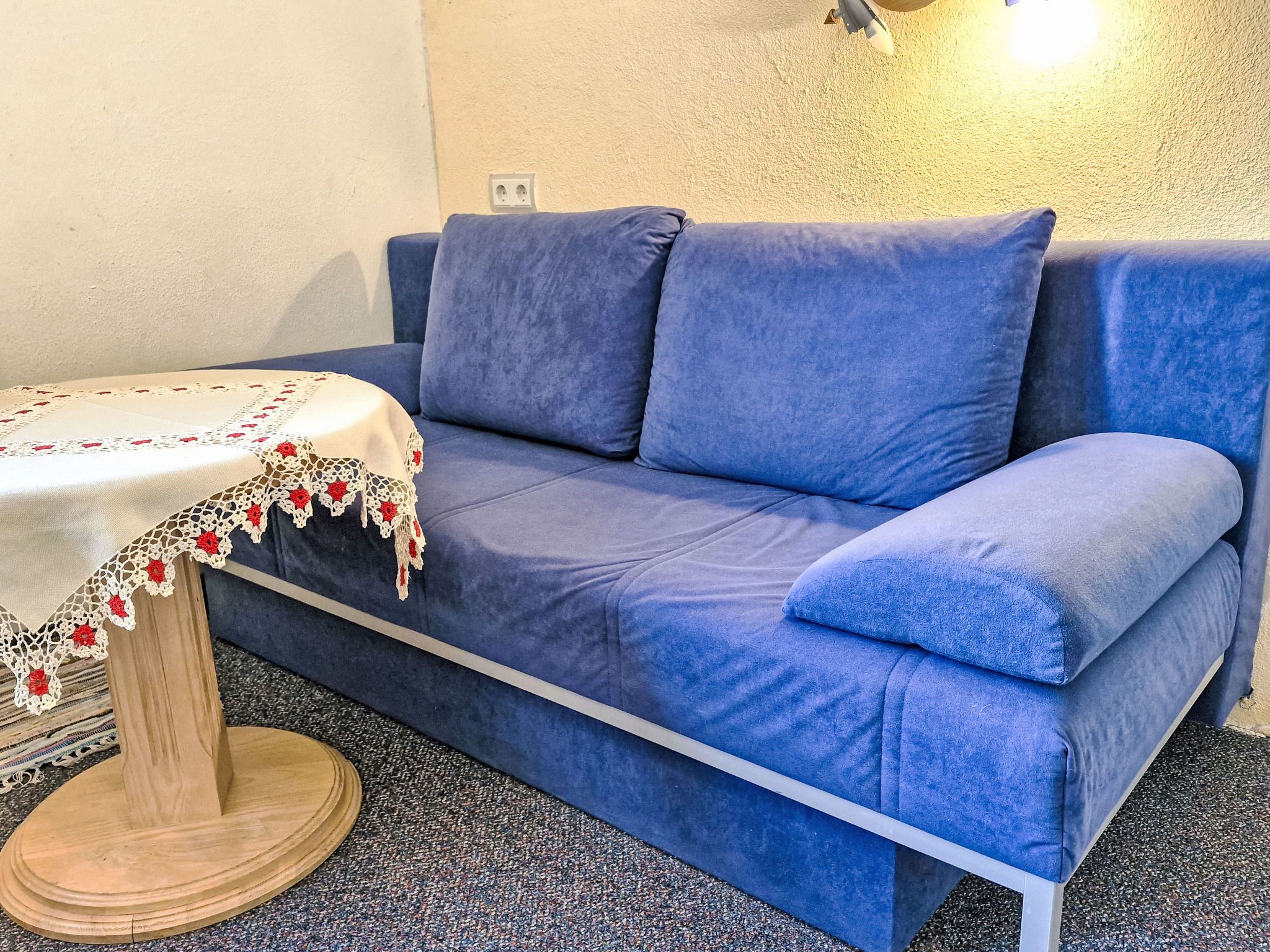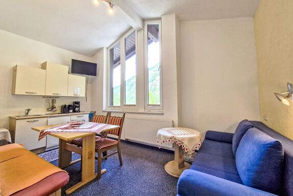 Simone, 2-Zimmer-Wohnung 35 m2 im 2. Stock. Zweckmässig eingerichtet: 1 Zimmer mit 1 Doppelbett, Dusche/WC und Sat-TV. Wohnküche (Mini-Backofen, 2 Glaskeramikplatten, elektrische Kaffeemaschine) mit Esstisch, 1 Doppeldiwanbett und Sat-TV. Ölheizung. Zur Verfügung: Kinderhochstuhl, Babybett bis 2 Jahre. Internet (Wireless LAN, gratis). Bitte beachten: Maximal 1 Haustier/Hund erlaubt. Eigener Eingang. Hinweis: Dusche/WC nur durch halbhohe Tür abgeteilt. Bei Belegung mit weniger Personen als der maximalen Personenzahl stehen nicht alle Wohneinheiten zur Verfügung.