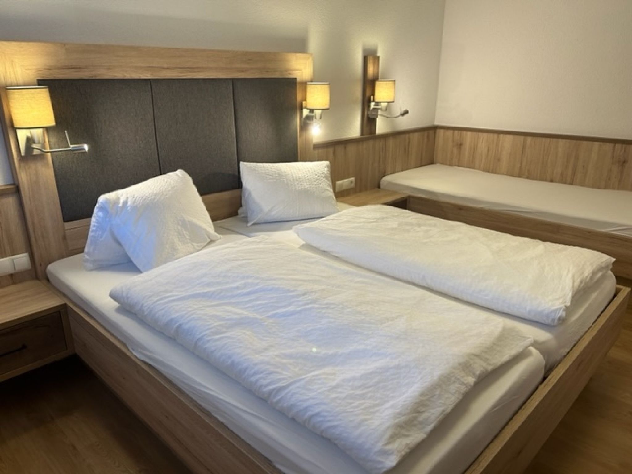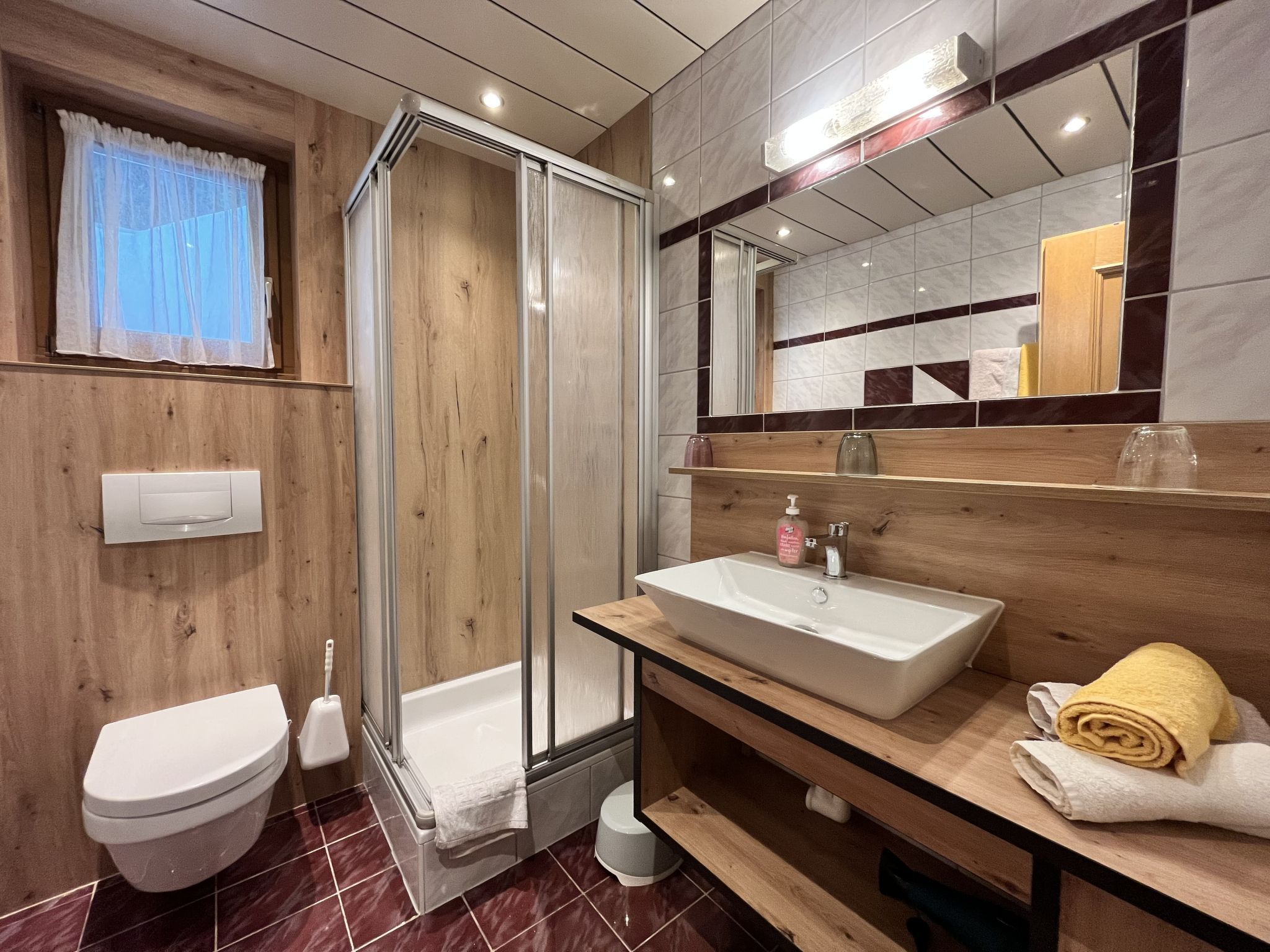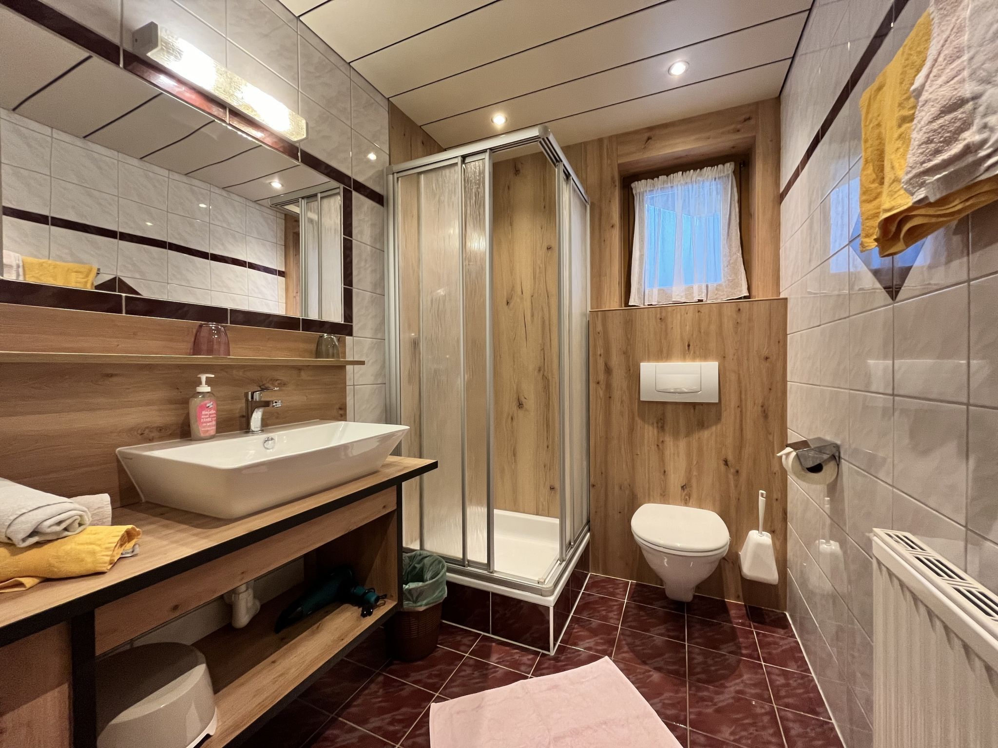 Moosbichl, 4-Zimmer-Wohnung 100 m2, im Erdgeschoss. Zweckmässig eingerichtet: Wohn-/Esszimmer mit Esstisch und Sat-TV. 3 Zimmer, jedes Zimmer mit 1 Bett, 1 Doppelbett und Dusche/WC. Kleine Küche (Backofen, Geschirrspüler, 4 Glaskeramikplatten, Wasserkocher, Mikrowelle, elektrische Kaffeemaschine). Ölheizung. Teppichboden. Panoramasicht. Zur Verfügung: Kinderhochstuhl, Babybett bis 2 Jahre (extra). Internet (Wireless LAN, gratis). Bitte beachten: Nichtraucher-Unterkunft.