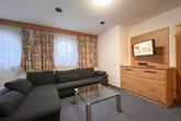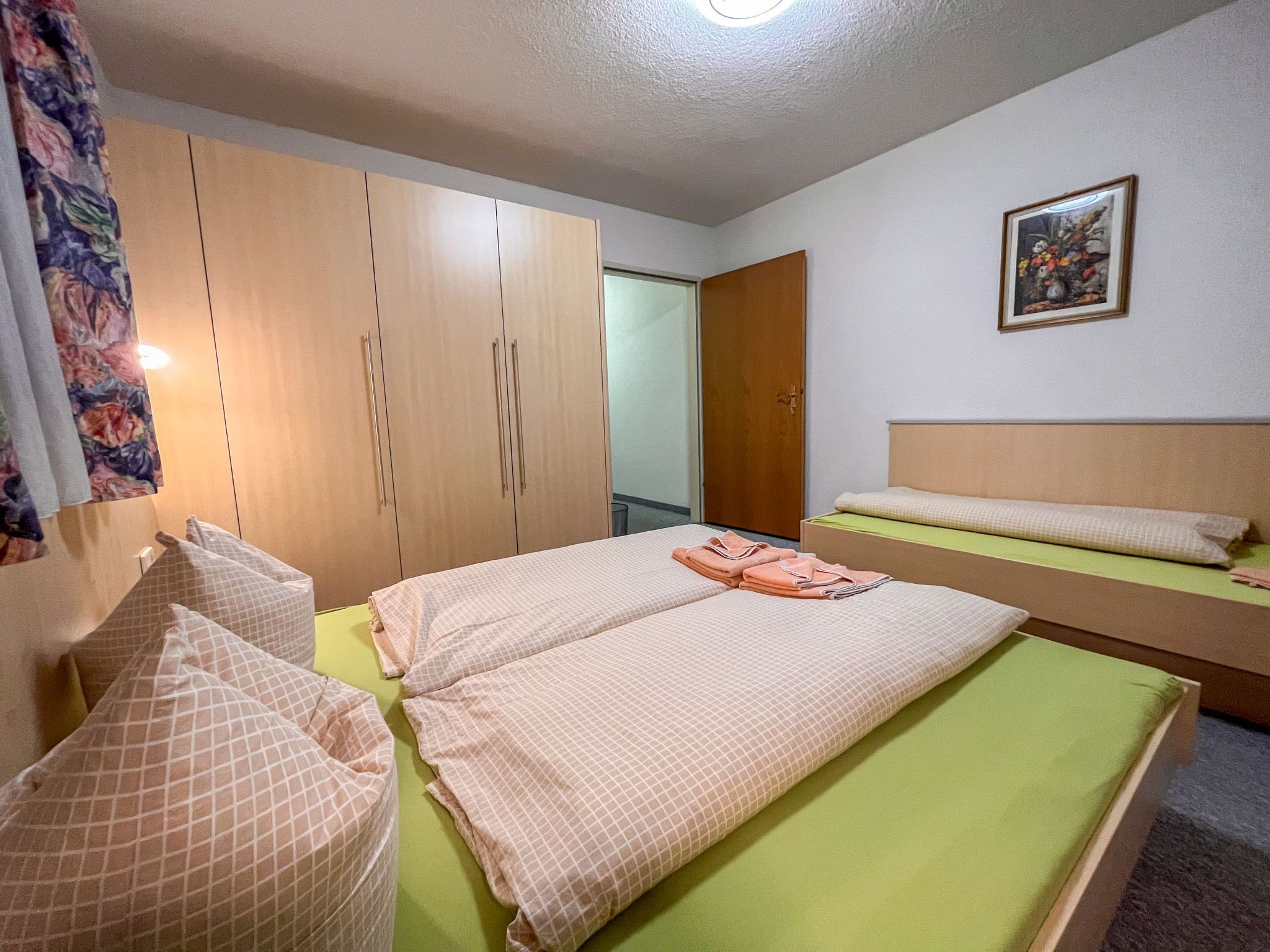 Wildmoos, 4-Zimmer-Wohnung 100 m2, im Erdgeschoss. Zweckmässig eingerichtet: Wohn-/Schlafzimmer mit 1 Bett, Esstisch, Sat-TV und Radio. 1 Zimmer mit 1 Doppelbett und Dusche/WC. 1 Zimmer mit 2 Betten. 1 Zimmer mit 1 Bett und 1 Doppelbett. Kochnische (Geschirrspüler, 4 Glaskeramikplatten, elektrische Kaffeemaschine). Dusche/WC, sep. WC. Fussbodenheizung. Zur Verfügung: Safe. Internet (WLAN, gratis). Bitte beachten: Nichtraucher-Unterkunft. Eigener Eingang. Hinweis: Zwei Zimmer mit Schachtfenster (keine Aussicht).