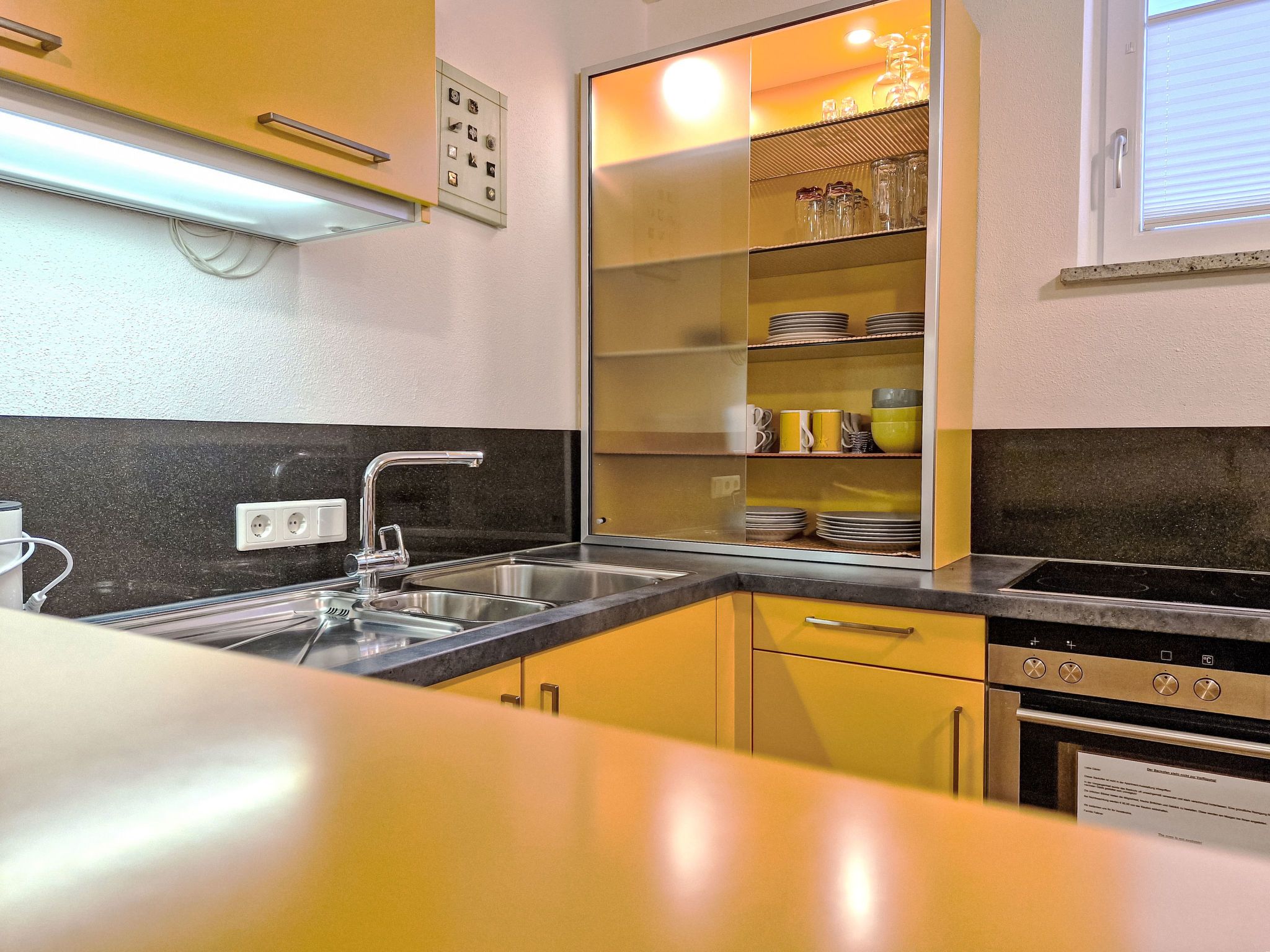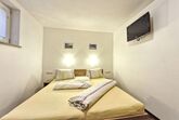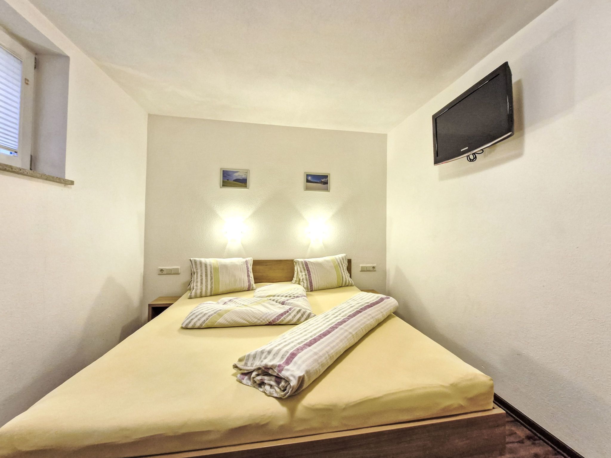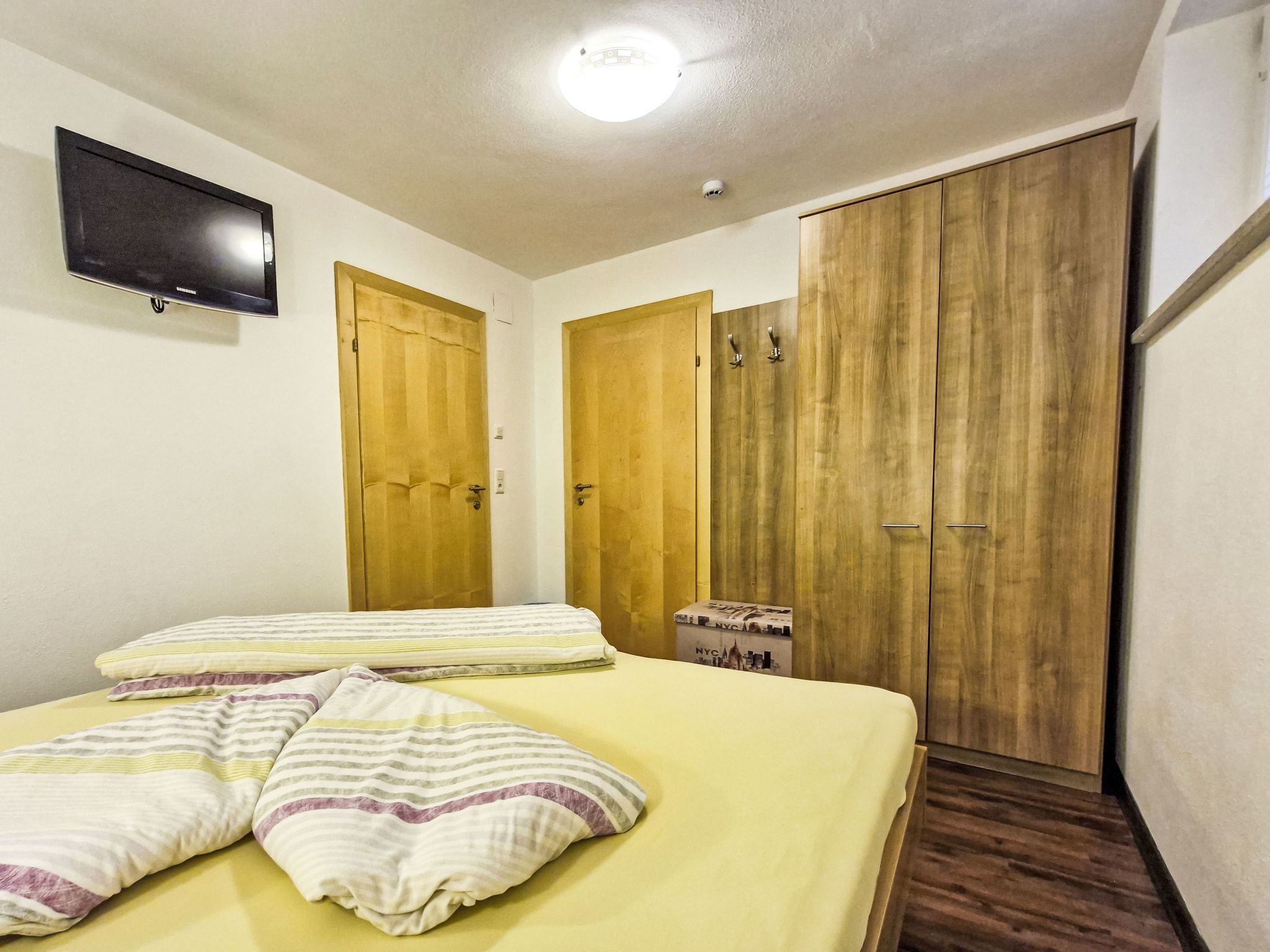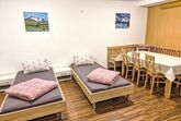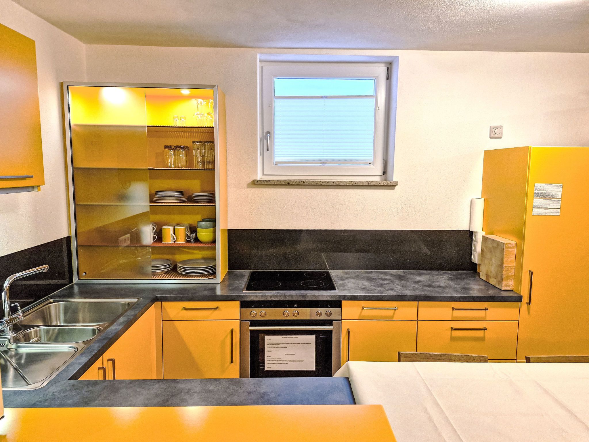 Opal, 2-Zimmer-Studio 45 m2, unteres Geschoss. Zweckmässig und schön eingerichtet: Wohn-/Schlafzimmer mit 1 Doppelbett und Dusche/WC. Wohnküche (Geschirrspüler, 4 Glaskeramikplatten, Wasserkocher, Mikrowelle, elektrische Kaffeemaschine) mit Esstisch, 3 Betten und Kabel-TV. Sep. WC. Fussbodenheizung. Keine Sicht. Zur Verfügung: Internet (Wireless LAN, gratis). Bitte beachten: ein Doppelzimmer liegt außerhalb der Wohnung. Nichtraucher-Unterkunft. Rauchmelder. Hinweis: Alle Zimmer mit Schachtfenster (keine Aussicht).