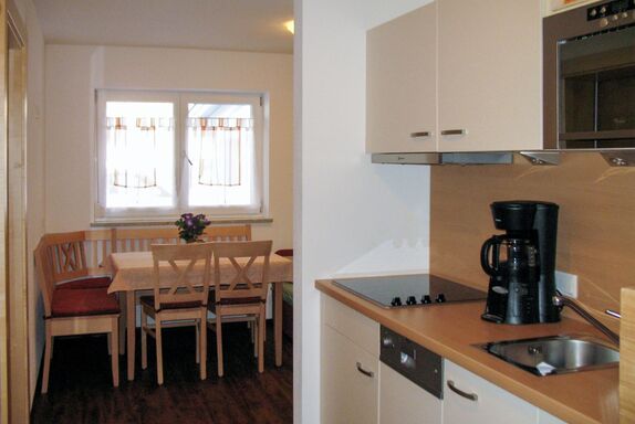 Bergkristall, 2-Zimmer-Wohnung 35 m2, im Erdgeschoss. Zweckmässig und schön eingerichtet: 1 Zimmer mit 1 Doppelbett und Dusche/WC. Wohnküche (Geschirrspüler, 4 Glaskeramikplatten, Wasserkocher, Mikrowelle, elektrische Kaffeemaschine) mit Esstisch, 1 Doppeldiwanbett und Kabel-TV. Dusche/WC. Fussbodenheizung. Zur Verfügung: Internet (Wireless LAN, gratis). Bitte beachten: Nichtraucher-Unterkunft. Rauchmelder. Bei Belegung mit weniger Personen als der maximalen Personenzahl stehen nicht alle Wohneinheiten zur Verfügung.