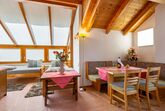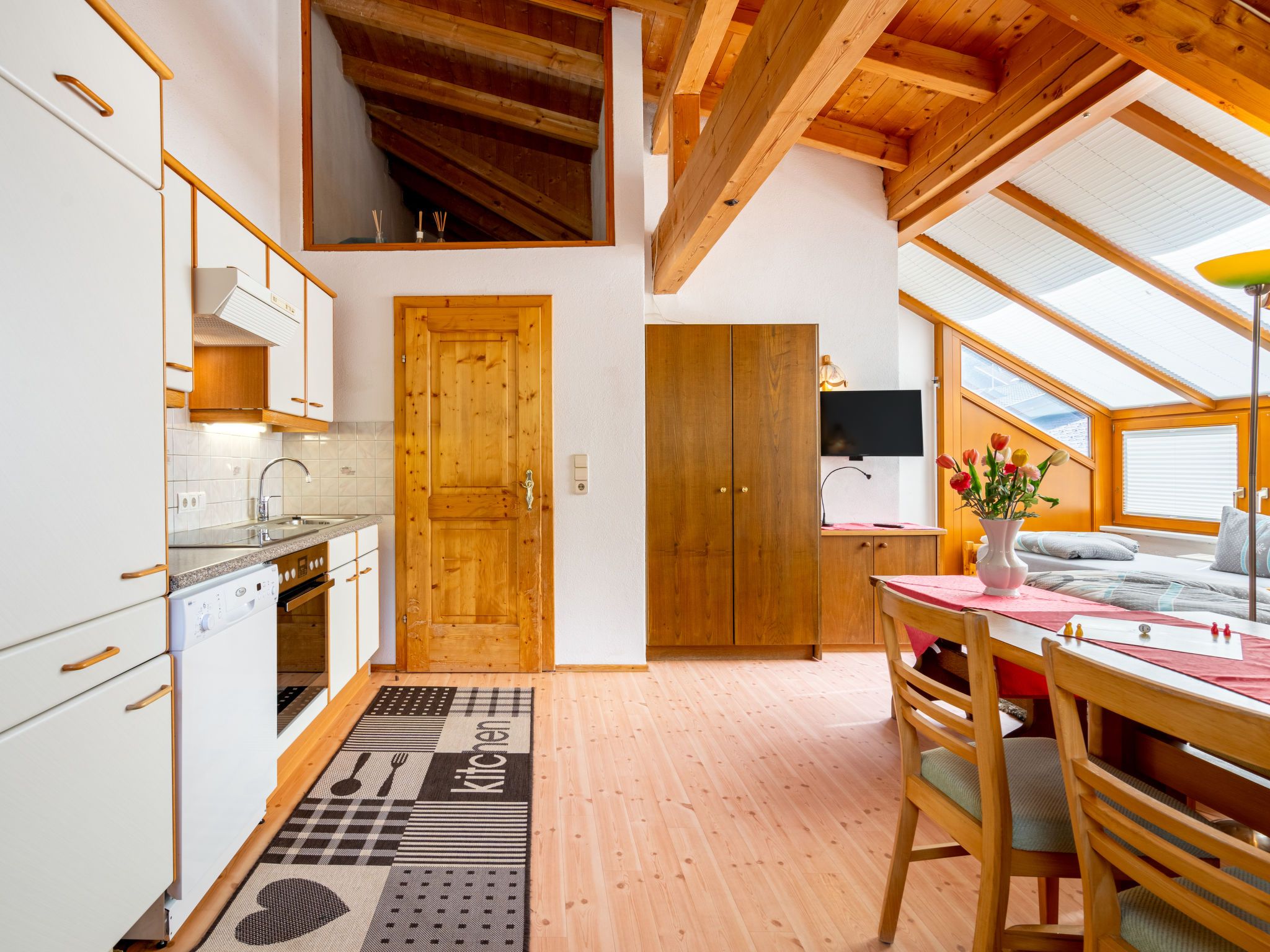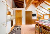 Rosi Studio, 1-Zimmer-Wohnung 35 m2, im Dachgeschoss. Hell: 2. Obergeschoss: Wohn-/Schlafzimmer mit 2 Betten, Essecke und Sat-TV. Ausgang zum Balkon. Kochnische (4 Kochplatten, Mikrowelle, elektrische Kaffeemaschine). Dusche/WC. Ölheizung. Bitte beachten: Nichtraucher-Unterkunft. Maximal 2 Haustiere/Hunde erlaubt.