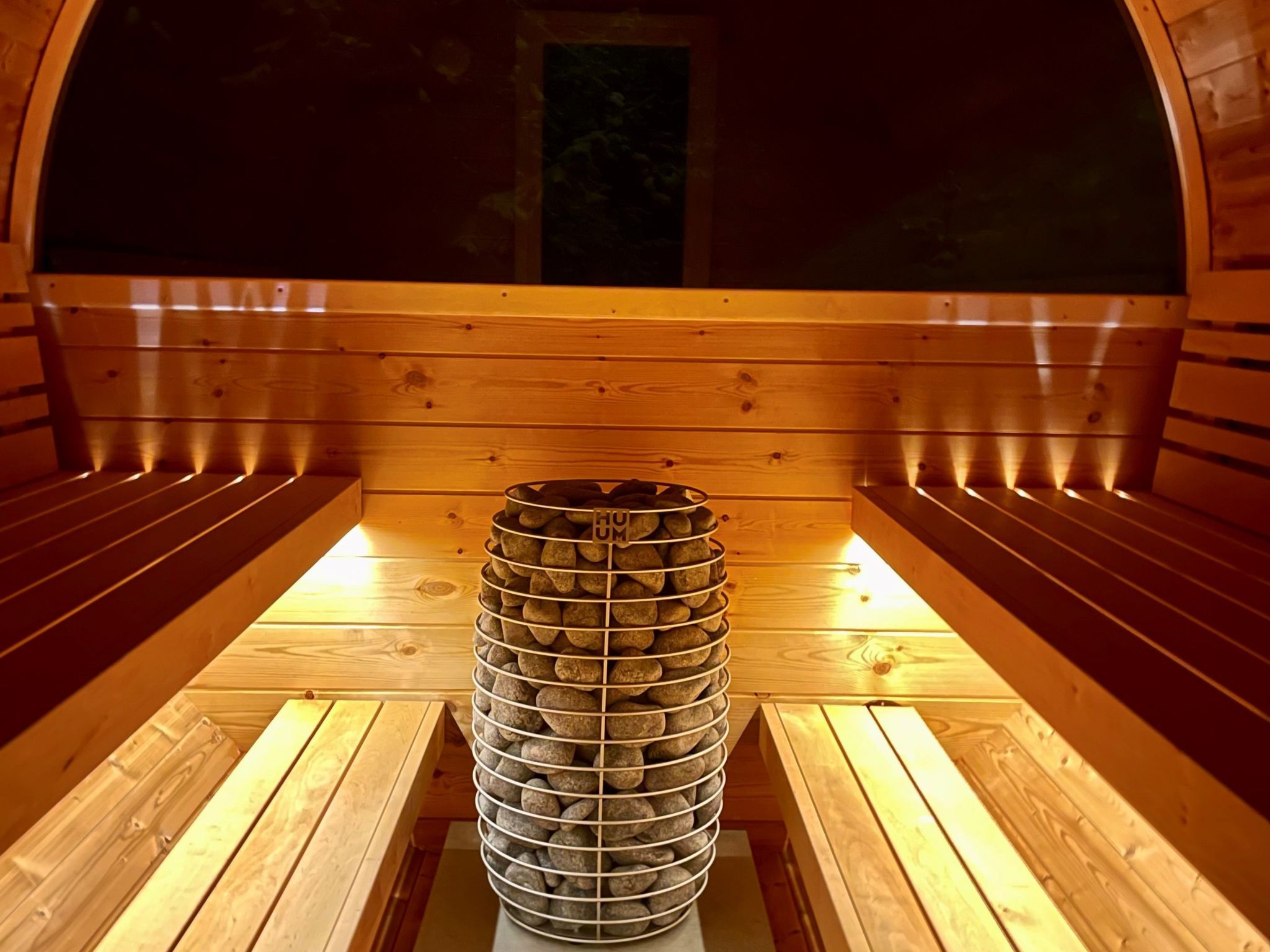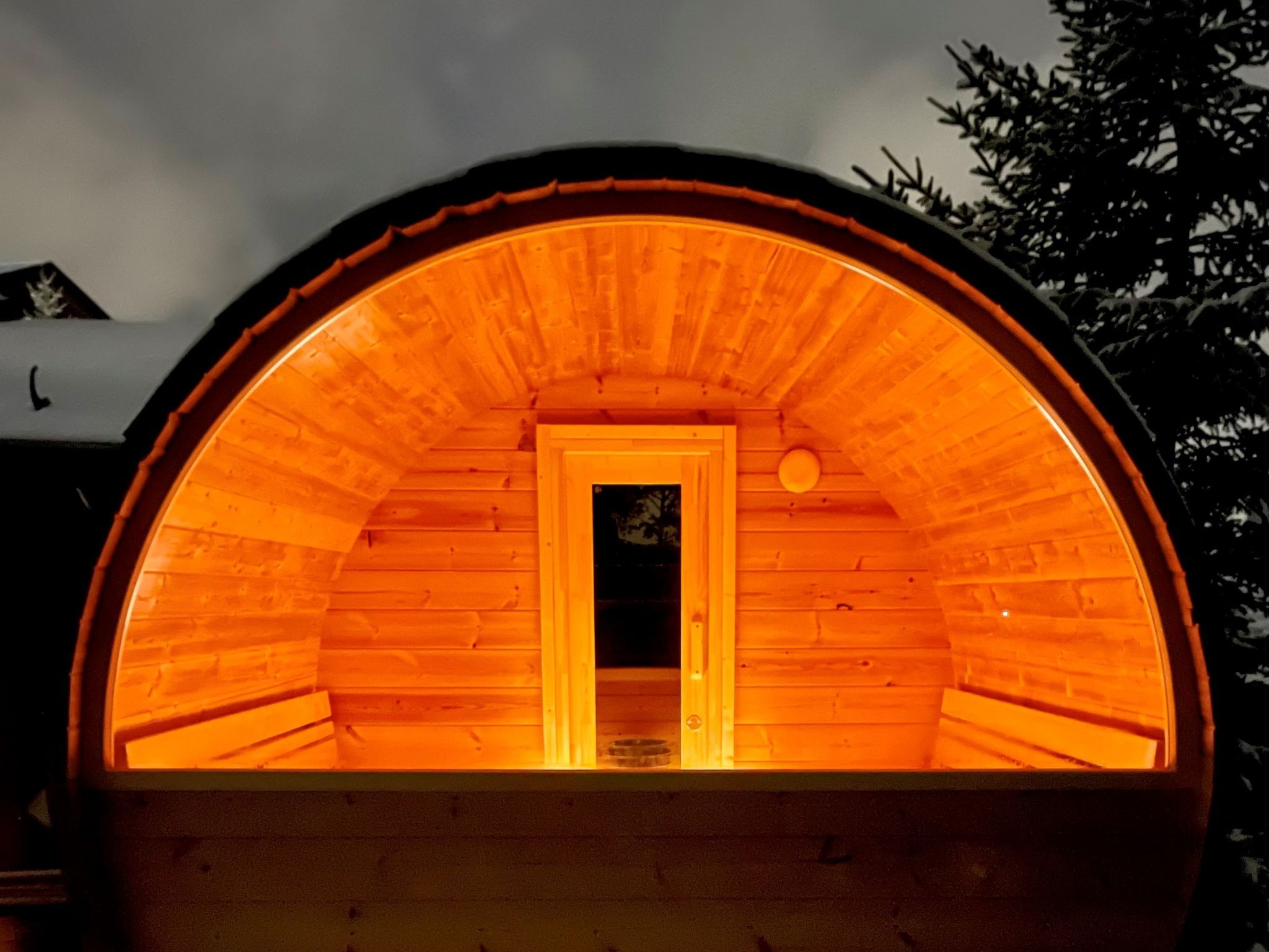 Luna, 3-Zimmer-Haus 45 m2, Südlage. Rustikal und mit viel Holz eingerichtet: Wohn-/Schlafzimmer mit 1 Doppeldiwanbett, Esstisch, Kabel-TV, Radio, CD und DVD. Ausgang zur Terrasse. 1 Zimmer mit 1 Doppelbett. 1 Zimmer mit 2 Betten. Offene Küche (4 Kochplatten, Mini-Backofen, Geschirrspüler, Toaster, Wasserkocher, elektrische Kaffeemaschine). Dusche/WC. E-Heizung. Terrasse, Südwestlage. Terrassenmöbel, Gartengrill (mobil), Liegestühle (4). Zur Verfügung: Sauna (extra), Kinderhochstuhl, Babybett. Internet (WLAN, gratis). Parkplatz. Maximal 2 Haustiere/Hunde erlaubt. Objekt über einen Treppenweg erreichbar! Coole private Fass-Sauna (extra) direkt am Haus!
