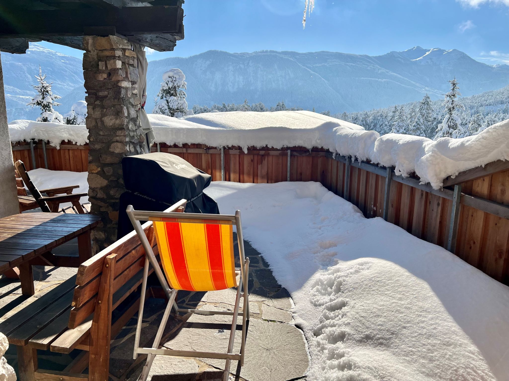 Solea, 4-Zimmer-Haus 100 m2 auf 3 Stockwerken, Südlage. Rustikal und mit viel Holz eingerichtet: grosses Wohn-/Schlafzimmer mit 1 Doppeldiwanbett und offenem Kamin (nur Deko), Esstisch, Essecke, Kabel-TV, Radio, CD und DVD. Ausgang zur Terrasse. Küche (4 Kochplatten, Backofen, Geschirrspüler, Toaster, Wasserkocher, Mikrowelle, elektrische Kaffeemaschine) mit Esstisch. Sep. WC. Unteres Geschoss: mit sep. WC und Dusche. Ausgang zum Garten. Obergeschoss: 3 Zimmer, jedes Zimmer mit 1 Doppelbett. Ausgang zum Balkon. Bad/Dusche, sep. WC, Doppelwaschbecken. E-Heizung. 2 Balkone, Terrasse. Terrassenmöbel, Gartengrill (mobil), Liegestühle (6). Sehr schöne Panoramasicht auf die Berge und die Landschaft. Zur Verfügung: Sauna (extra), Bügeleisen, Kinderhochstuhl, Babybett. Internet (WLAN, gratis). Parkplatz (überdacht). Maximal 2 Haustiere/Hunde erlaubt. Privater Saunaraum vor Ort zubuchbar!
