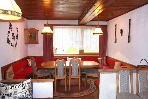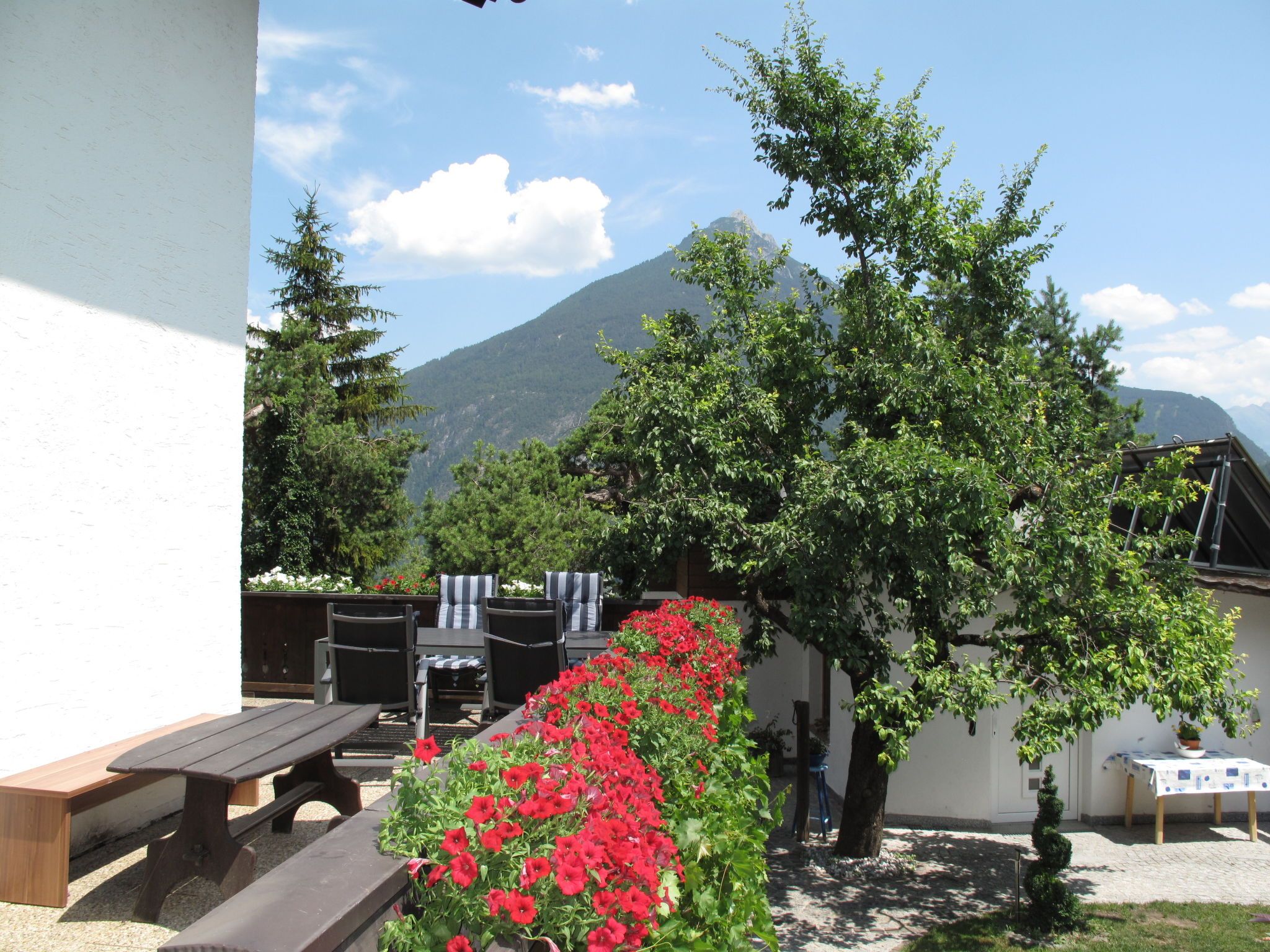 Anich, 5-Zimmer-Wohnung 120 m2 auf 2 Stockwerken, Südwestlage. Zweckmässig und rustikal eingerichtet: Wohn-/Esszimmer mit Essecke und Sat-TV (Flachbildschirm), Kachelofen. 1 Doppelzimmer mit Dusche/WC. Kleine, offene Küche (Backofen, Geschirrspüler, 4 Glaskeramikplatten, Toaster, Wasserkocher, Mikrowelle, Tiefkühler, elektrische Kaffeemaschine). Ausgang zur Terrasse, Richtung Südwesten. Obergeschoss: 2 Doppelzimmer, jedes Zimmer mit Dusche/WC. Ausgang zum Balkon. 1 Doppelzimmer mit Dusche/WC. G-Heizung. Grosse Terrasse 50 m2, Südwestlage, kleine Terrasse 15 m2, Südwestlage. Terrassenmöbel, Gartengrill, Liegestühle (6), Abstellkammer. Sehr schöne Sicht auf die Berge. Zur Verfügung: Kinderhochstuhl, Babybett. Internet (Wireless LAN, gratis). Bitte beachten: Maximal 1 Haustier/Hund erlaubt. Eigener Eingang. Bei Belegung mit weniger Personen als der maximalen Personenzahl stehen nicht alle Wohneinheiten zur Verfügung.