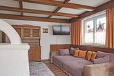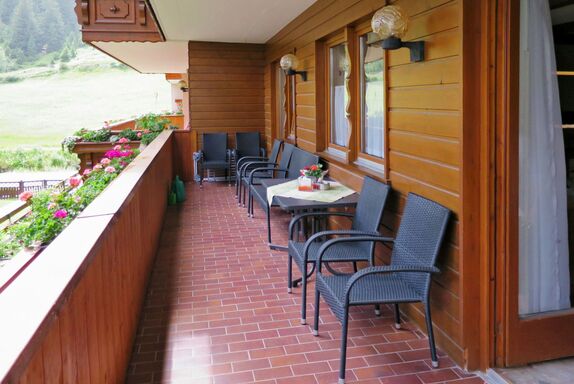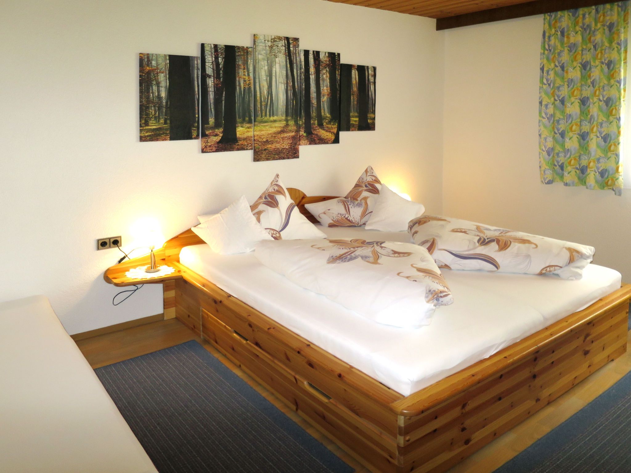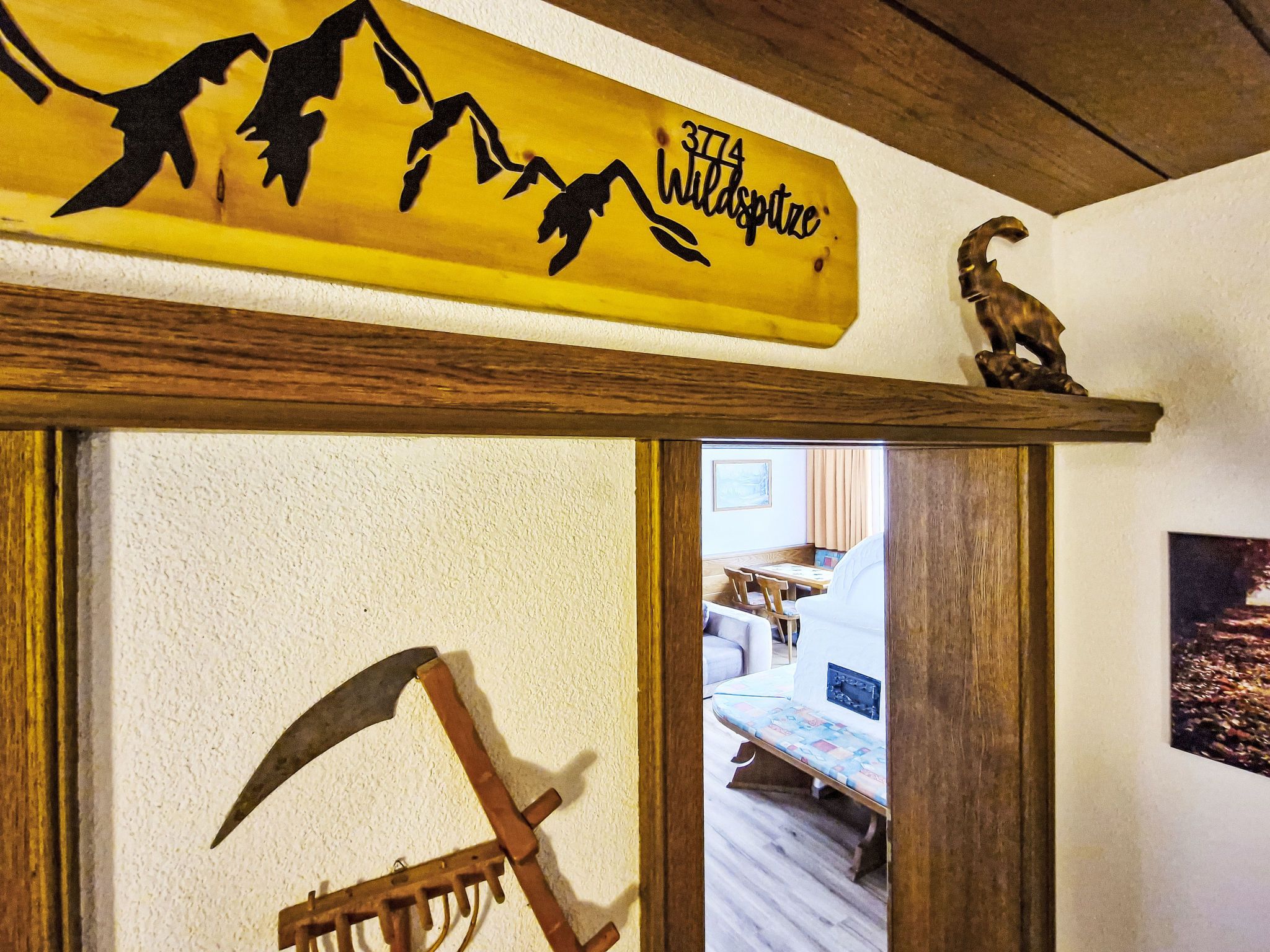 Daheim – Wildspitz, 5-Zimmer-Wohnung 130 m2, im erhöhten Erdgeschoss. Rustikal und gemütlich eingerichtet: Wohn-/Esszimmer mit Sat-TV (Flachbildschirm), Radio. Ausgang zur Terrasse. 1 Doppelzimmer. 2 Zimmer, jedes Zimmer mit 1 Bett und 1 Doppelbett. Küche (Backofen, Geschirrspüler, 4 Glaskeramikplatten, Toaster, Wasserkocher, Mikrowelle, elektrische Kaffeemaschine) mit Essecke. Bad/Dusche, sep. WC. Terrasse. Terrassenmöbel. Zur Verfügung: Kinderhochstuhl, Babybett. Internet (WLAN, gratis). Bitte beachten: Nichtraucher-Unterkunft. Maximal 1 Haustier/Hund erlaubt.