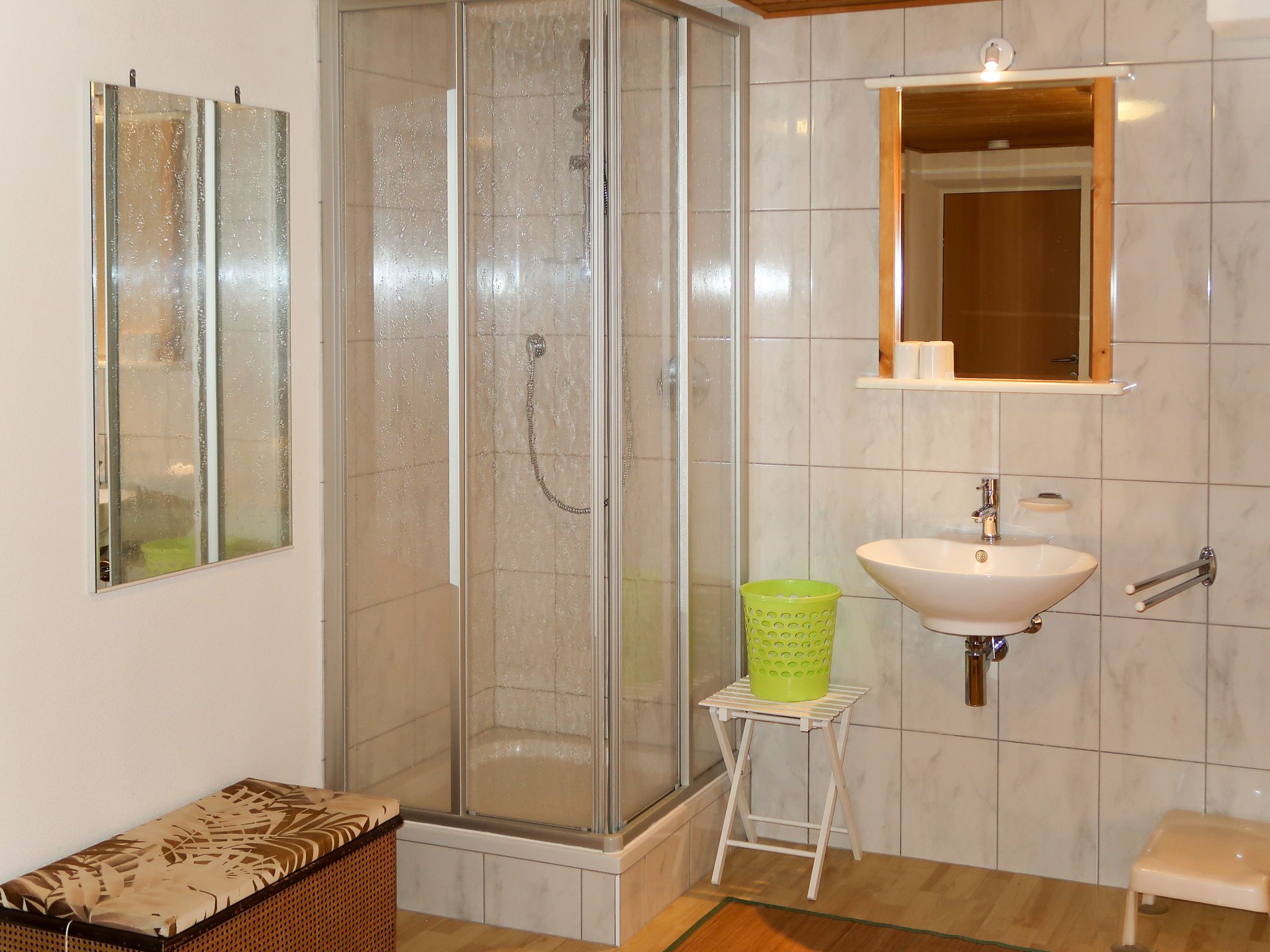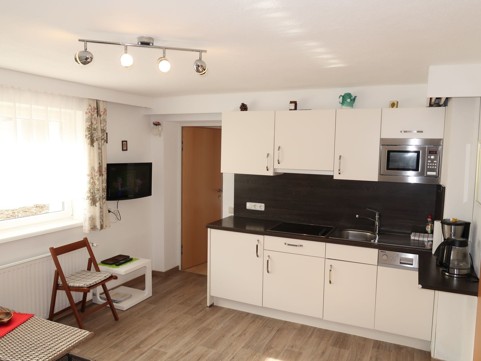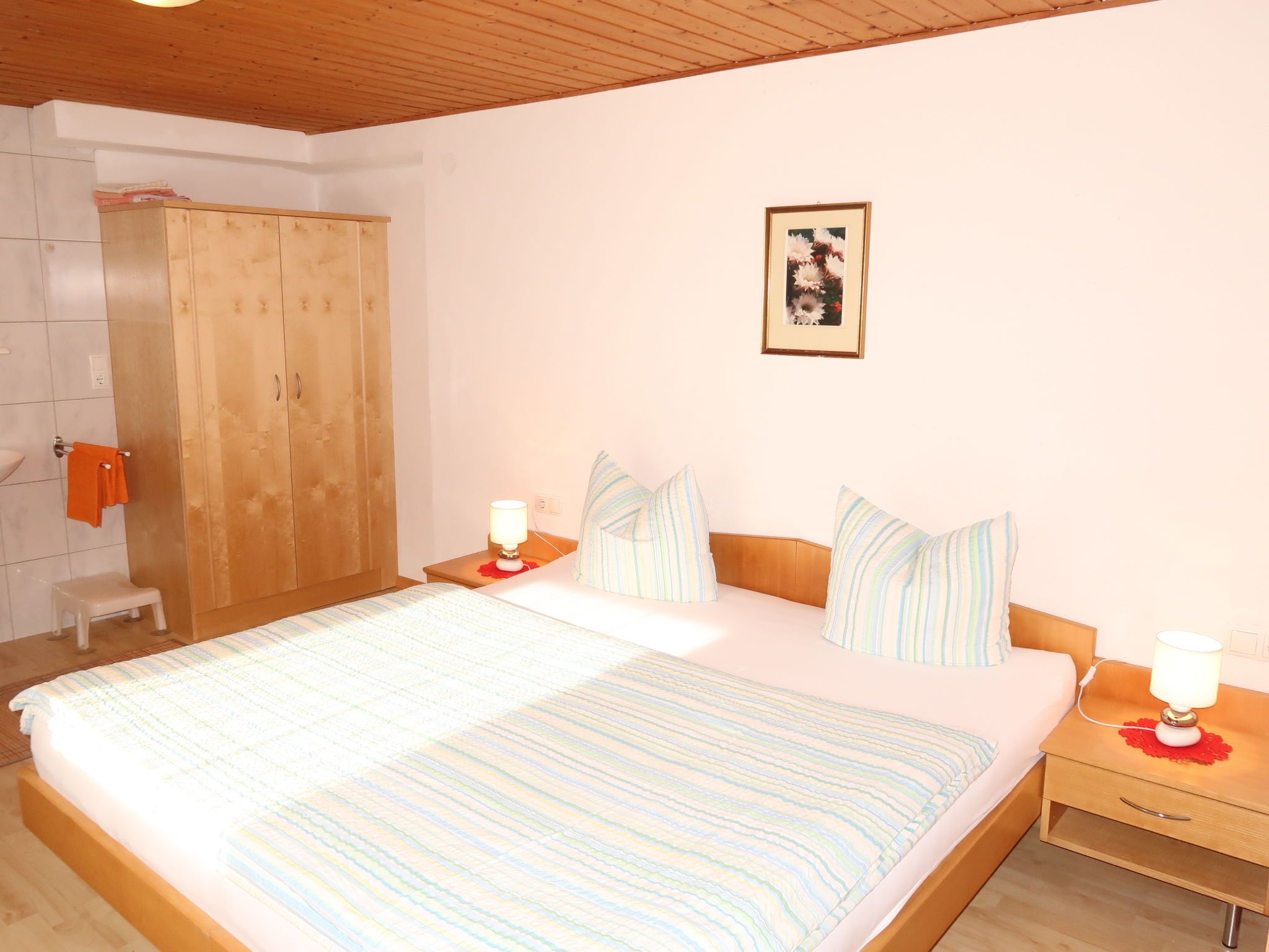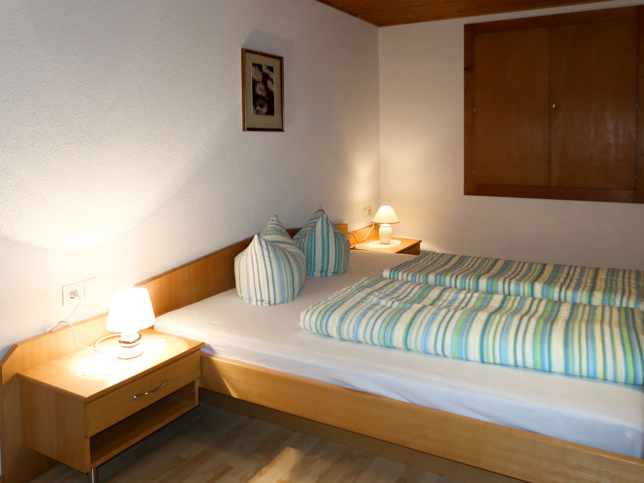 Leni, 2-Zimmer-Wohnung 50 m2, im Erdgeschoss, Südwestlage. Modern eingerichtet: Wohn-/Schlafzimmer mit 1 Doppeldiwanbett, Esstisch, Sat-TV und Radio. Ausgang zur Terrasse. 1 Doppelzimmer mit 1 Doppelbett, Waschbecken und Dusche. Offene Küche (Geschirrspüler, 4 Glaskeramikplatten, Toaster, Mikrowelle, elektrische Kaffeemaschine). Sep. WC. Ölheizung. Terrasse. Terrassenmöbel. Zur Verfügung: Kinderhochstuhl, Babybett, Haartrockner. Internet (WLAN, gratis). Bitte beachten: Maximal 1 Haustier/Hund erlaubt. Eigener Eingang, Rauchmelder.