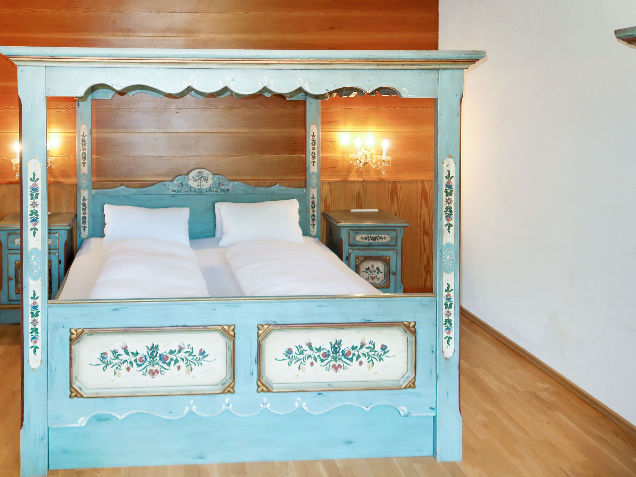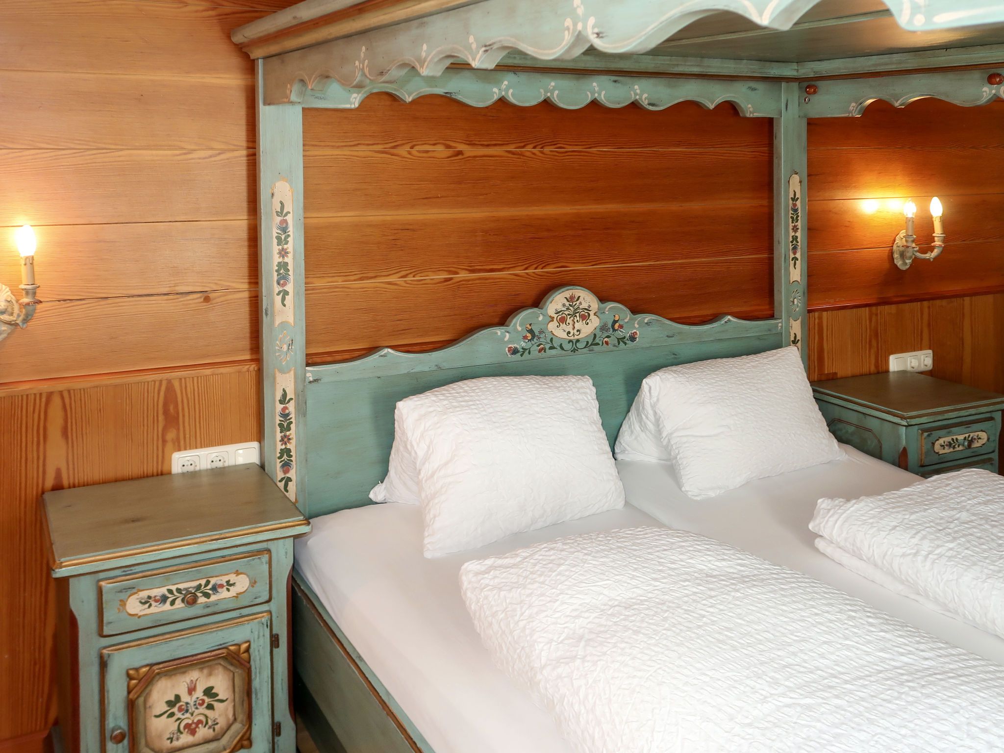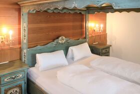 Burg Biedenegg, Schrofenstein, 3-Zimmer-Wohnung 60 m2, im Erdgeschoss. Rustikal und stilvoll eingerichtet: 2 Doppelzimmer. Wohnküche (4 Glaskeramikplatten, Toaster, Wasserkocher, Mikrowelle, elektrische Kaffeemaschine) mit Essecke und Sat-TV. Dusche, sep. WC. Ölheizung. Parkettboden. Schöne Sicht auf die Landschaft und die Ortschaft. Zur Verfügung: Kinderhochstuhl, Babybett. Internet (Wireless LAN, gratis). Bitte beachten: Rauchmelder.