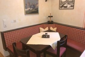 BURG BIEDENEGG, in Fliess liebevoll 'Schloss' genannt, steht in dominierender Lage hoch über Fliess. Herrlicher Rundblick über Ort, Tal und Berge. Ortsmitte mit Lebensmittelgeschäft ca. 850 m. Freibad 2 km (ca. 01.06.20-15.09.20). Supermarkt und Hallenbad (im Hotel Mozart) in Landeck, 8 km. Die aus dem 11. Jhdt. stammende Burg ist vollständig erhalten; Schutzmauern mit Tor, Pforte, Burghalle und Turm lassen das Mittelalter aufleben. Die Burg wurde in 8 großzügige Wohnungen umgewandelt, wovon eine gelegentlich vom Besitzer bewohnt wird. Über einen Vorraum erreicht man die große, hohe Burghalle in Naturstein, von der aus man intern, teils über Treppen, zu den einzelnen Wohnungen gelangt. Jede Wohnung, nach einem der vergangenen Burggeschlechter benannt, wird von dessen Wappen geziert. Burg Biedenegg bietet türkisches Dampfbad oder Sauna (montags 1x pro Woche im Preis inklusive, ansonsten ? 6/Person, beides wird auch von den Gästen des Ferienhauses FIE 215 genutzt), Kinderspielzimmer. Im Burggarten vor den Mauern (innerhalb des umzäunten Privatgrundstücks) einige Kinderspielgeräte und Liegewiese mit einigen Obstbäumen. Vor der Burgpforte Freisitz mit Mobiliar für ca. 30 Personen und Grill zur allgemeinen Nutzung. Großer Privatparkplatz vor den Burgmauern. Den Gästen von FIE 210/?211 steht zusätzlich zu den jeweiligen Wohnungen das 'Schlosscafé' zur Verfügung. Dieses ehemalige Café (ca. 53 m²) bietet Essplätze für 20 Personen, Bartresen und eine schmale Küche (4 Platten, Backofen, Geschirrspüler, 2x Kühlschrank, Wasserkocher, Toaster). Es liegt im Erdgeschoss neben der Burgpforte mit Zugang von der Burghalle und hat einen eigenen Ausgang zum Freisitz. Die Ferienwohnungen sind rustikal mit schönen Holzmöbeln, teils handbemalten Bauernmöbeln eingerichtet, der Burgatmosphäre bestens angepasst. Jeweils Parkettboden. Sat-TV. Internetzugang (WLAN, inklusive). Öl-Zentralheizung. Winter-Infos: Bergbahn/?Skilift/?Skischule: Venet-Süd 5,5 km, Fiss/?Serfaus 21 km, Kaunertaler Gletscher 42 km. Skibushaltestelle ca. 150 m (kostenloser Pendelbus Fliess-Venet Süd). Rodelbahn 5,5 km. Langlaufloipe 2 km. Skiraum mit Skischuhheizung.
