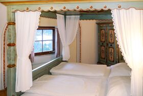 Burg Biedenegg,Trautson, 2-Zimmer-Wohnung 30 m2, im Erdgeschoss. Rustikal und stilvoll eingerichtet: 1 Doppelzimmer. Wohnküche (2 Glaskeramikplatten, Toaster, Wasserkocher, Mikrowelle, elektrische Kaffeemaschine) mit Essecke und Sat-TV. Bad/WC. Ölheizung. Parkettboden. Schöne Sicht auf die Landschaft und die Ortschaft. Zur Verfügung: Kinderhochstuhl, Babybett. Internet (Wireless LAN, gratis). Bitte beachten: Rauchmelder.