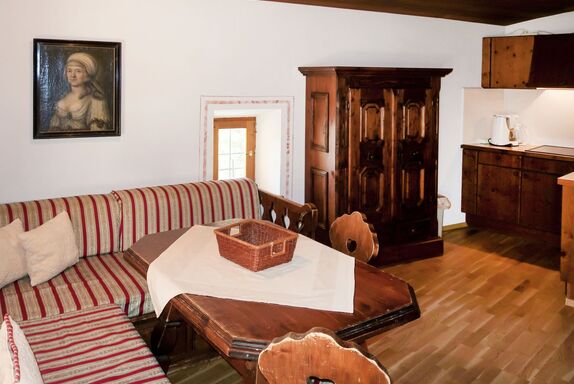 BURG BIEDENEGG, in Fliess liebevoll 'Schloss' genannt, steht in dominierender Lage hoch über Fliess. Herrlicher Rundblick über Ort, Tal und Berge. Ortsmitte mit Lebensmittelgeschäft ca. 850 m. Freibad 2 km (ca. 01.06.20-15.09.20). Supermarkt und Hallenbad (im Hotel Mozart) in Landeck, 8 km. Die aus dem 11. Jhdt. stammende Burg ist vollständig erhalten; Schutzmauern mit Tor, Pforte, Burghalle und Turm lassen das Mittelalter aufleben. Die Burg wurde in 8 großzügige Wohnungen umgewandelt, wovon eine gelegentlich vom Besitzer bewohnt wird. Über einen Vorraum erreicht man die große, hohe Burghalle in Naturstein, von der aus man intern, teils über Treppen, zu den einzelnen Wohnungen gelangt. Jede Wohnung, nach einem der vergangenen Burggeschlechter benannt, wird von dessen Wappen geziert. Burg Biedenegg bietet türkisches Dampfbad oder Sauna (montags 1x pro Woche im Preis inklusive, ansonsten ? 6/Person, beides wird auch von den Gästen des Ferienhauses FIE 215 genutzt), Kinderspielzimmer. Im Burggarten vor den Mauern (innerhalb des umzäunten Privatgrundstücks) einige Kinderspielgeräte und Liegewiese mit einigen Obstbäumen. Vor der Burgpforte Freisitz mit Mobiliar für ca. 30 Personen und Grill zur allgemeinen Nutzung. Großer Privatparkplatz vor den Burgmauern. Den Gästen von FIE 210/?211 steht zusätzlich zu den jeweiligen Wohnungen das 'Schlosscafé' zur Verfügung. Dieses ehemalige Café (ca. 53 m²) bietet Essplätze für 20 Personen, Bartresen und eine schmale Küche (4 Platten, Backofen, Geschirrspüler, 2x Kühlschrank, Wasserkocher, Toaster). Es liegt im Erdgeschoss neben der Burgpforte mit Zugang von der Burghalle und hat einen eigenen Ausgang zum Freisitz. Die Ferienwohnungen sind rustikal mit schönen Holzmöbeln, teils handbemalten Bauernmöbeln eingerichtet, der Burgatmosphäre bestens angepasst. Jeweils Parkettboden. Sat-TV. Internetzugang (WLAN, inklusive). Öl-Zentralheizung. Winter-Infos: Bergbahn/?Skilift/?Skischule: Venet-Süd 5,5 km, Fiss/?Serfaus 21 km, Kaunertaler Gletscher 42 km. Skibushaltestelle ca. 150 m (kostenloser Pendelbus Fliess-Venet Süd). Rodelbahn 5,5 km. Langlaufloipe 2 km. Skiraum mit Skischuhheizung.