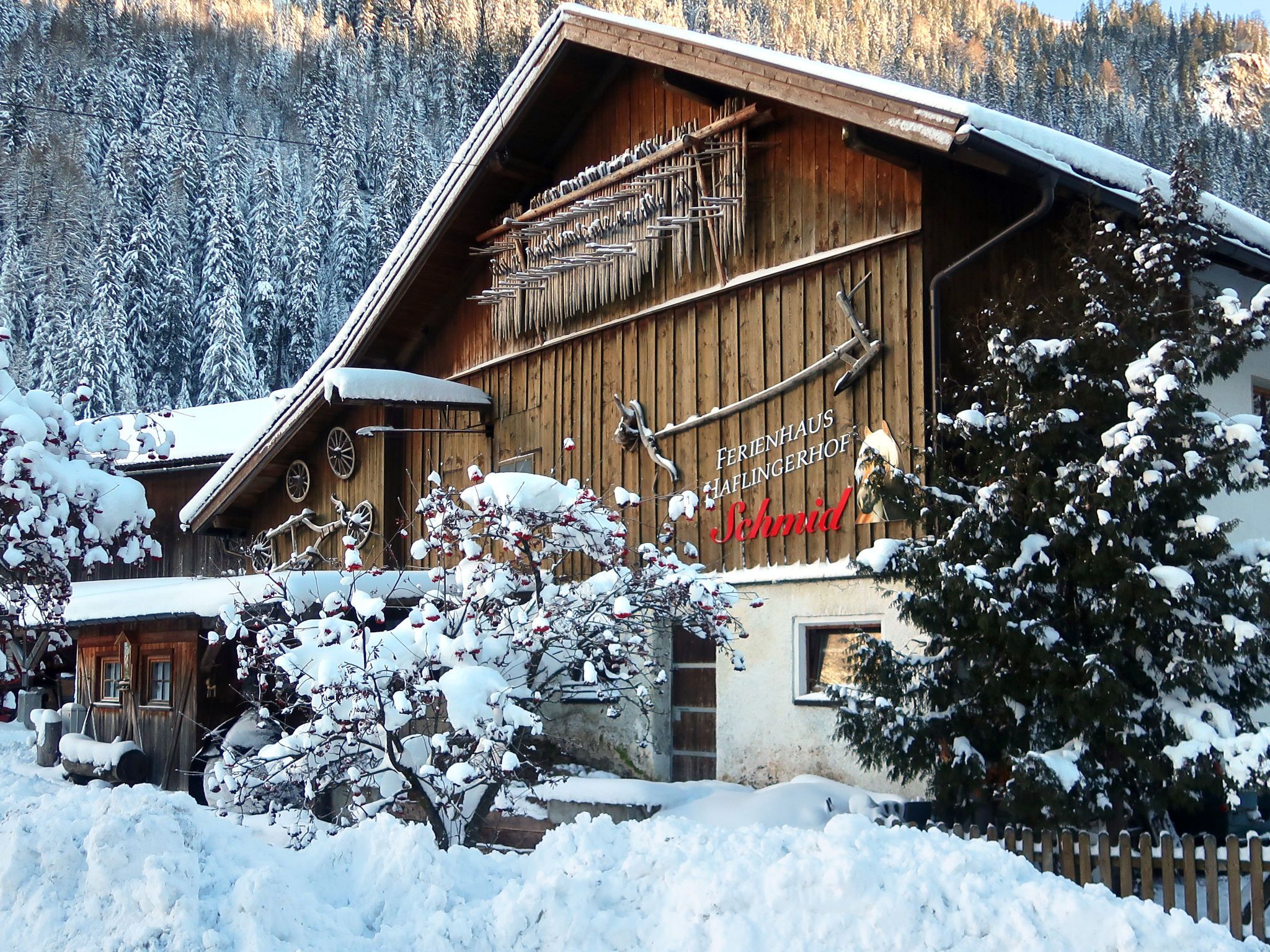 Rustikales Bauernhaus Haflingerhof, 1'290 m.ü.M., umgeben von Bäumen und Wiesen. 3 Wohnungen im Ferienhaus. Im Ortszentrum von Feichten, 25 km vom Zentrum von Landeck, Richtung Süden. Zur Mitbenutzung: gepflegter Garten mit Rasen und Pflanzen. Sitzplatz, Gartenmöbel, Grill. Im Hause: Aufenthaltsraum, Skiraum, Skischuhtrockner. Brötchenservice möglich auf Anfrage (extra). Parkplatz (für 4 Autos) auf dem Grundstück. E-Ladestation. Einkaufsgeschäft 30 m, Supermarkt 50 m, Bushaltestelle Linie Landeck-Prutz-Kaunertal 50 m, Bahnstation Landeck 26 km, Freibad 13 km, Hallenbad. Skilift 22 km, Skibushaltestelle 50 m, Skischule 300 m, Schlittelbahn 700 m, Langlaufloipe 100 m. Bekannte Skigebiete sind gut erreichbar: Kaunertaler Gletscher 22 km, Fiss/Serfaus-Ladis 22 km. Bekannte Seen in der Umgebung sind gut erreichbar: Badesee Ried im Oberinntal 14 km. Bitte beachten: Gratis Skibus. Der gratis Skibus fährt zum Skigebiet Feichten-Kaunertaler Gletscher & Fendels. Bitte beachten: Tiere in der Umgebung. Kaunertal-Summercard inkludiert - zahlreiche Vergünstigungen wie z.Bsp. ermäßigter Eintritt ins Hallenbad Quellalpin (50m).