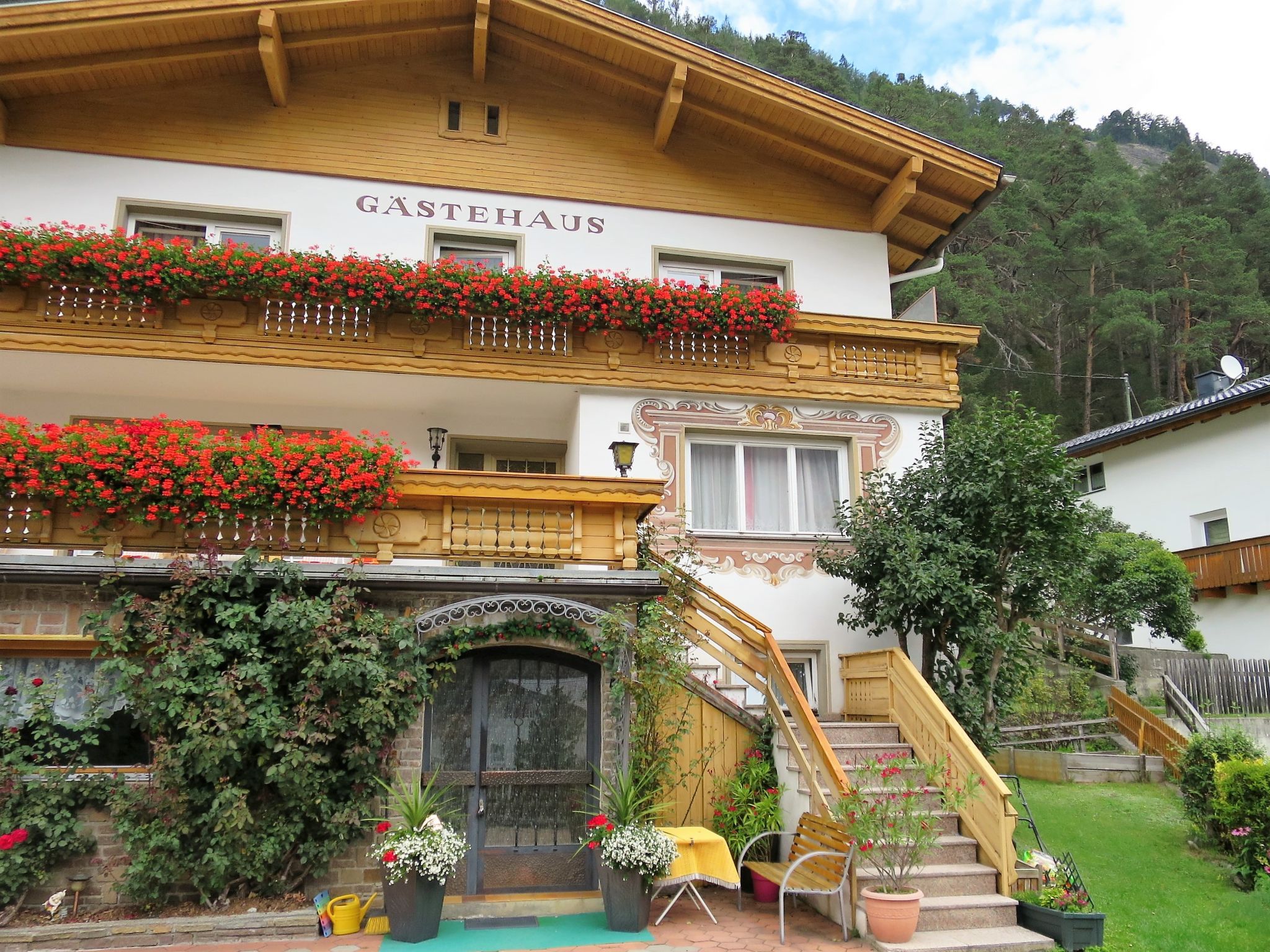 Mehrfamilienhaus Palman, 980 m.ü.M., auf 3 Stockwerken. Im Ortsteil Stuben, 300 m vom Zentrum von Pfunds, 12.5 km vom Zentrum von Nauders, am Hang, in einem Wohnquartier, direkt am Waldrand. Zur Alleinbenutzung: Grundstück 300 m2 (eingezäunt), gepflegter Garten mit Wiese. Zufahrt bis 200 m zum Haus. Parkplatz (für 4 Autos) auf dem Grundstück. Supermarkt 550 m, Bushaltestelle 300 m, Bahnstation Landeck 30 km, Freibad 1 km, Hallenbad 28 km. Golfplatz (9 Loch) 32 km, Bergeisenbahn 14.5 km. Bekannte Seen in der Umgebung sind gut erreichbar: Reschensee 20 km.
