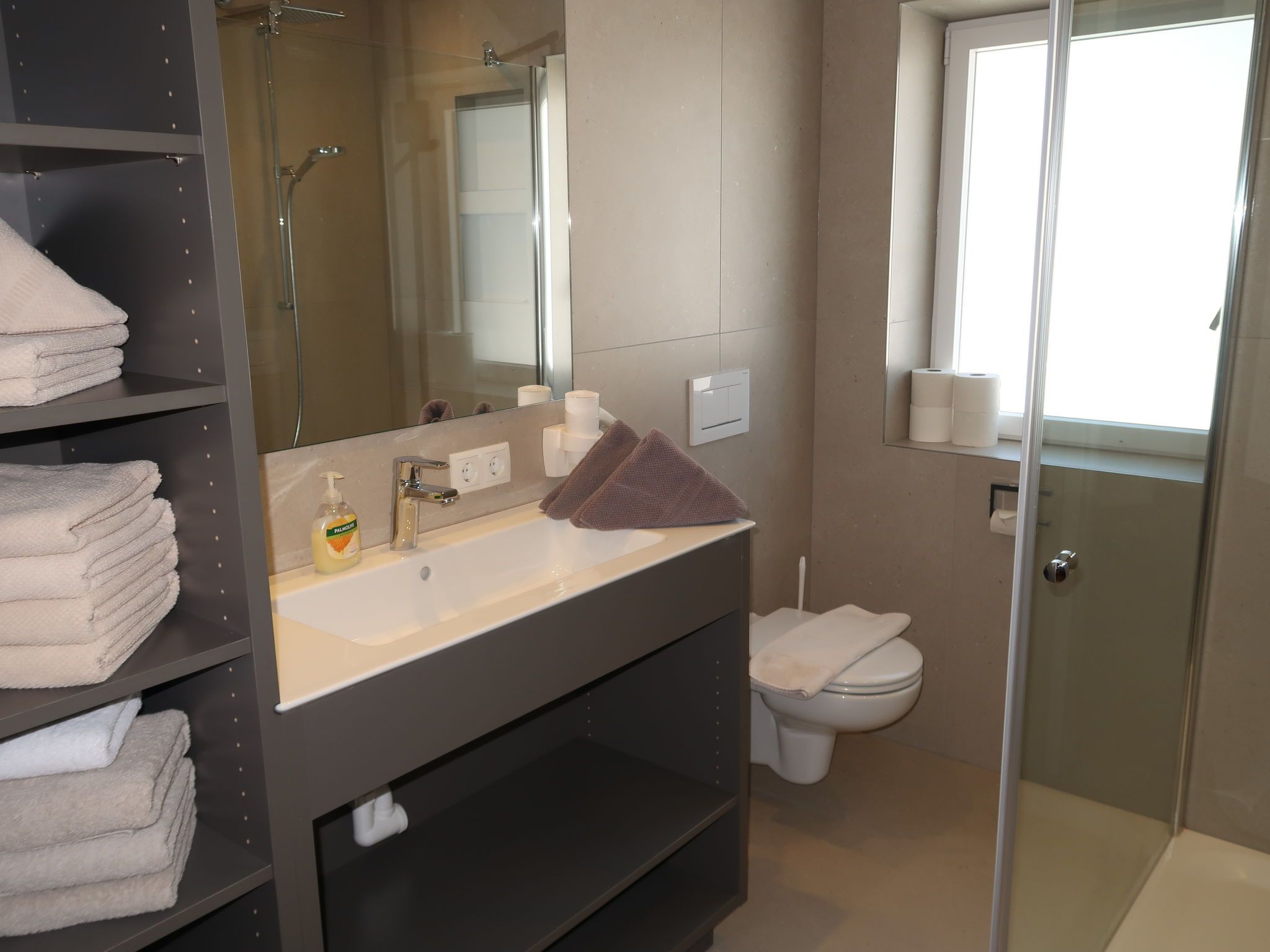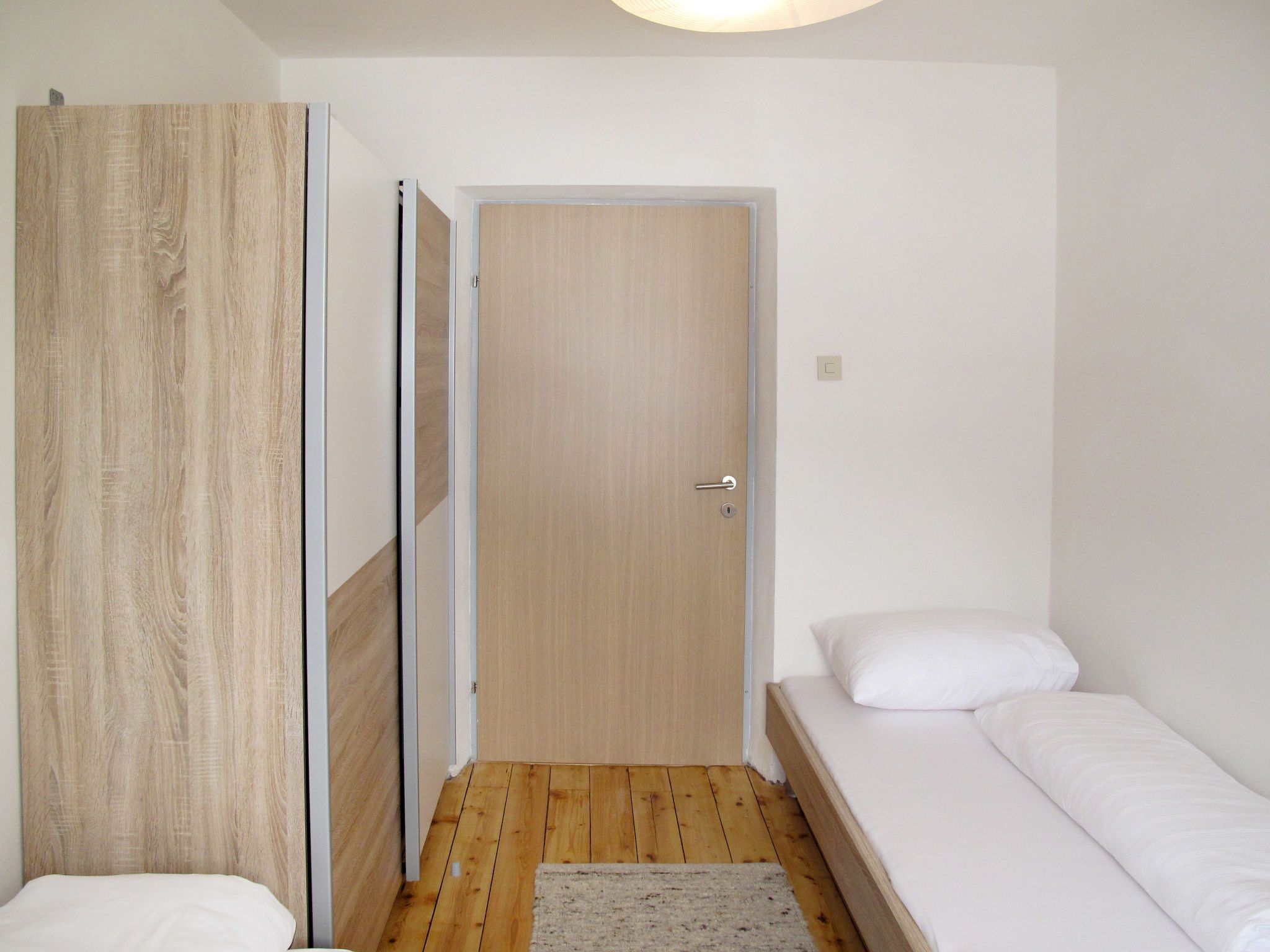 Altes Zollhaus, 5-Zimmer-Wohnung 127 m2 im 1. Stock, Südwestlage. Hell, renoviert, schön und gemütlich eingerichtet: Wohnzimmer mit Sat-TV. 2 Doppelzimmer, jedes Zimmer mit 1 Doppelbett. 1 Zimmer mit 2 Betten, Küchenblock und Dusche/WC. 1 Zimmer mit 3 Betten. Küche (Backofen, Geschirrspüler, 4 Glaskeramikplatten, Toaster, Wasserkocher, Mikrowelle, elektrische Kaffeemaschine) mit Esstisch. Dusche/WC, sep. WC. Ölheizung. Holzdielenboden. Zur Verfügung: Kinderhochstuhl, Babybett, Haartrockner. Internet (Wireless LAN, gratis).