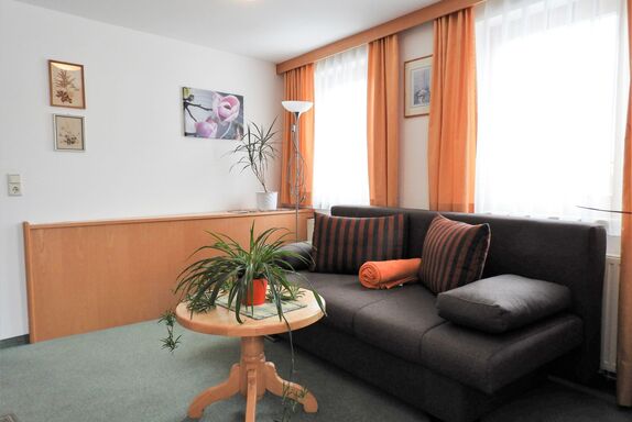 Bergfeld, 2-Zimmer-Wohnung 52 m2 im 2. Stock, Südwestlage. Hell, schön eingerichtet: Wohn-/Schlafzimmer mit 1 Doppeldiwanbett und Sat-TV. Ausgang zum Balkon. 1 Doppelzimmer. Offene Küche (Geschirrspüler, 4 Glaskeramikplatten, Toaster, Wasserkocher, Mikrowelle, elektrische Kaffeemaschine) mit Essecke. Ausgang zum Balkon. Dusche/WC. Ölheizung. Teppichboden. 2 Balkone. Balkonmöbel. Zur Verfügung: Internet (Wireless LAN, gratis). Parkplatz (überdacht, 1 Auto). E-Ladestation. Bitte beachten: Rauchmelder.