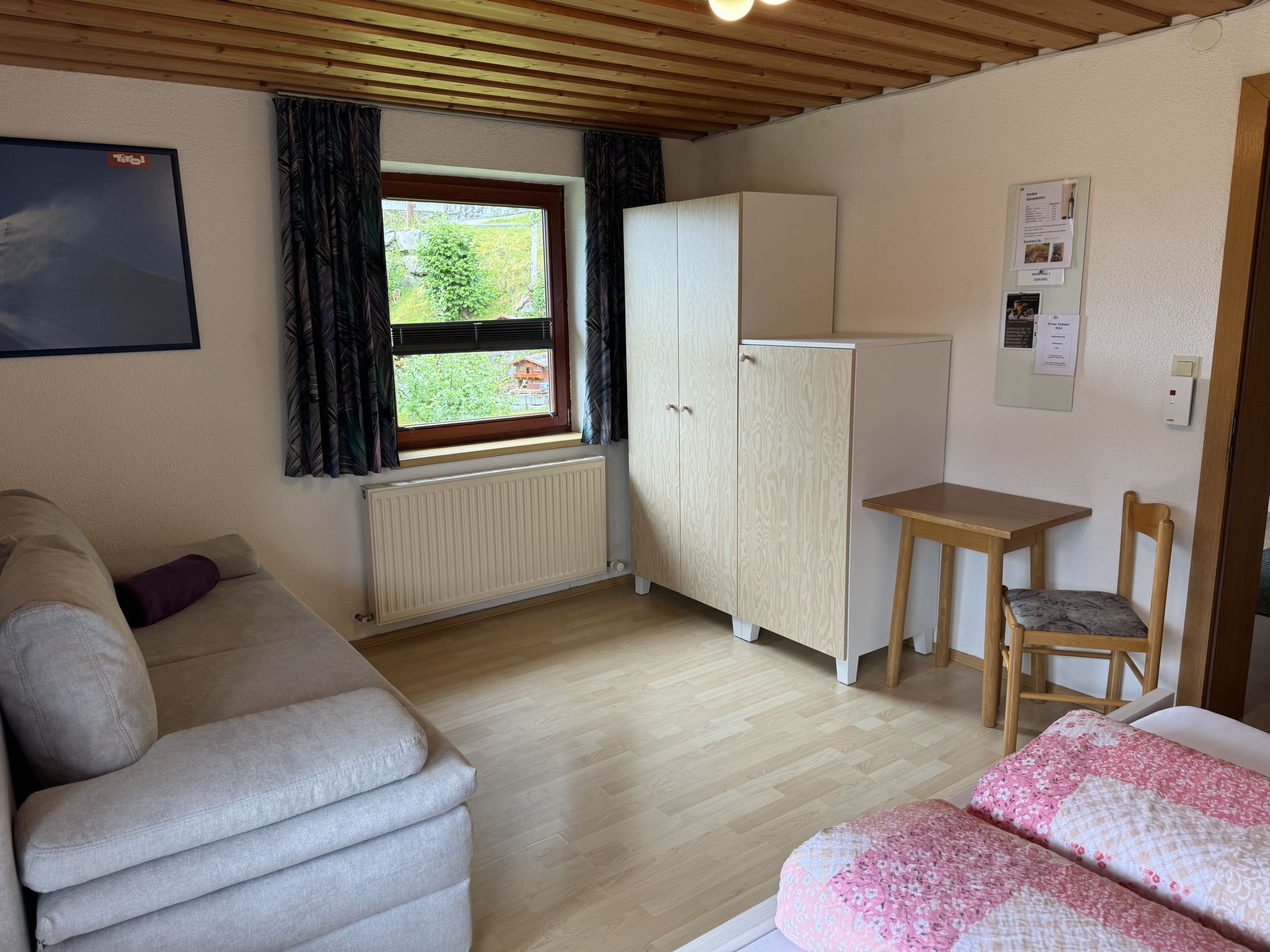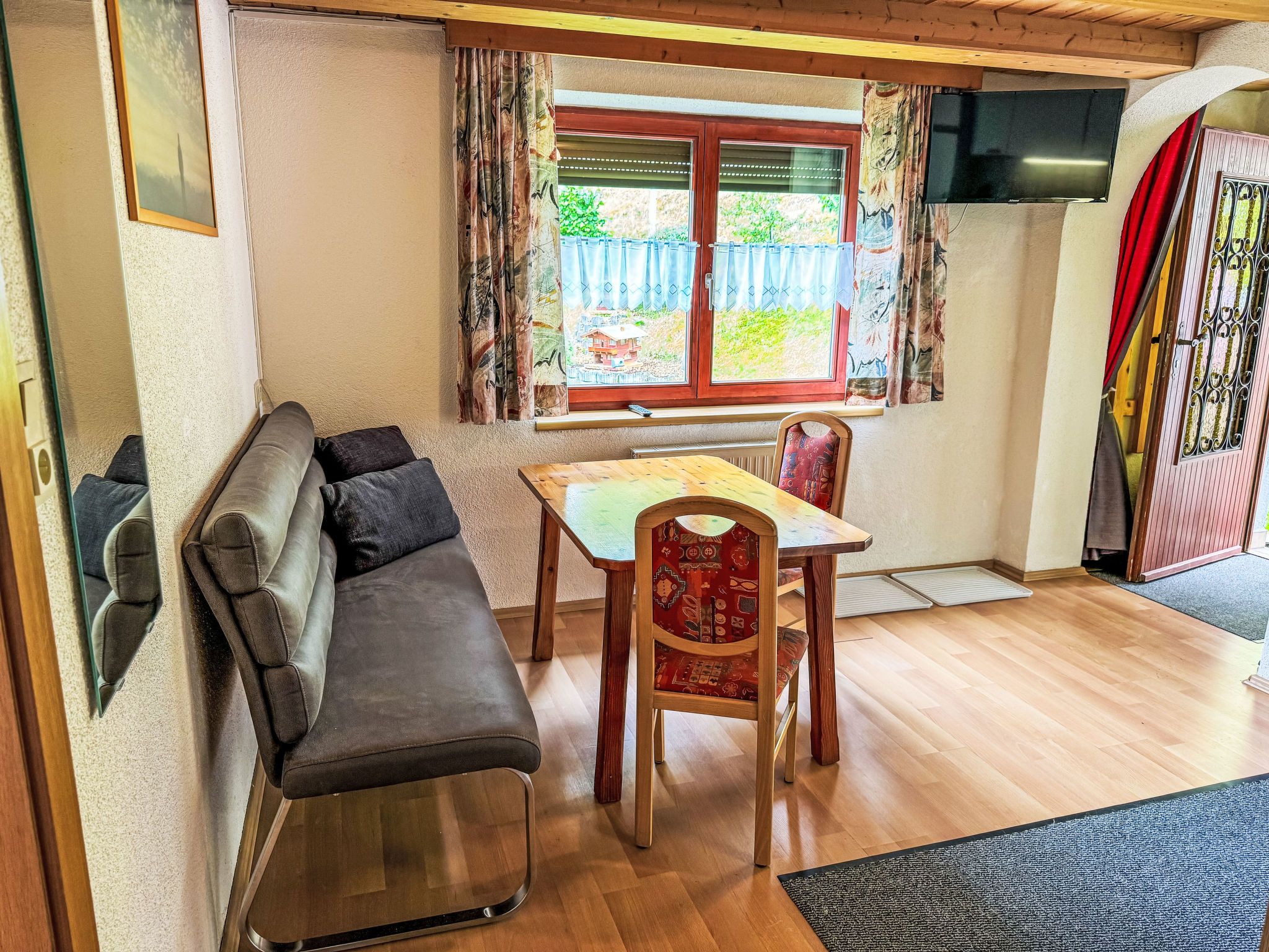 Zechner, 2-Zimmer-Wohnung 40 m2, im Erdgeschoss. Objekt geeignet für 2 Erwachsene + 2 Kinder. Gemütlich eingerichtet: Wohn-/Schlafzimmer mit 1 Doppeldiwanbett, Esstisch und Sat-TV. 1 Zimmer mit 1 Doppeldiwanbett und 1 Doppelbett. Ausgang zum Balkon. Offene Küche (4 Kochplatten, Backofen, Geschirrspüler, elektrische Kaffeemaschine). Dusche/WC. Ölheizung. Balkon. Balkonmöbel. Zur Verfügung: Kinderhochstuhl, Babybett. Internet (Wireless LAN, gratis). Bitte beachten: eigener Eingang.