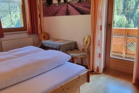 Apart Ladner, 4-Zimmer-Wohnung 80 m2 im 2. Stock. Hell, gemütlich eingerichtet: 1 Doppelzimmer mit Waschbecken. Ausgang zum Balkon. 1 Zimmer mit 1 Bett und 1 Doppelbett. Ausgang zum Balkon. 1 Zimmer mit 1 franz. Bett. Wohnküche (Backofen, Geschirrspüler, 4 Glaskeramikplatten, Toaster, Wasserkocher, Mikrowelle, Tiefkühler, elektrische Kaffeemaschine) mit Essecke und Sat-TV. Dusche, sep. WC. Holzdielenboden, Teppichboden. Balkon. Balkonmöbel. Zur Verfügung: Babybett. Internet (WLAN, gratis). Bitte beachten: Maximal 2 Haustiere/Hunde erlaubt. Eigener Eingang, Rauchmelder, Feuerlöscher. Geeignet für Familien.