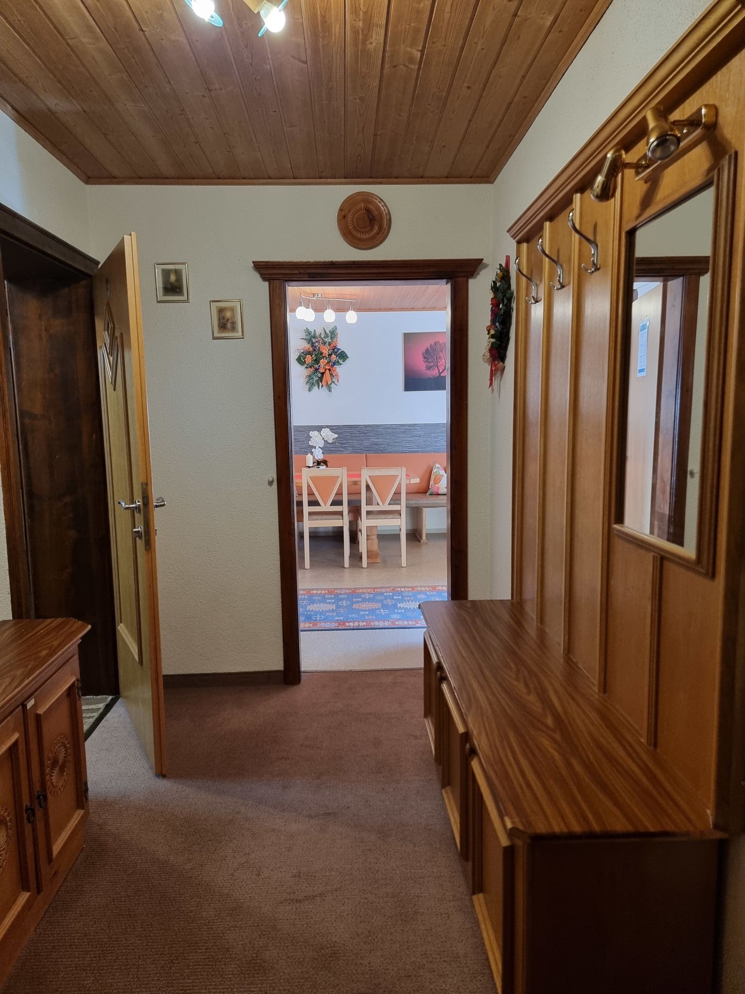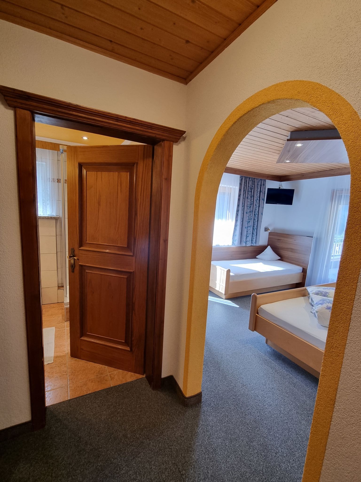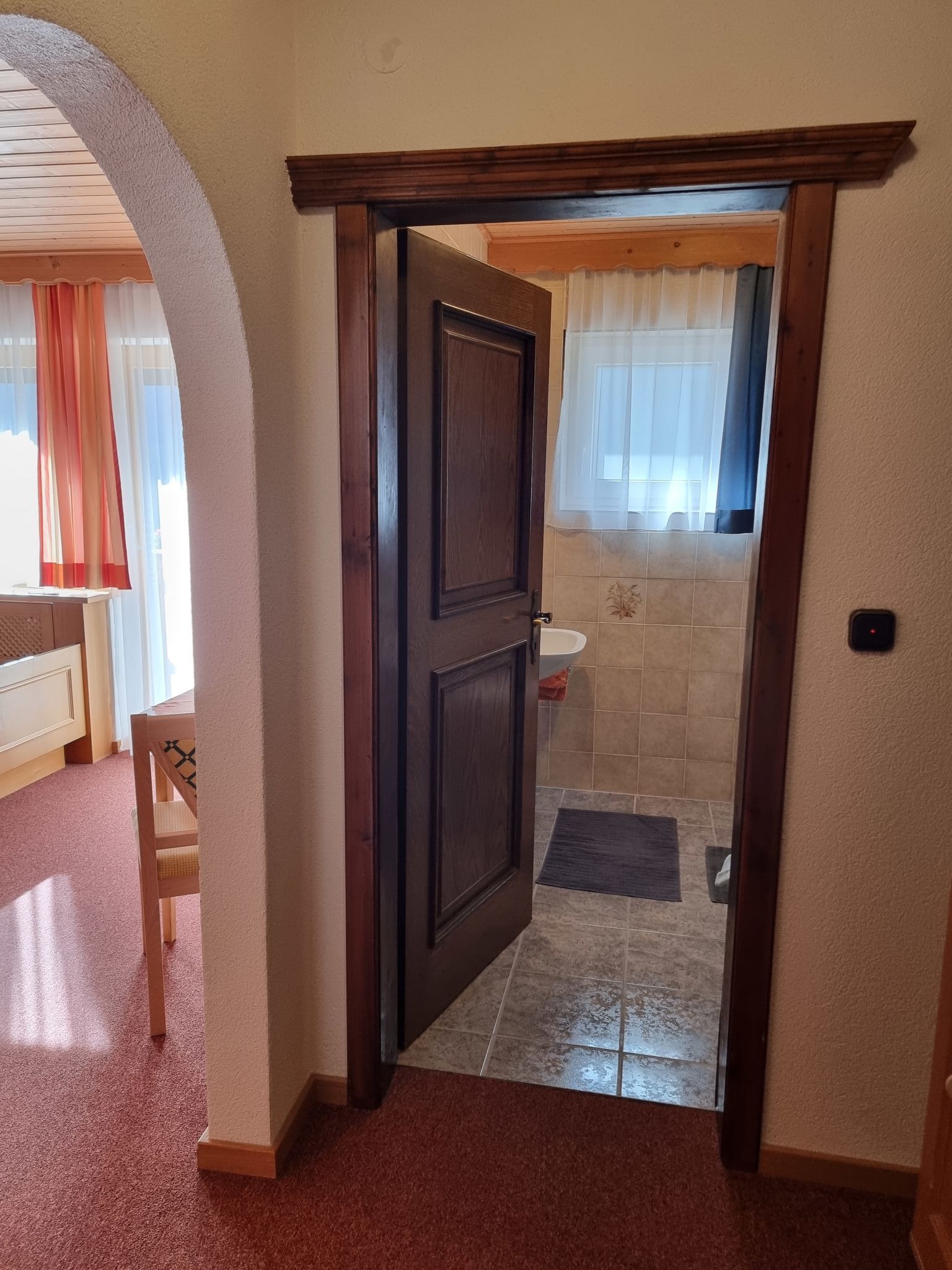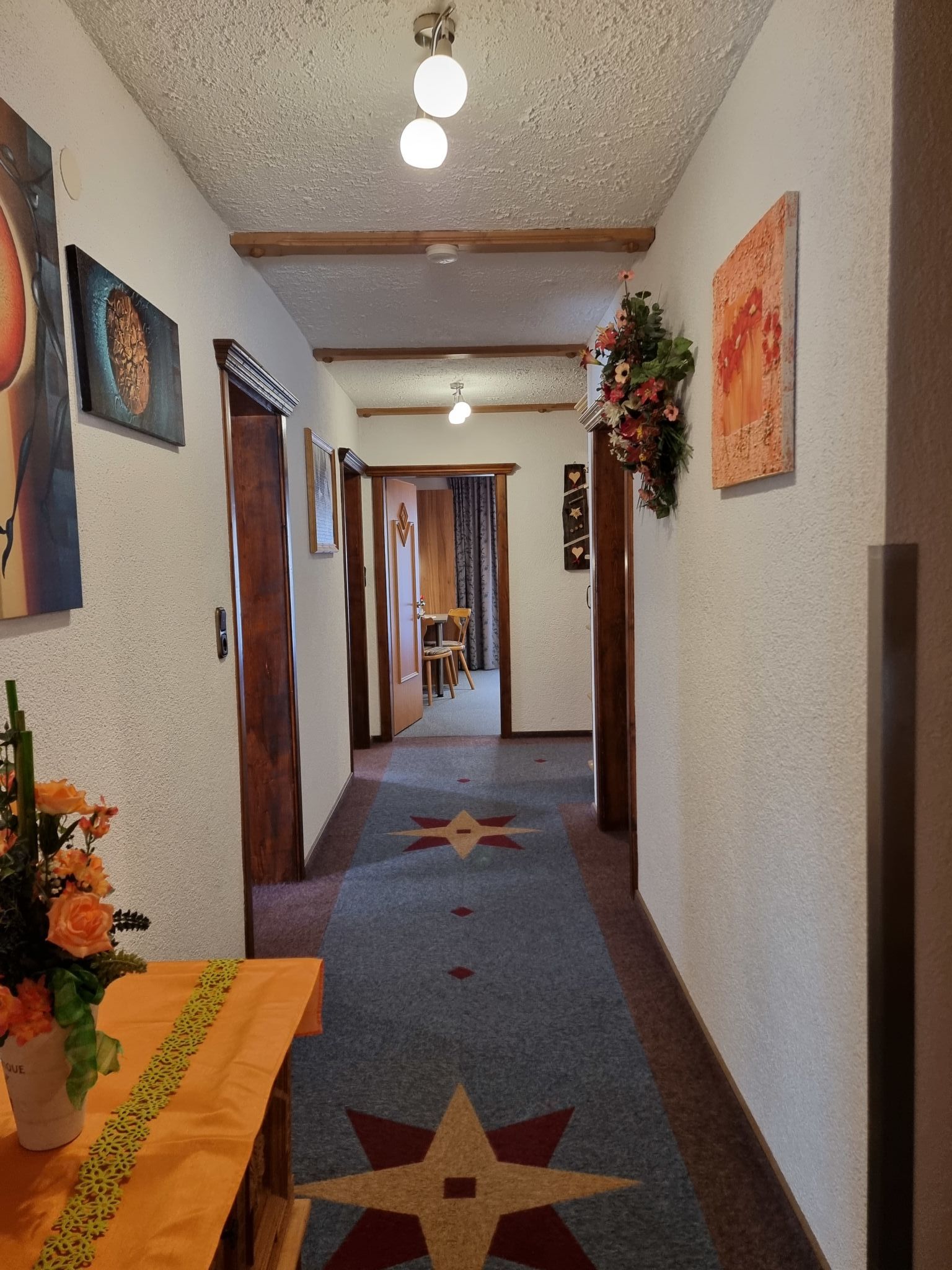 Garni Vesul, 6-Zimmer-Haus 185 m2 auf 2 Stockwerken. Gemütlich und mit viel Holz eingerichtet: Wohn-/Esszimmer mit Essecke, Sat-TV und Radio. 1 Doppelzimmer mit Sat-TV. Kochnische (4 Kochplatten, Backofen, Geschirrspüler, Toaster, Wasserkocher, Mikrowelle, Tiefkühler, elektrische Kaffeemaschine). Dusche/WC. Obergeschoss: 1 Doppelzimmer mit Dusche/WC und Sat-TV. 1 Doppelzimmer mit Waschbecken und Sat-TV. 1 Doppelzimmer mit Dusche/WC und Sat-TV. 1 Doppelzimmer mit Dusche/WC. Dusche/WC. Teppichboden. Balkon, grosse Terrasse. Terrassenmöbel, Balkonmöbel, Gartengrill, Sitzplatz. Herrliche Panoramasicht auf die Berge und das Tal. Zur Verfügung: Safe, Kinderhochstuhl, Babybett. Internet (Wireless LAN, gratis). Bitte beachten: Nichtraucher-Unterkunft. Rauchmelder, Feuerlöscher.