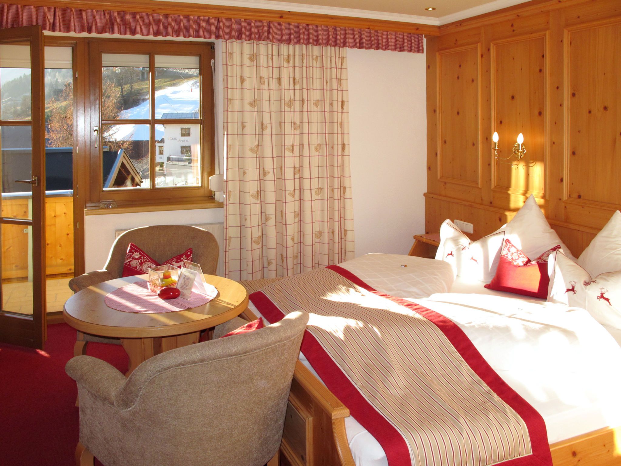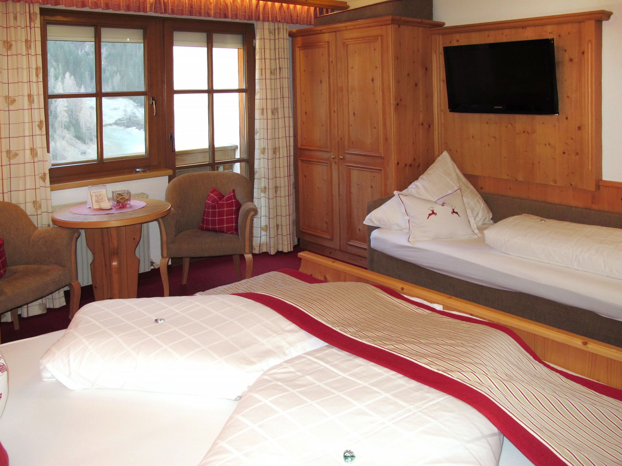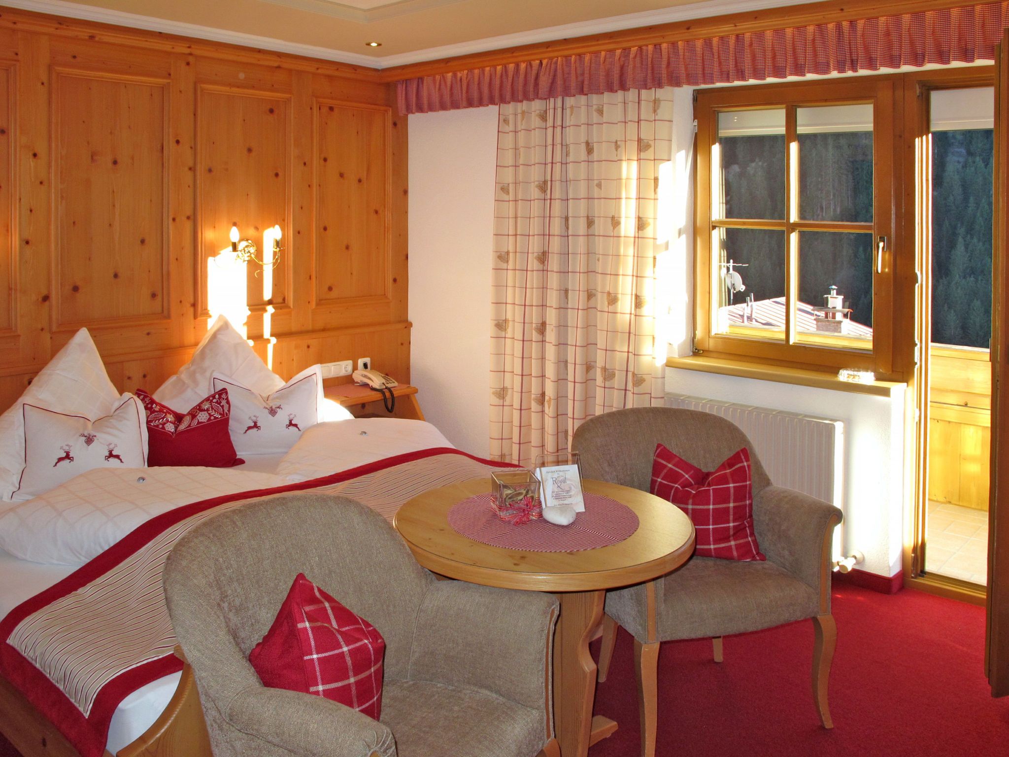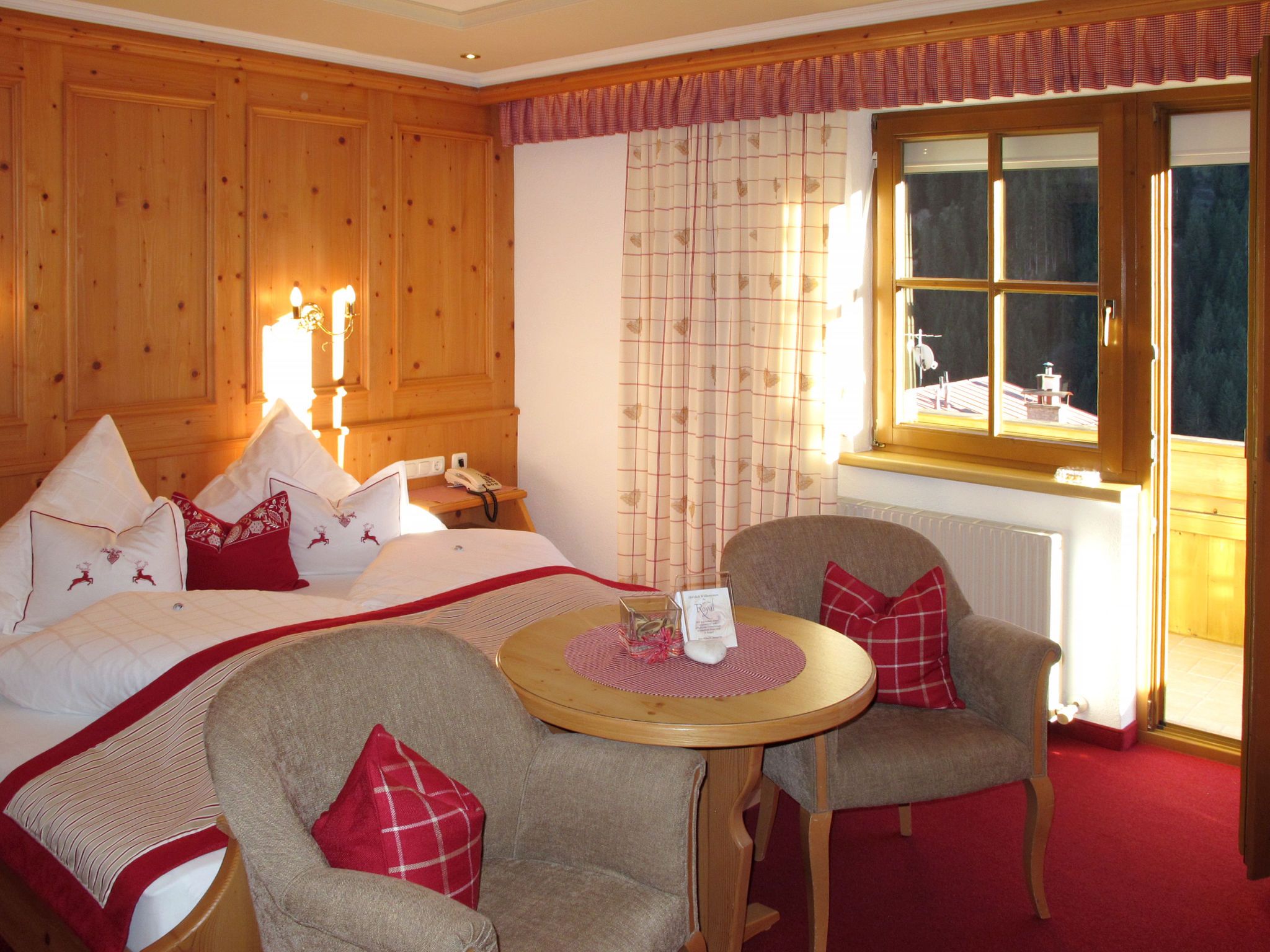 Apart Garni Royal, 7-Zimmer-Wohnung 150 m2 auf 3 Stockwerken. Gemütlich und mit viel Holz eingerichtet: unteres Geschoss: Esszimmer mit Esstisch und Sat-TV. Offene Küche (4 Kochplatten, Backofen, Geschirrspüler, Toaster, Wasserkocher, elektrische Kaffeemaschine). Sep. WC. Obergeschoss: 2 Doppelzimmer, jedes Zimmer mit Dusche/WC und Sat-TV. Ausgang zum Balkon. 1 Zimmer mit 1 Bett, 1 Doppelbett, Dusche/WC und Sat-TV. Ausgang zum Balkon. 2. Obergeschoss: 2 Doppelzimmer, jedes Zimmer mit Dusche/WC und Sat-TV. Ausgang zum Balkon. 1 Zimmer mit 1 Bett, 1 Doppelbett, Dusche/WC und Sat-TV. Ausgang zum Balkon. Heizung. 2 Balkone. Balkonmöbel. Panoramasicht auf die Berge und das Tal. Zur Verfügung: Safe, Babybett, Haartrockner. Internet (Wireless LAN, gratis). Bitte beachten: Nichtraucher-Unterkunft. Rauchmelder, Feuerlöscher. Hinweis: Alle Zimmer sind vom gemeinsamen Hausflur und dem gemeinsamen Treppenhaus aus separat zugänglich.