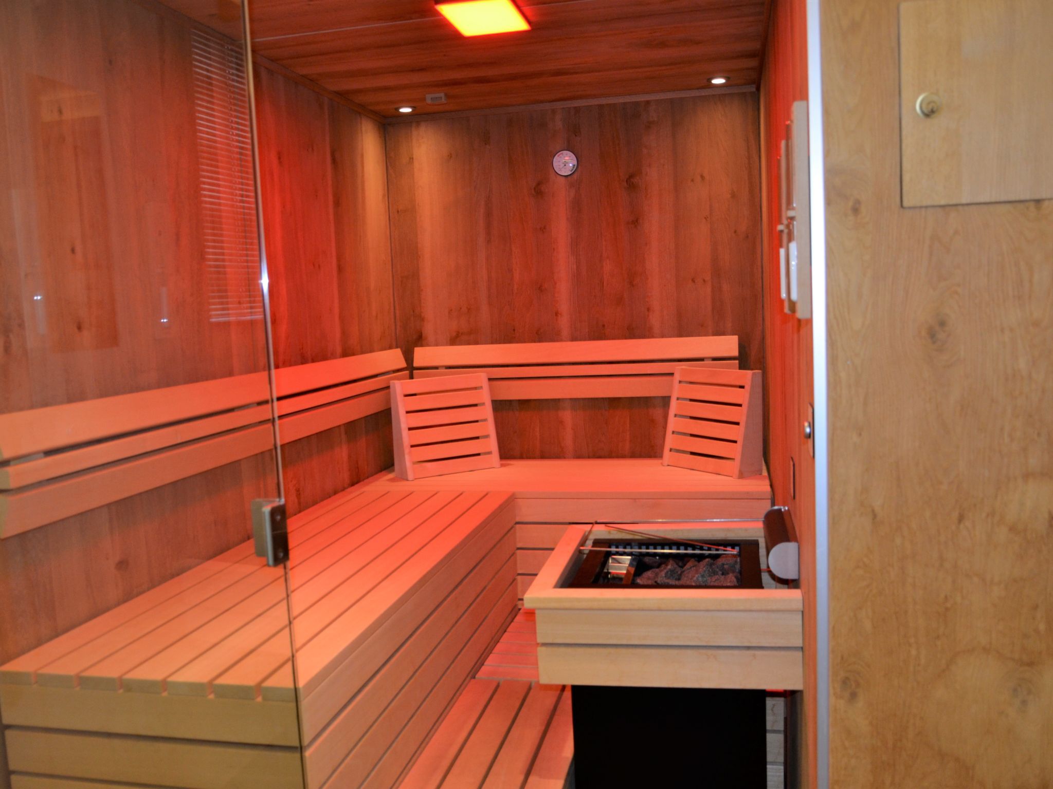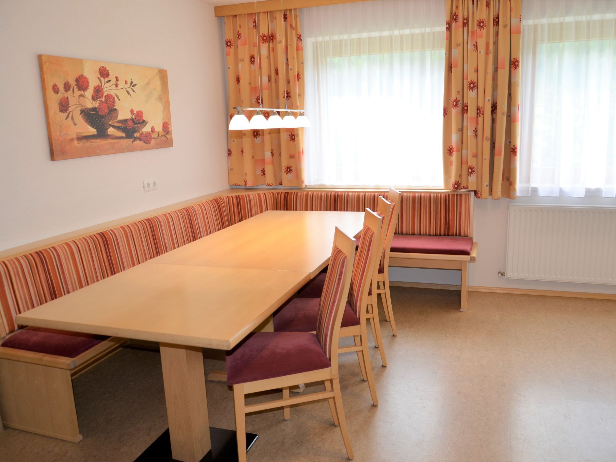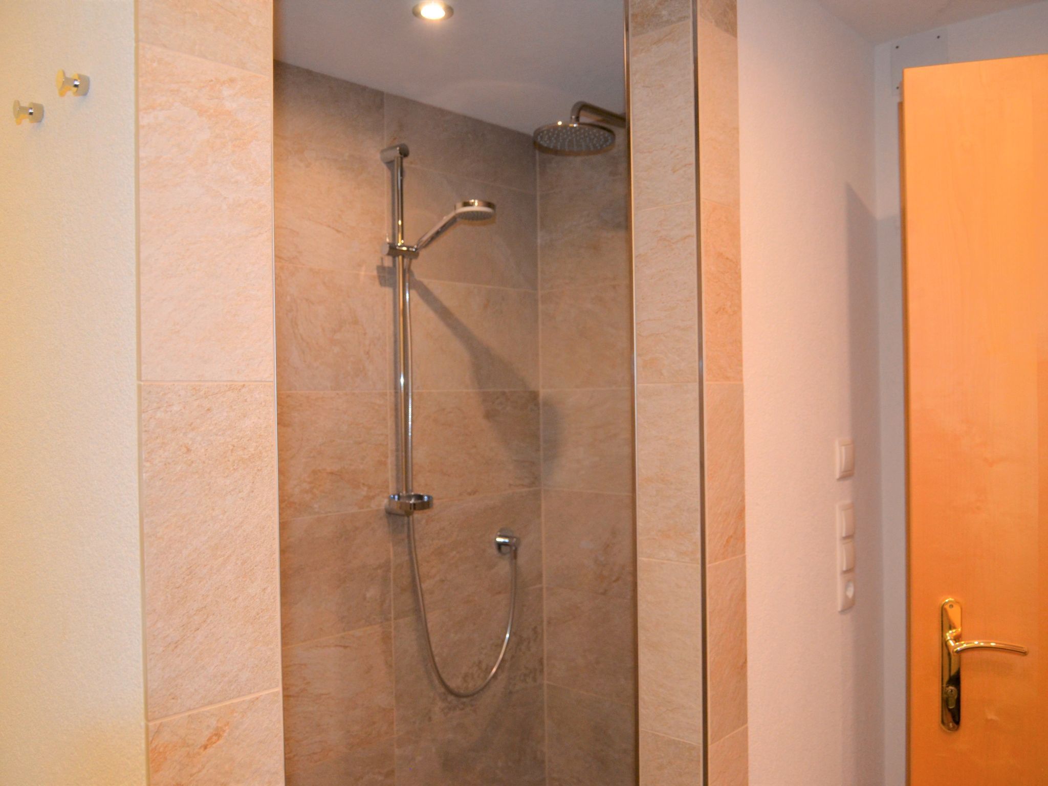 Georg, 6-Zimmer-Wohnung 130 m2 auf 2 Stockwerken. Hell, mit viel Holz eingerichtet: Wohn-/Schlafzimmer mit 1 Doppeldiwanbett, Esstisch und Sat-TV. Ausgang zum Balkon. 2 Doppelzimmer. 1 Zimmer mit 1 Bett, 1 Doppelbett und Dusche/WC. Offene Küche (Backofen, Geschirrspüler, 4 Glaskeramikplatten, Toaster, Wasserkocher, Mikrowelle, elektrische Kaffeemaschine). Dusche/WC, sep. WC. Unteres Geschoss: (Aussentreppe) Wohn-/Schlafzimmer mit 1 Doppeldiwanbett, Esstisch und Sat-TV. 1 Doppelzimmer. Küche (Backofen, Geschirrspüler, 4 Glaskeramikplatten, Wasserkocher, Mikrowelle, elektrische Kaffeemaschine). 2 Duschen/WC. Ölheizung. Teppichboden. Balkon, Terrasse. Schöne Sicht auf die Berge. Zur Verfügung: Safe, Babybett. Internet (WLAN, gratis). Bitte beachten: Nichtraucher-Unterkunft. Rauchmelder, Feuerlöscher. Keine interne Verbindung zwischen den separaten Wohneinheiten.