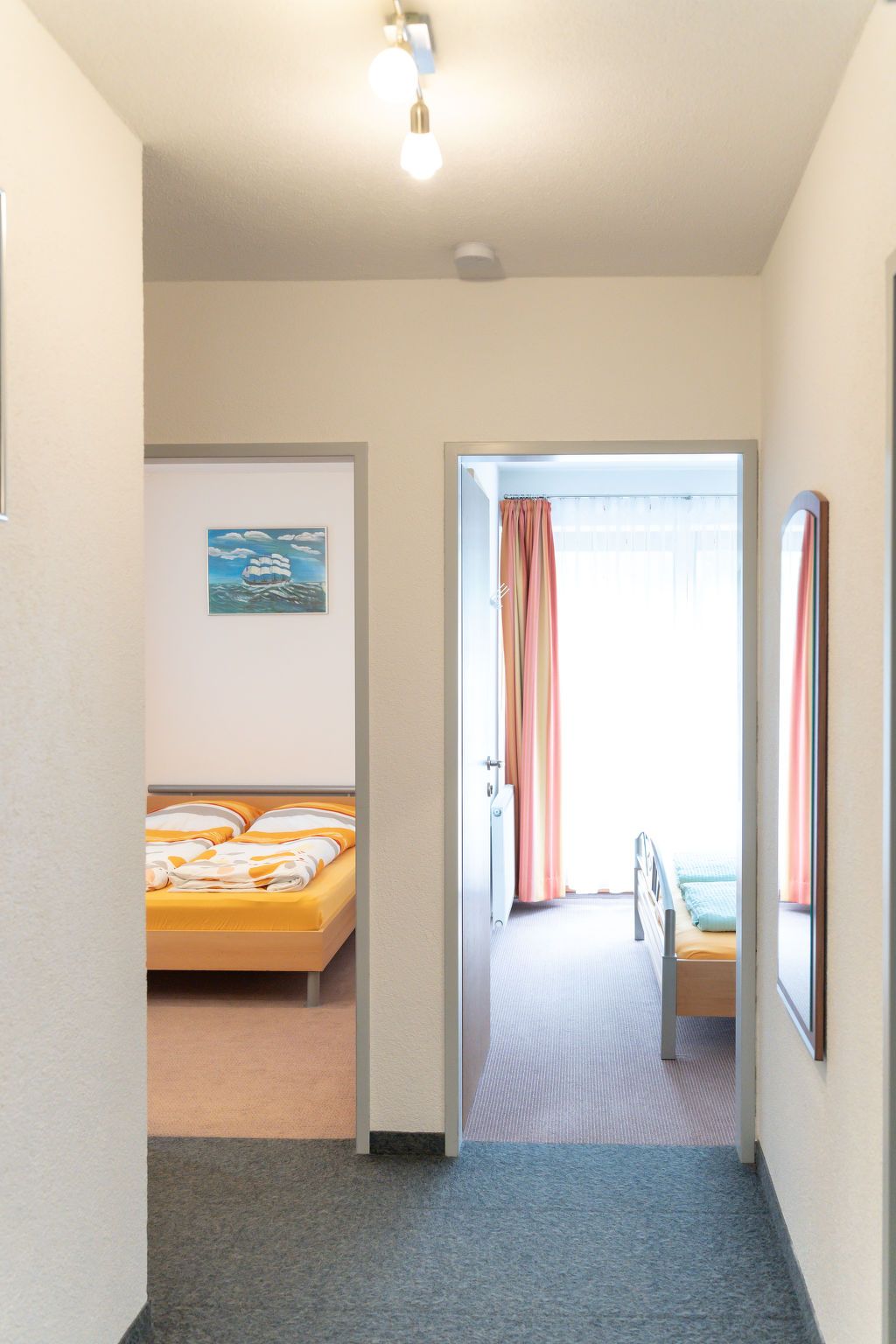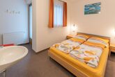 Al Vietta, 4-Zimmer-Wohnung 70 m2 im 2. Stock. Hell, zweckmässig eingerichtet: 1 Zimmer mit 1 Doppelbett und Waschbecken. Ausgang zum Balkon. 1 Zimmer mit 1 franz. Bett (140 cm), Waschbecken. Ausgang zum Balkon. 1 Zimmer mit 1 x 2 Etagenbetten, Waschbecken. Wohnküche (Backofen, 4 Glaskeramikplatten, Toaster, Wasserkocher, Mikrowelle, Tiefkühler, elektrische Kaffeemaschine) mit Essecke und Sat-TV. Dusche, sep. WC. Heizung. Teppichboden. Balkon. Zur Verfügung: Babybett. Internet (Wireless LAN, gratis). Bitte beachten: Nichtraucher-Unterkunft. Rauchmelder, Feuerlöscher.