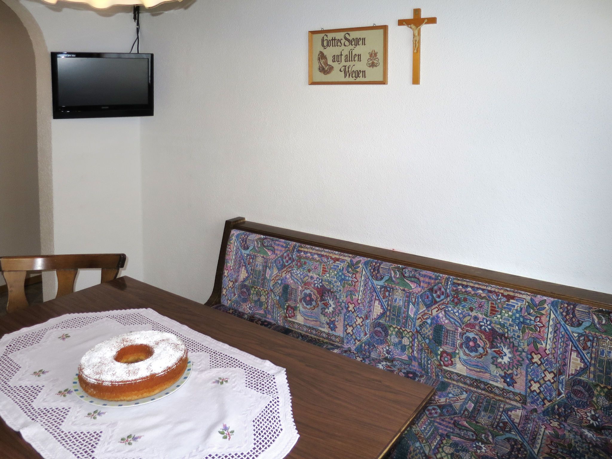Prem, 3-Zimmer-Wohnung 45 m2, im ebenerdigen Untergeschoss. Einfach und rustikal eingerichtet: 2 Doppelzimmer. Kleine Wohnküche (Backofen, 4 Glaskeramikplatten, Toaster, Wasserkocher, elektrische Kaffeemaschine) mit Essecke, Sat-TV und Radio. Dusche/WC. Ölheizung. Parkettboden. Sicht auf die Berge. Zur Verfügung: Internet (Wireless LAN, gratis). Bitte beachten: Nichtraucher-Unterkunft. Feuerlöscher.