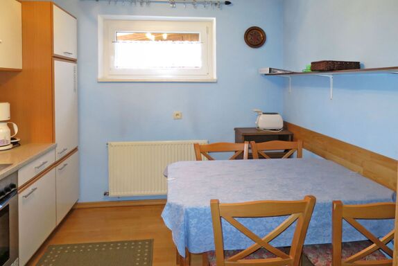 Faulhaber, 3-Zimmer-Wohnung 55 m2, im Erdgeschoss. Zweckmässig eingerichtet: 1 Zimmer mit 1 Diwanbett, 1 Doppelbett und Sat-TV. Ausgang zur Terrasse. 1 Doppelzimmer mit Sat-TV. Kleine Wohnküche (Geschirrspüler, 4 Glaskeramikplatten, Toaster, Wasserkocher, Mikrowelle, Tiefkühler, elektrische Kaffeemaschine) mit Esstisch. Dusche/WC. Ölheizung. Kleine Terrasse. Zur Verfügung: Babybett. Internet (Wireless LAN, gratis). Bitte beachten: Nichtraucher-Unterkunft. Rauchmelder.