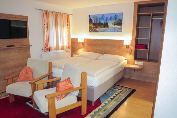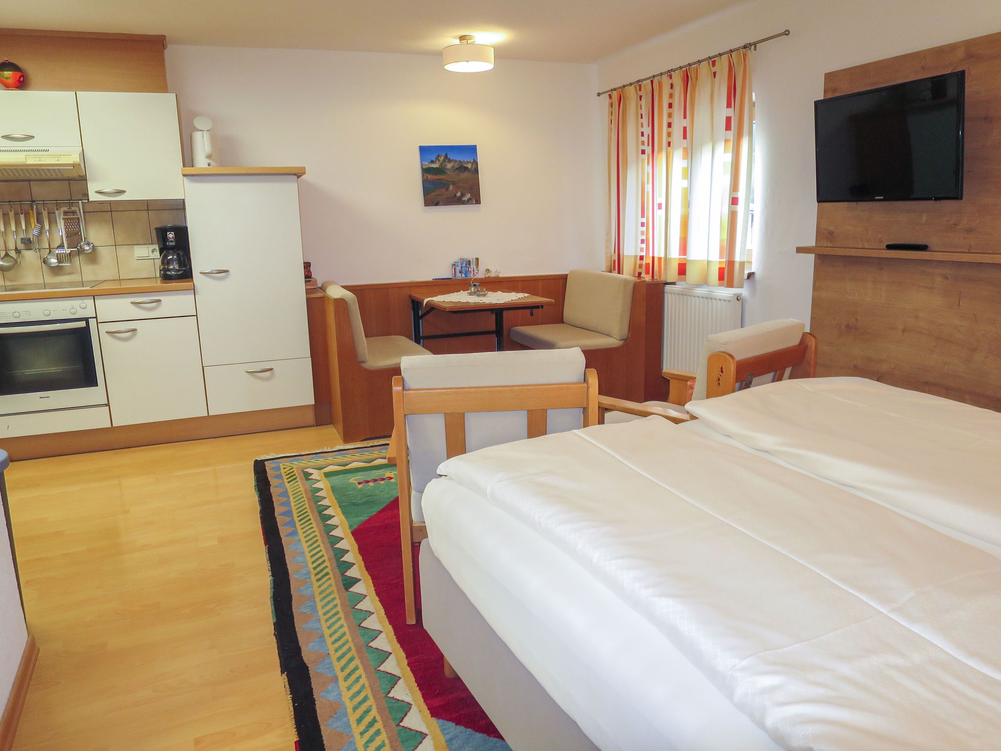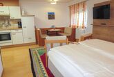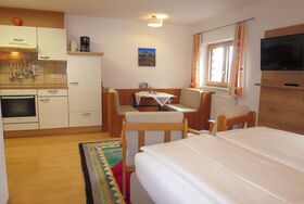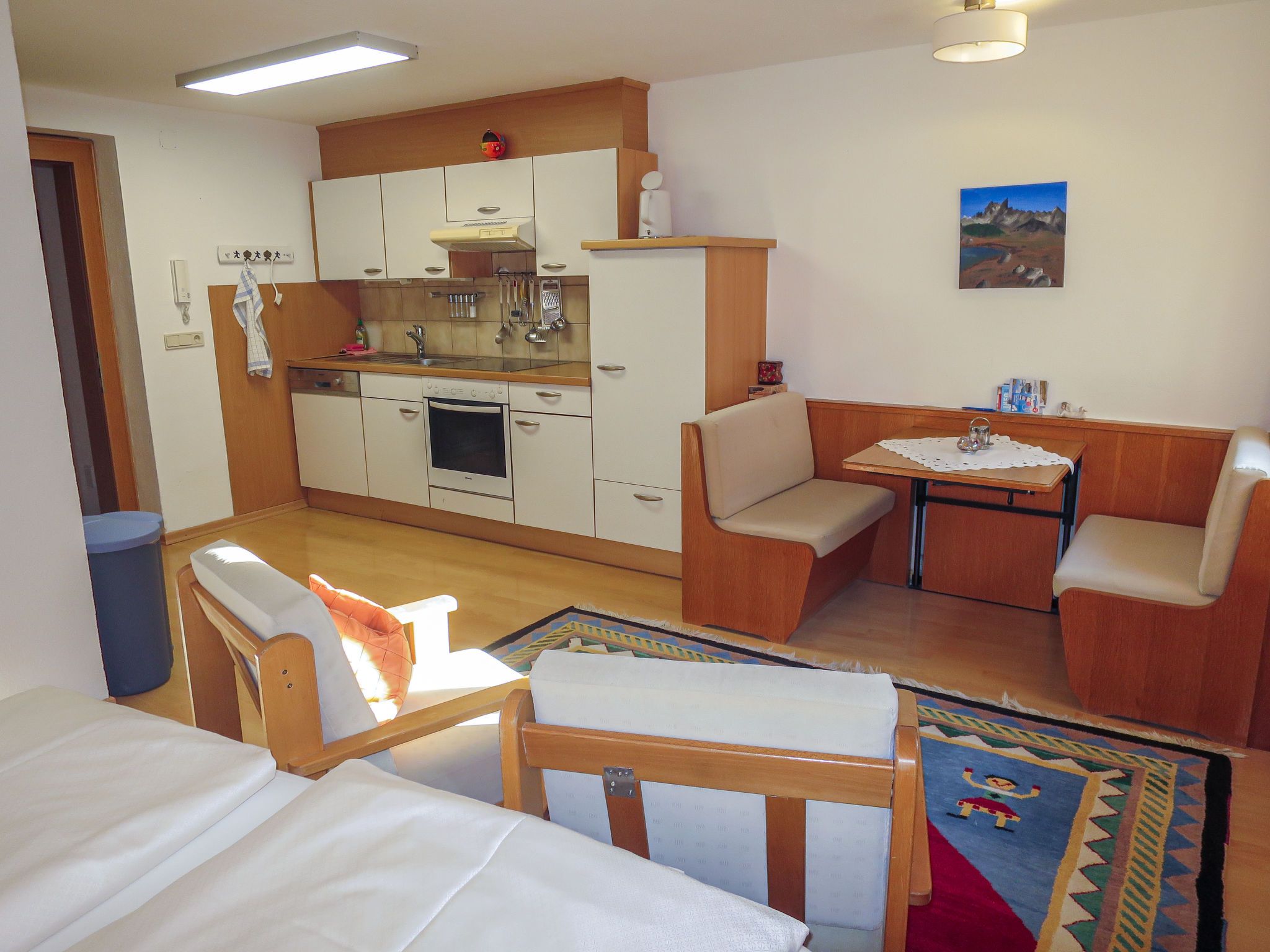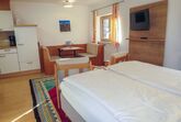 Hof am Schönbach, 1-Zimmer-Wohnung 30 m2 im 1. Stock. Gemütlich eingerichtet: Wohn-/Schlafzimmer mit 1 Doppelbett (160 cm), Esstisch, Kabel-TV und Radio. Offene Küche (Backofen, Geschirrspüler, 4 Glaskeramikplatten, Wasserkocher, elektrische Kaffeemaschine). Dusche/WC. Heizung. Zur Verfügung: Babybett. Internet (WLAN, gratis). Bitte beachten: Nichtraucher-Unterkunft. Maximal 1 Haustier/Hund erlaubt. Die Wohnung hat einen separaten Vorraum.